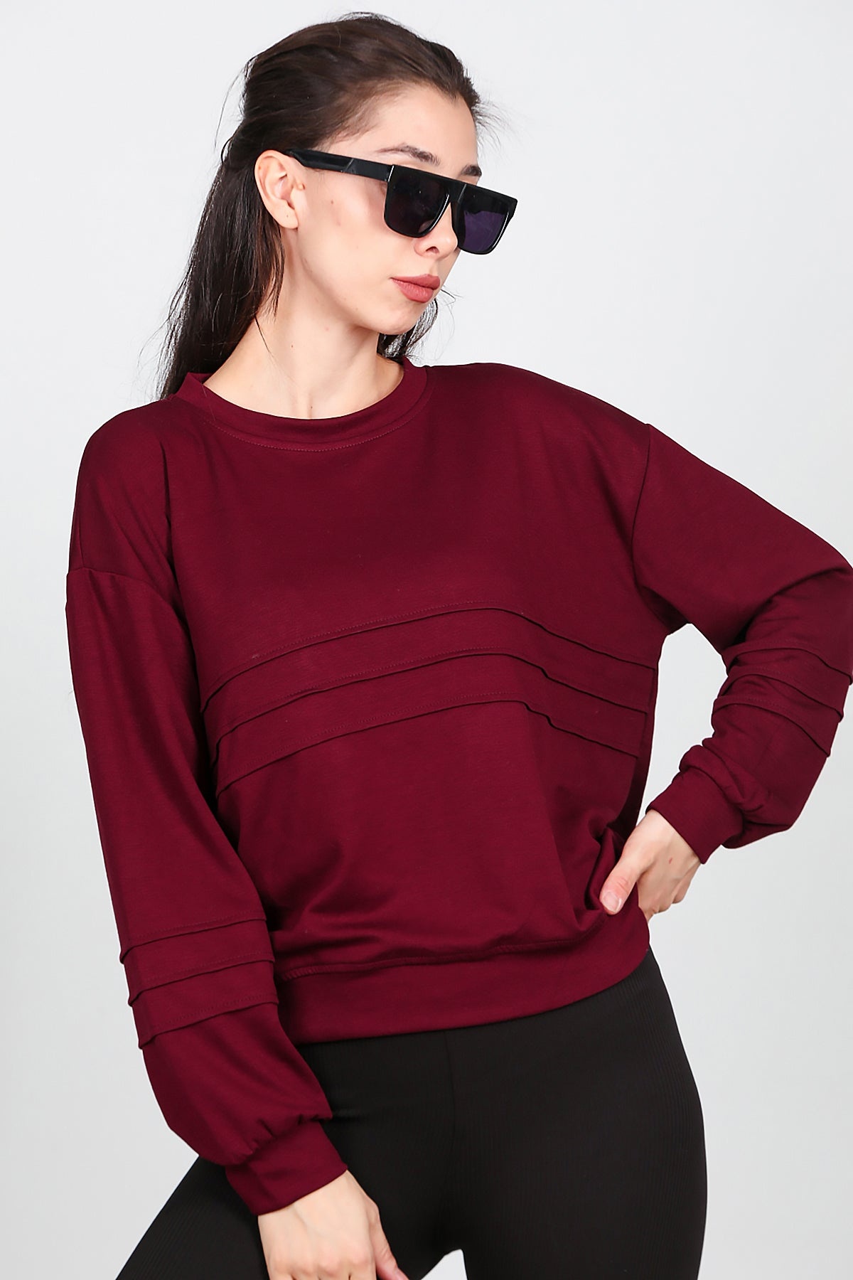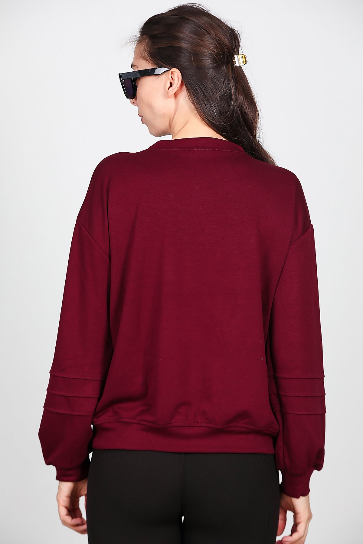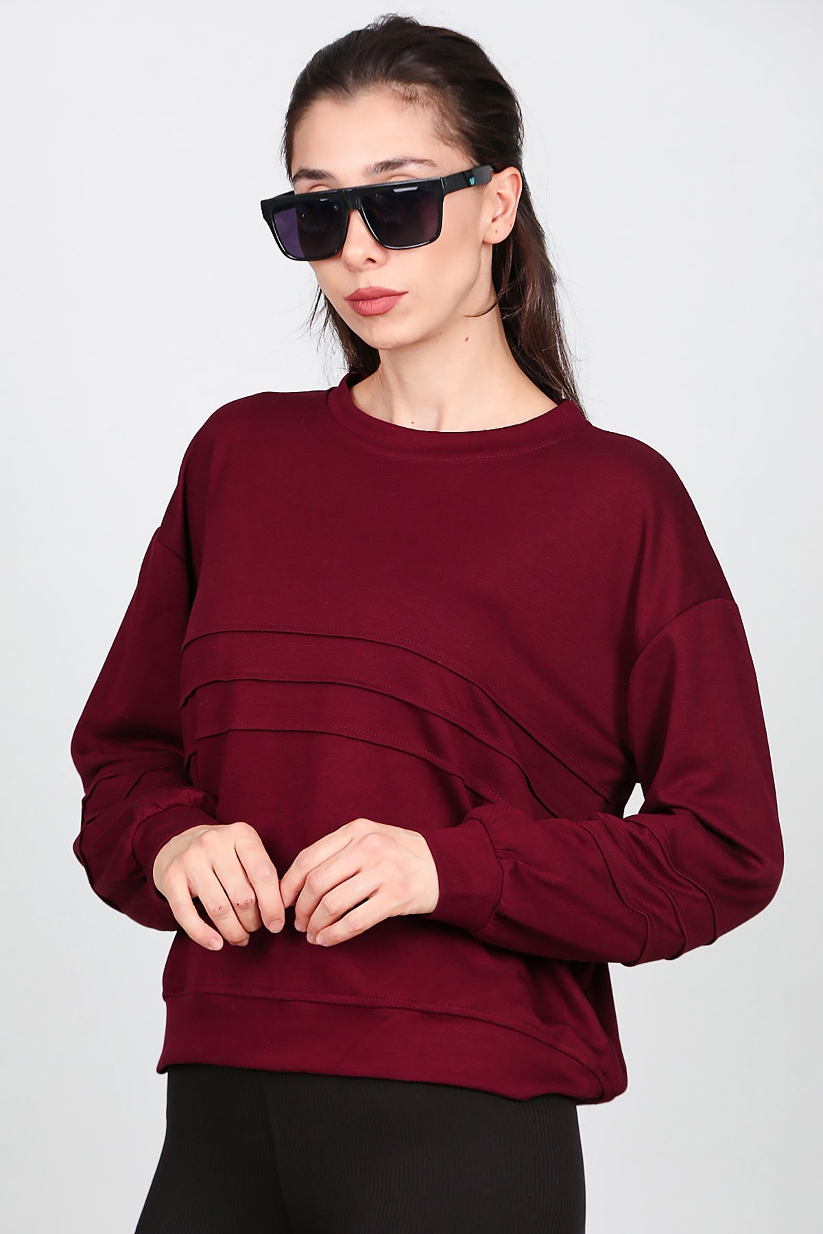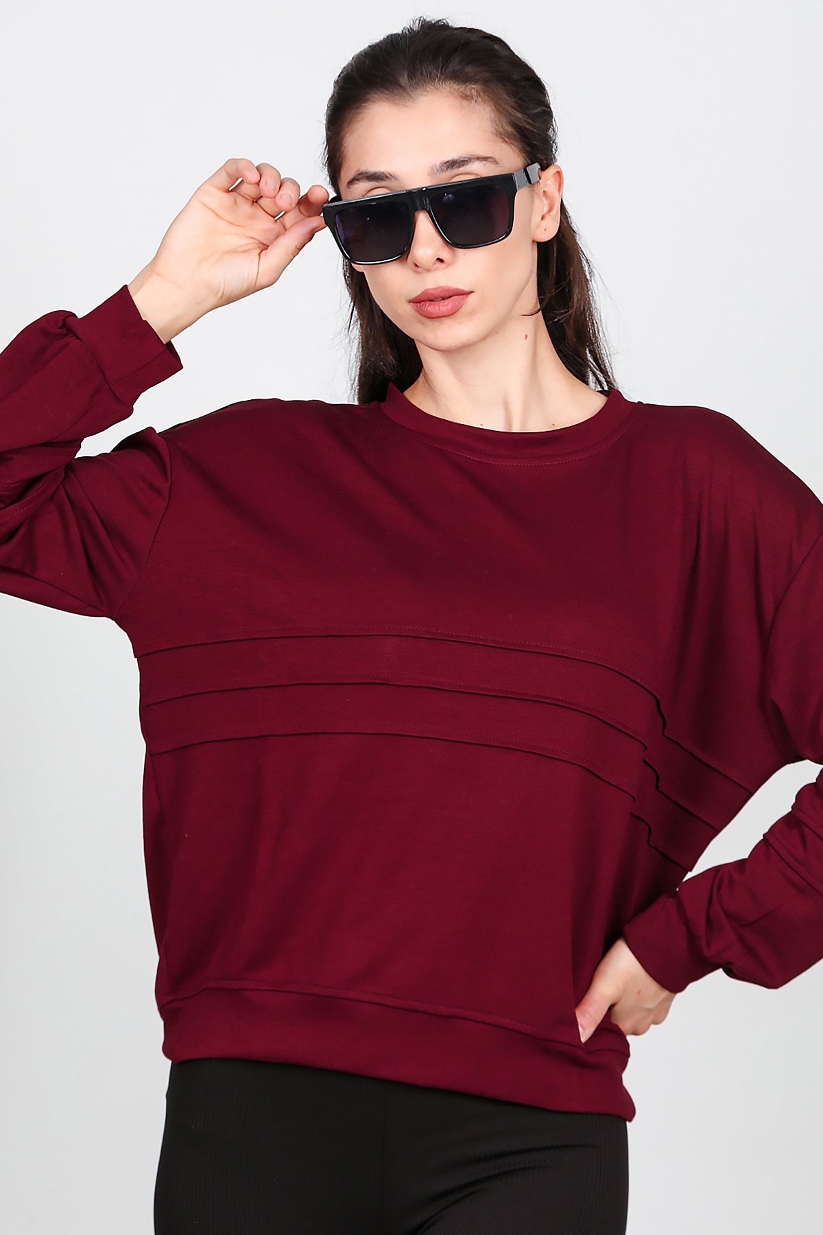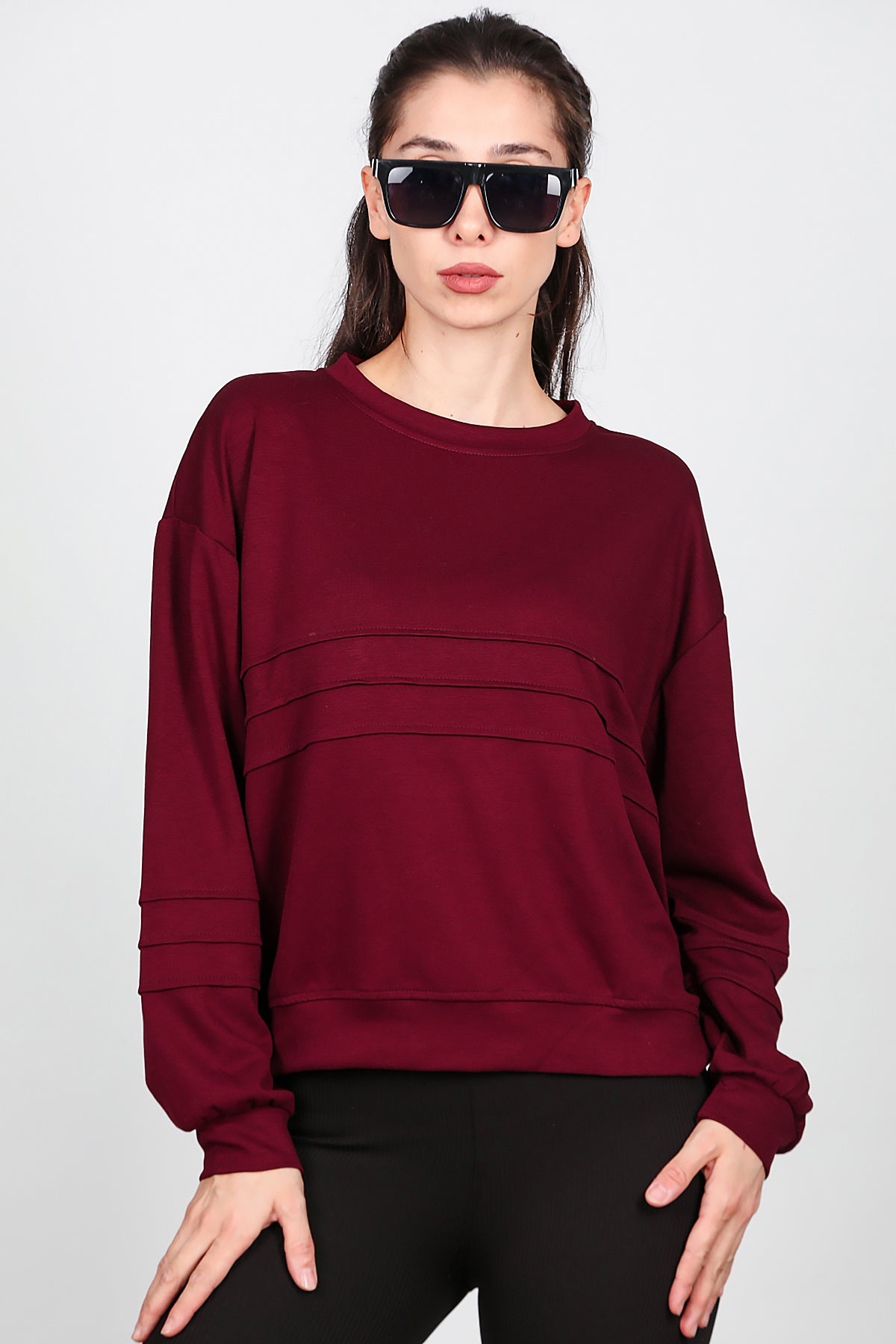 Kadın Önü Üç Dikişli Sweat Bordo
