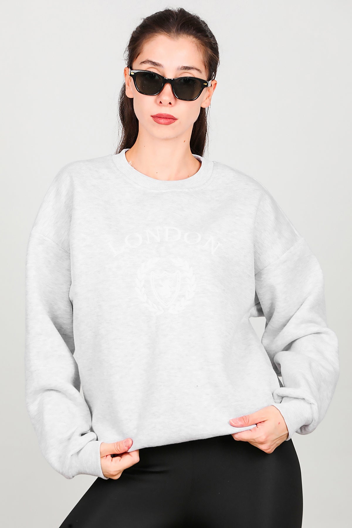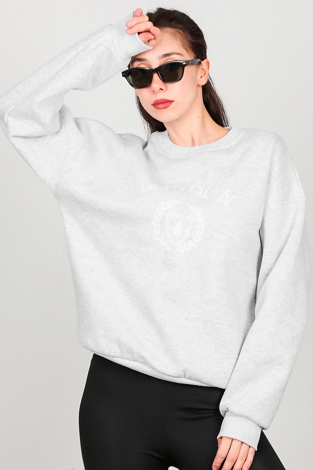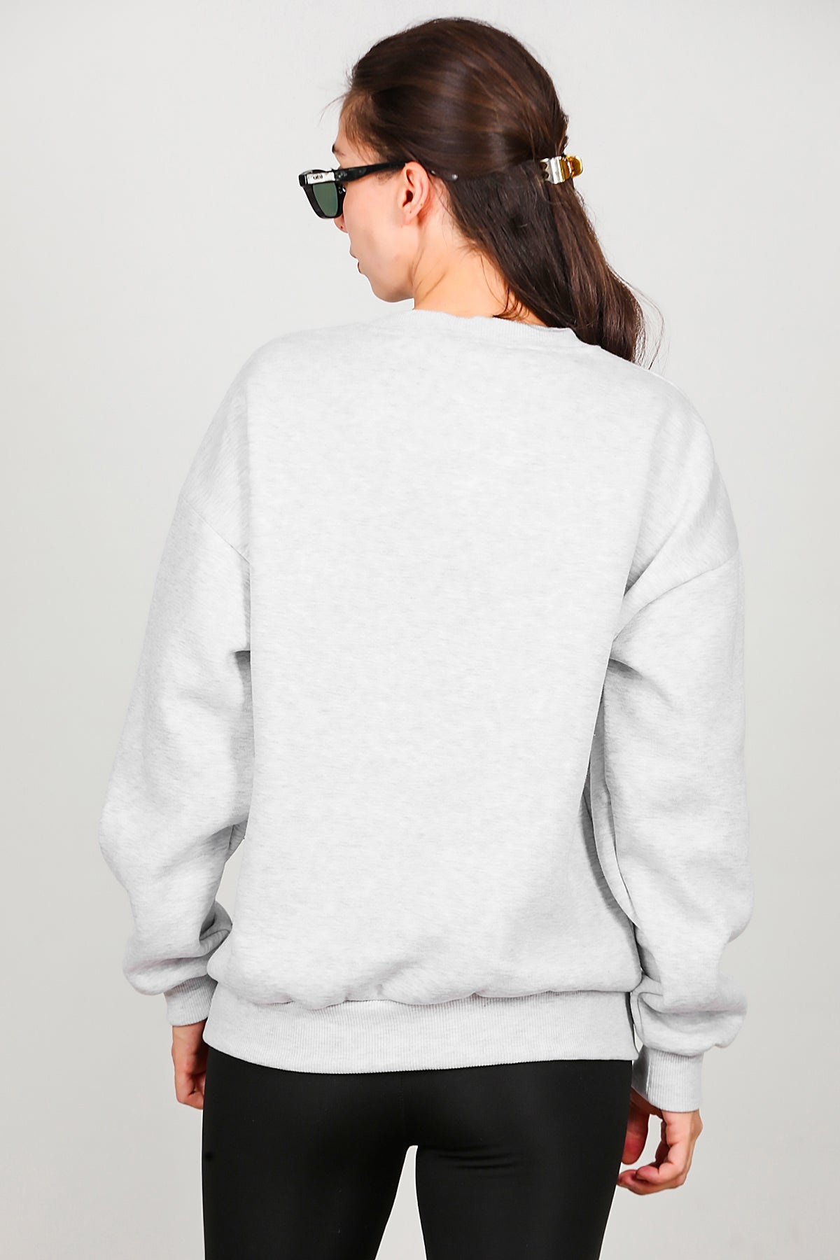 Kadın Üç İplik Bisiklet Yaka Sweet Gri