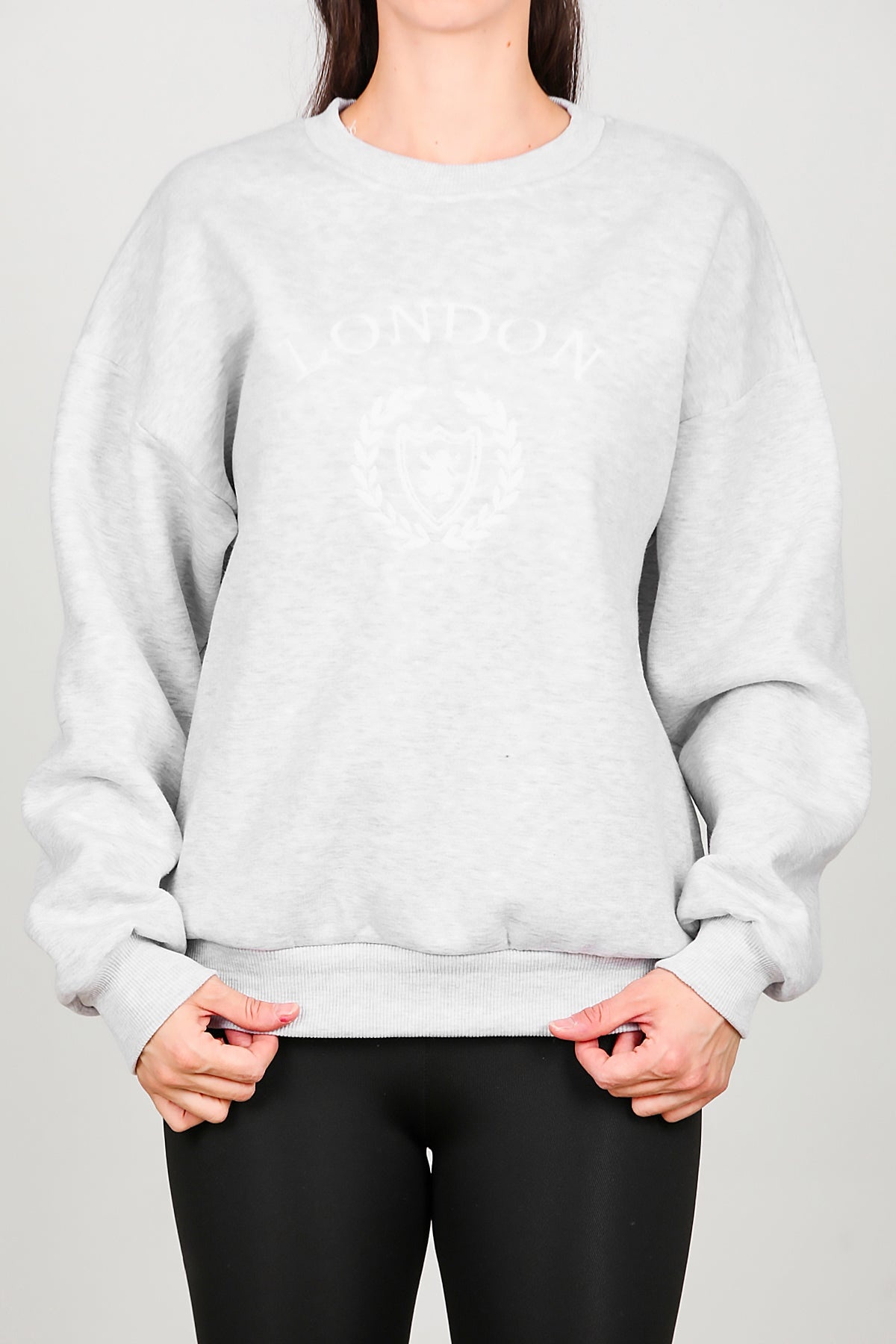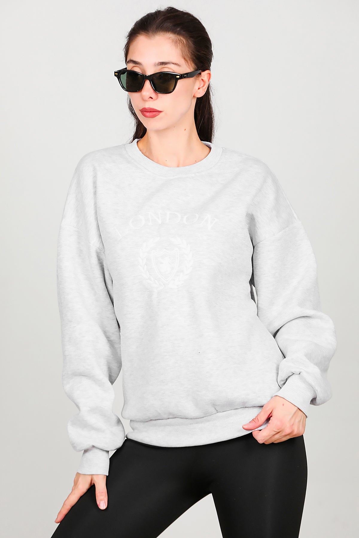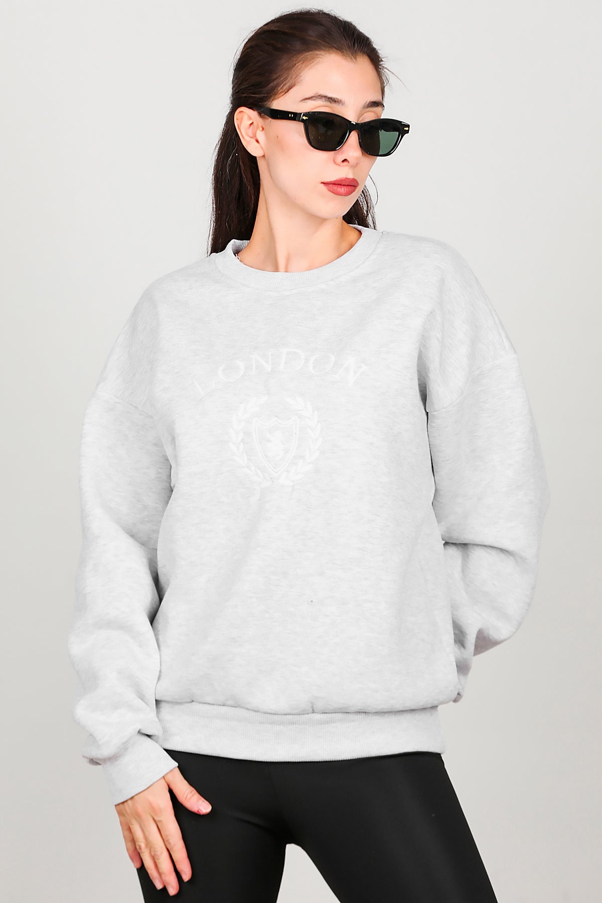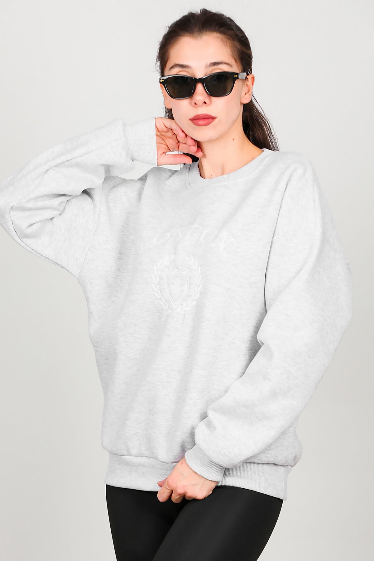 Kadın Üç İplik Bisiklet Yaka Sweet Gri