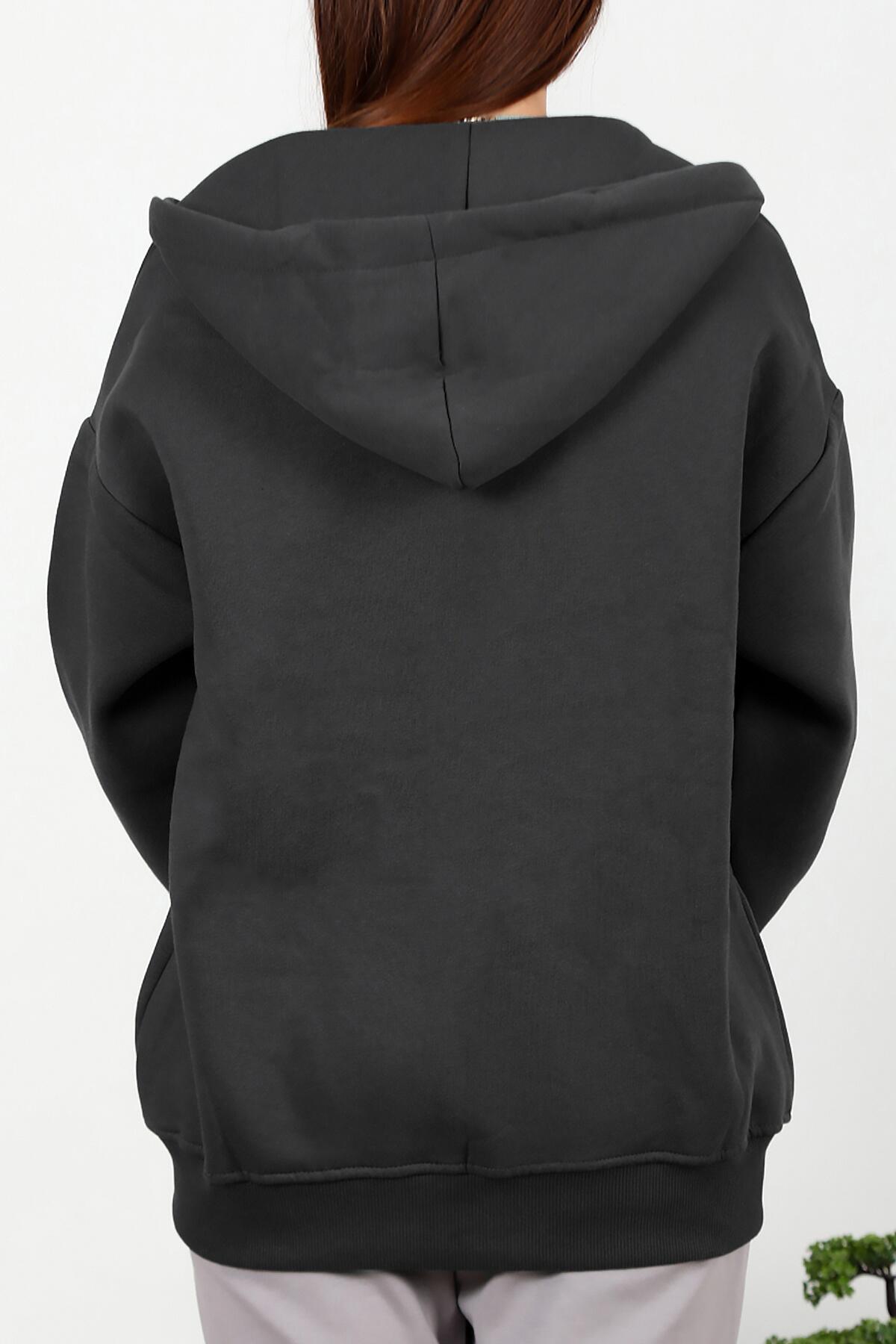 Kadın Üç İplik Fermuarlı Sweat Füme