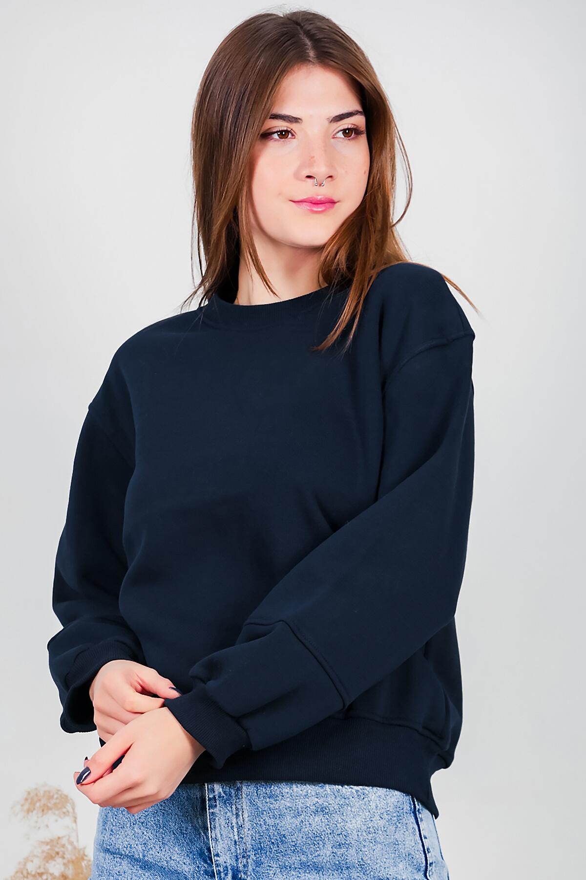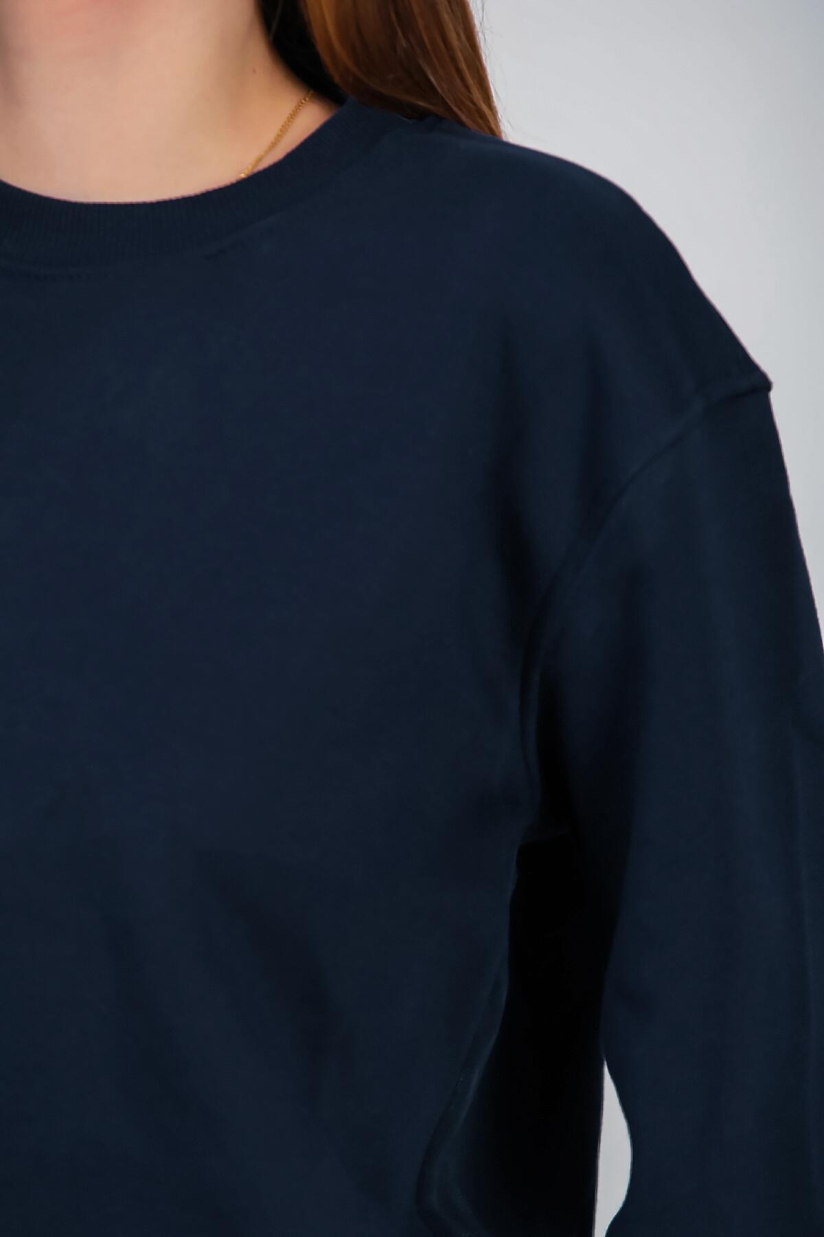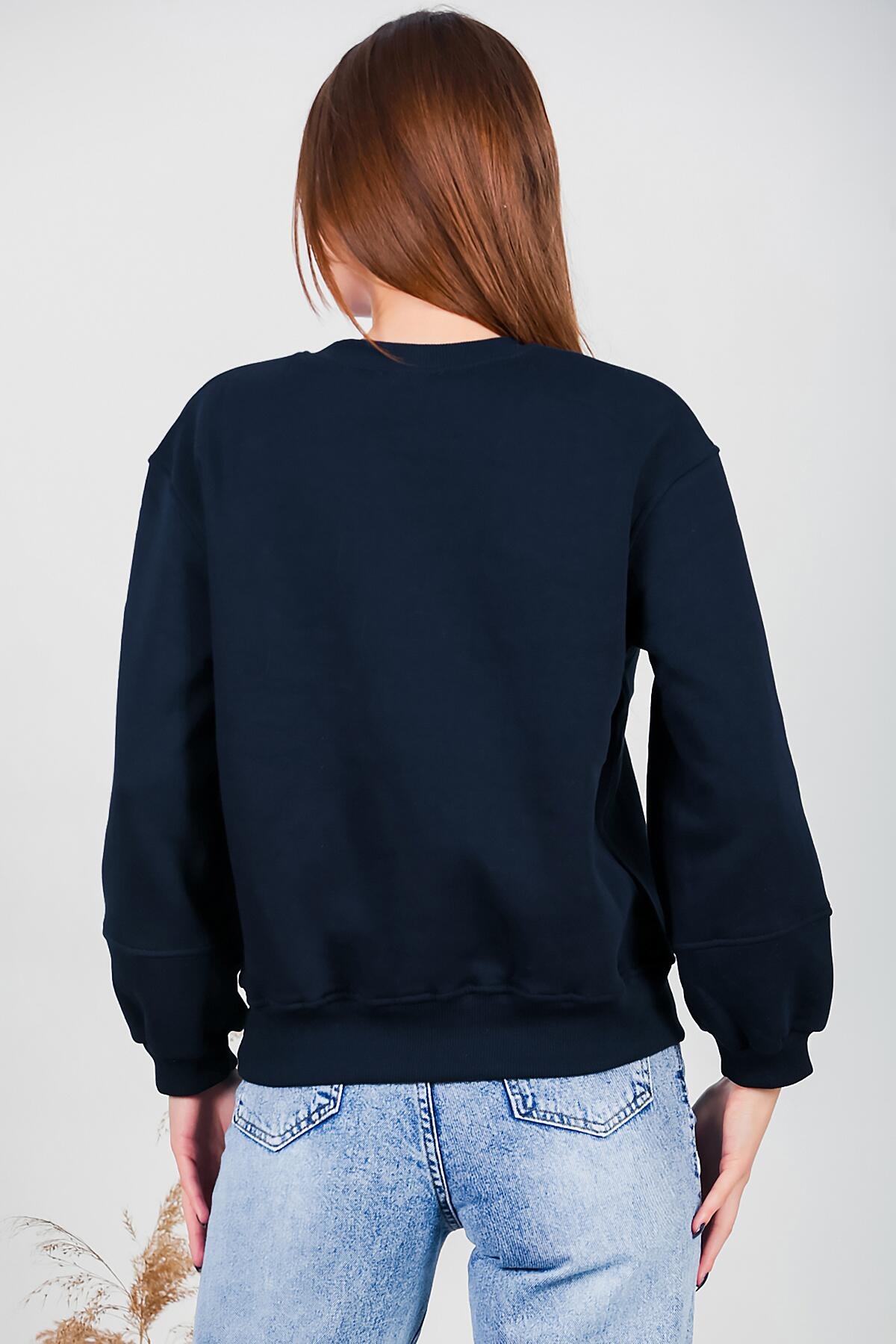 Kadın Üç İplik Kolu Çimalı Sıfır Yaka Sweat Lacivert