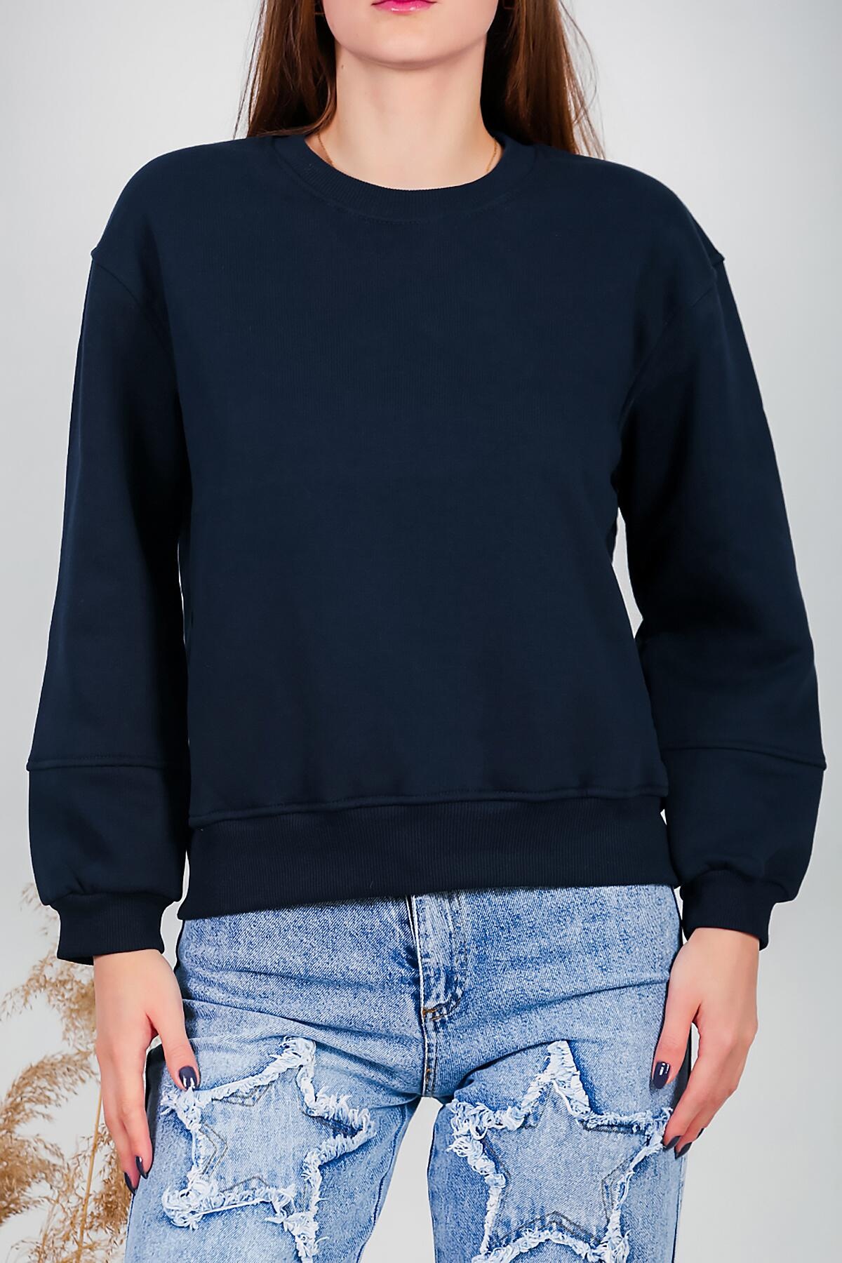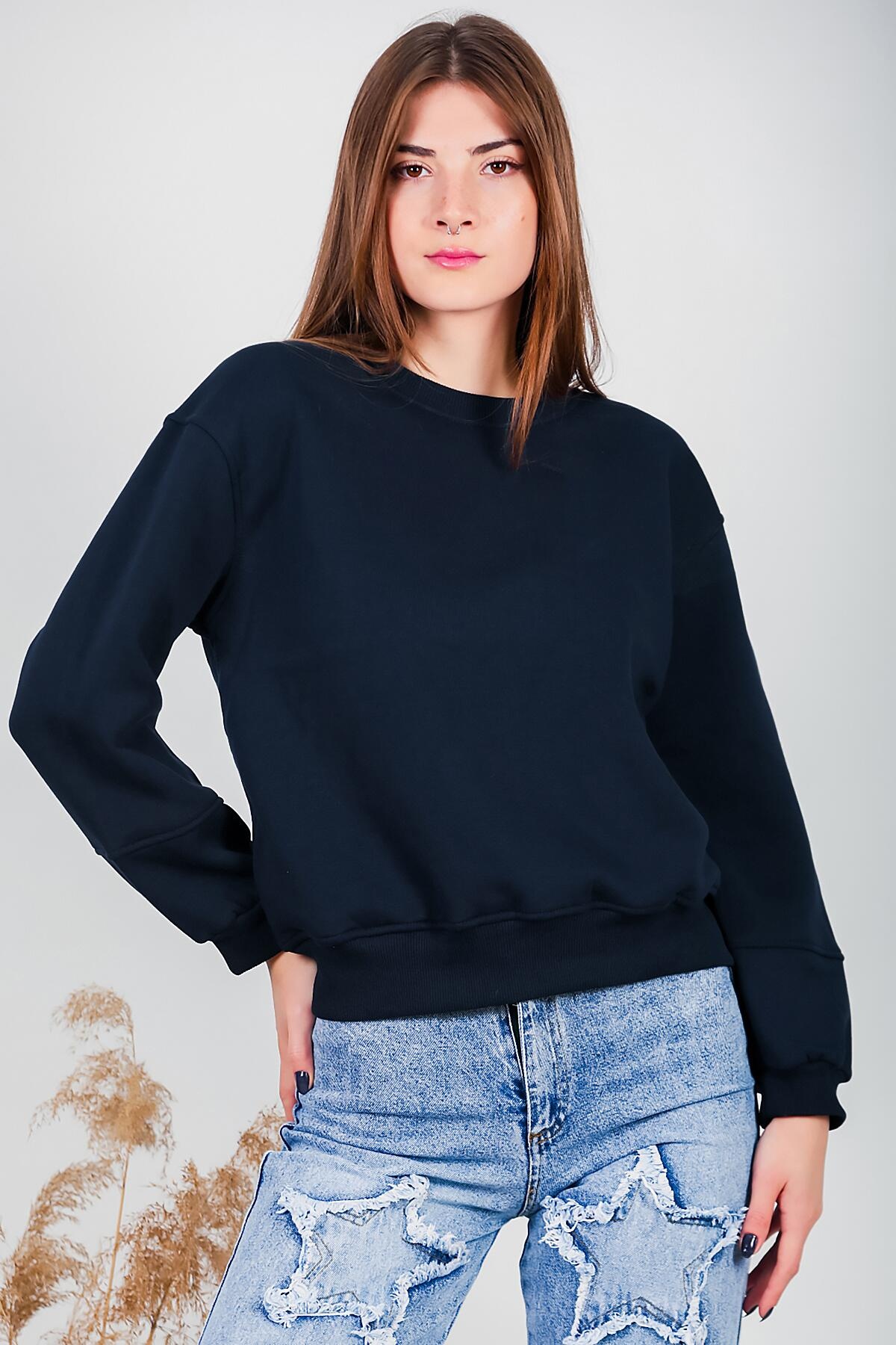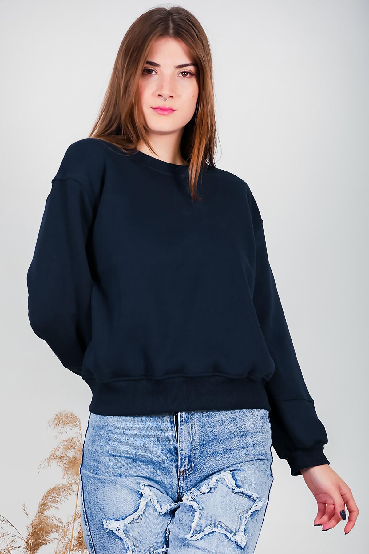 Kadın Üç İplik Kolu Çimalı Sıfır Yaka Sweat Lacivert