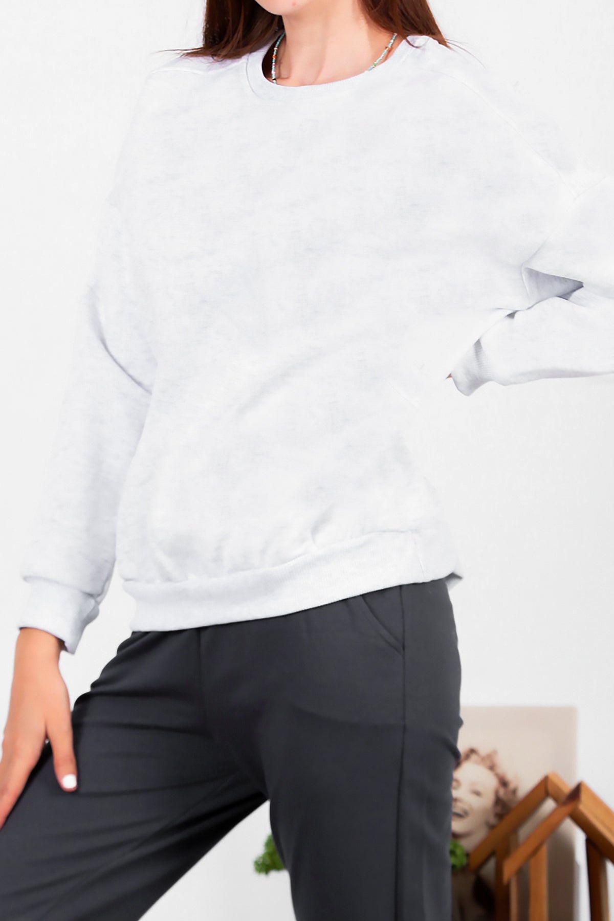 Kadın Üç İplik Sıfır Yaka Sweat Gri