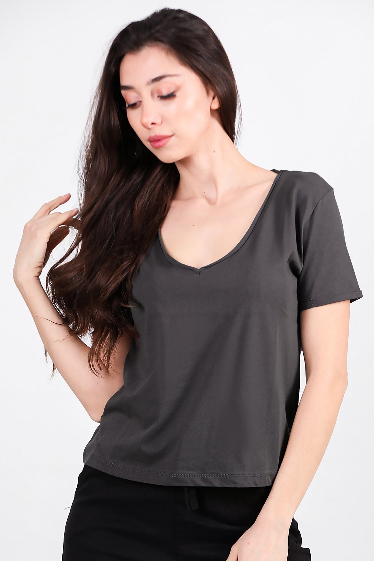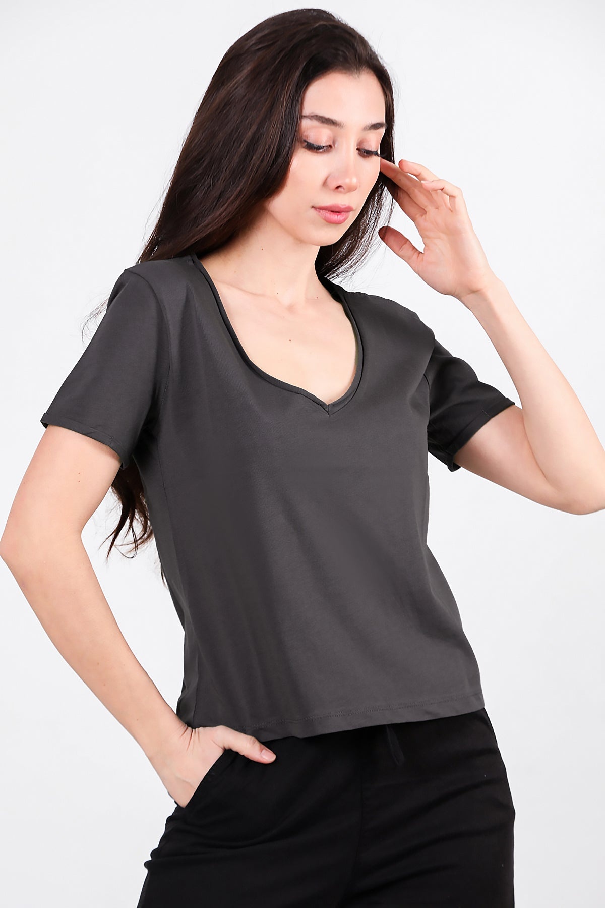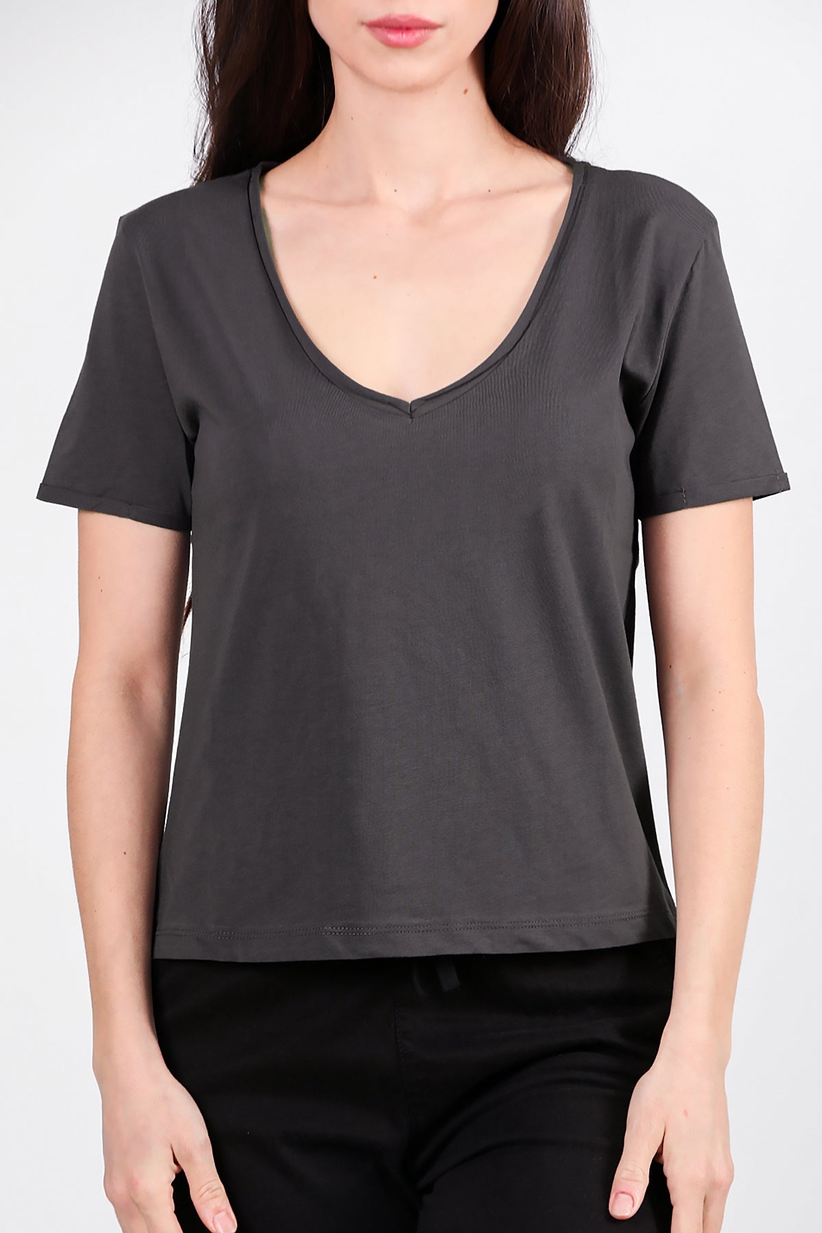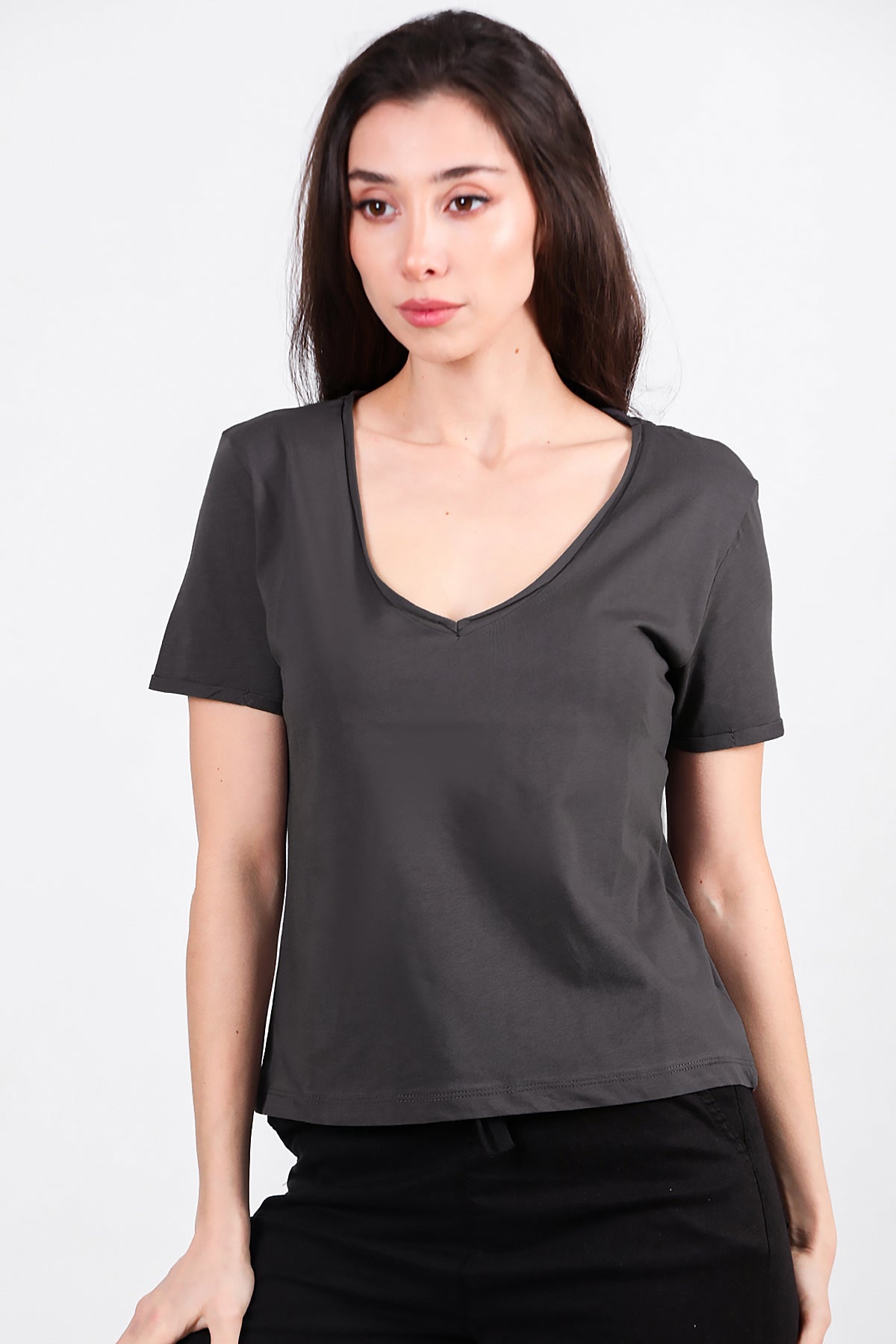 Numune Bedeni: 36Numune Boyu: 52 cmKumaş Tipi: %85 Pamuk %15 PolyesterKol: Kısa KolYaka: V Yaka