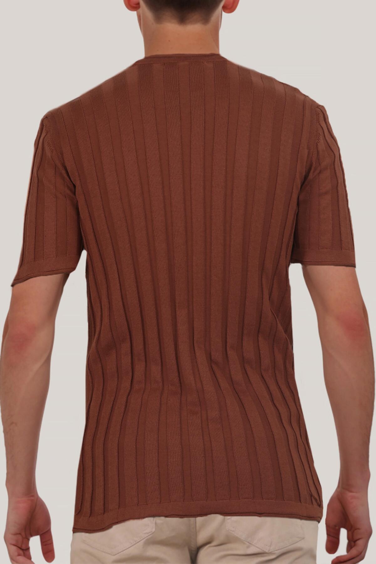 Erkek Bisiklet Yaka Kısa Kol Triko Kiremit