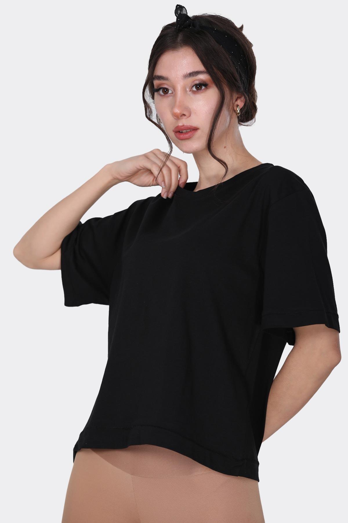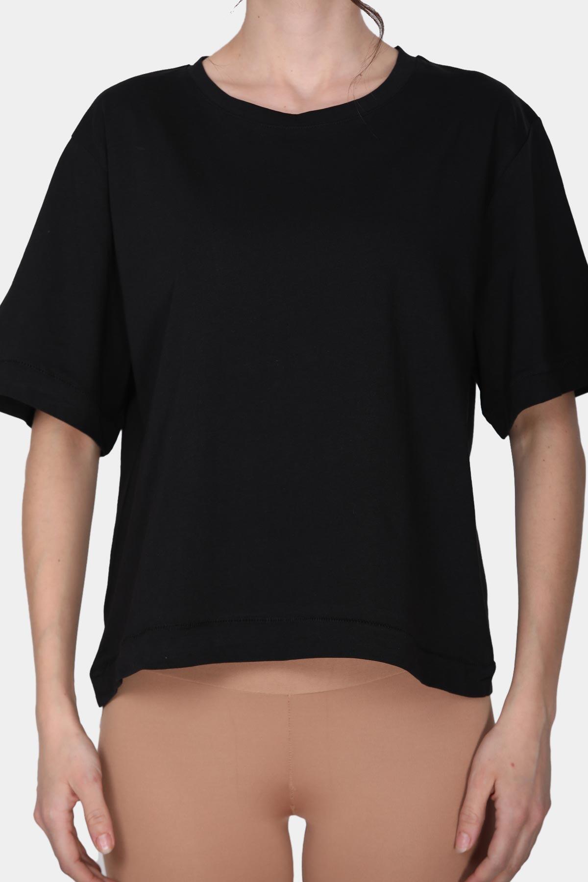 Kadın Bisiklet Yaka T-shirt Siyah