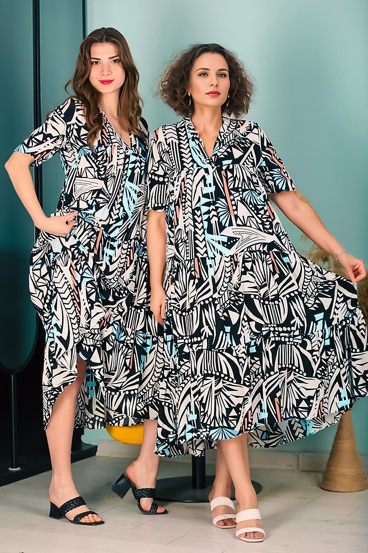 Kadın Kısa Kol Midi Boy Elbise Turkuaz