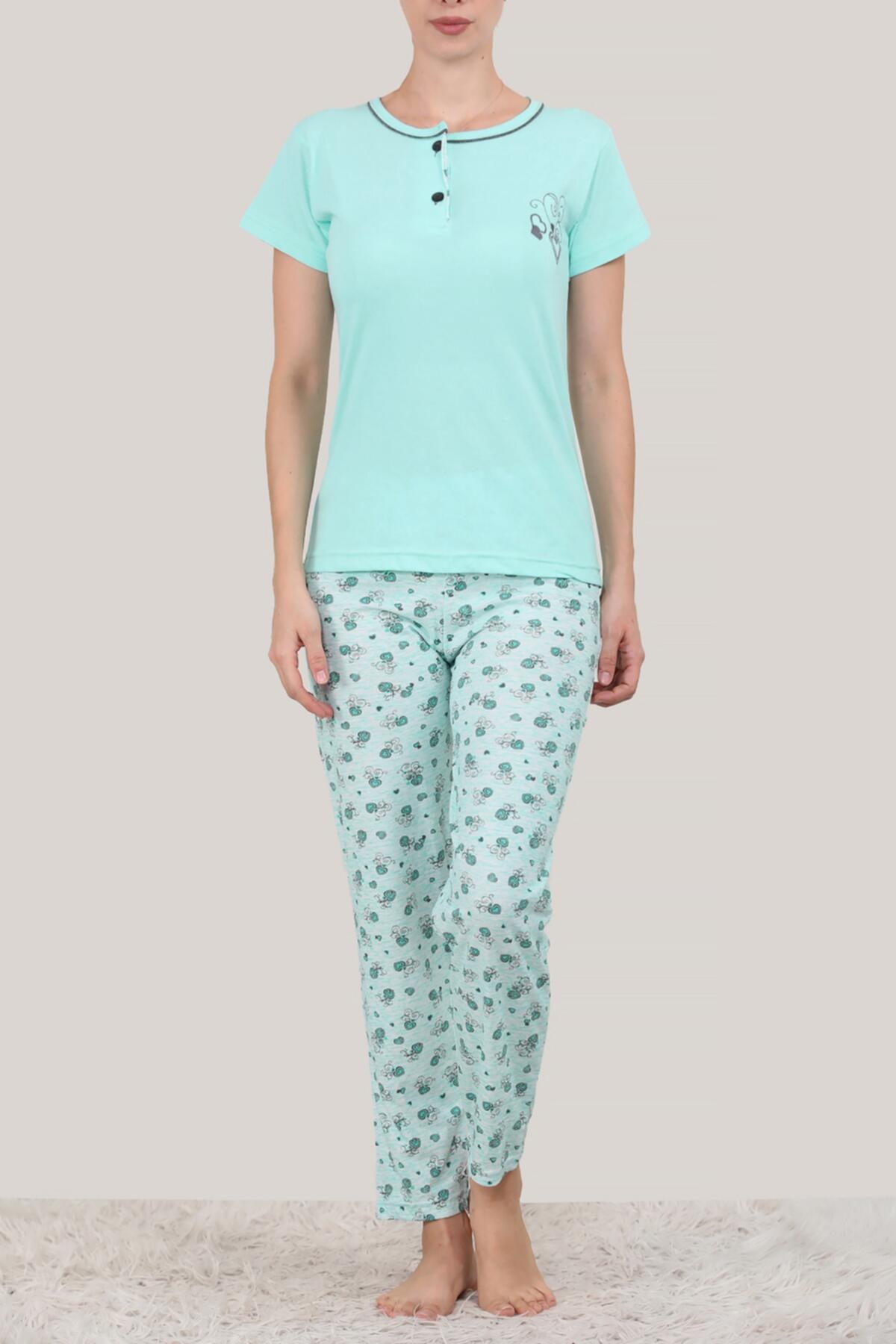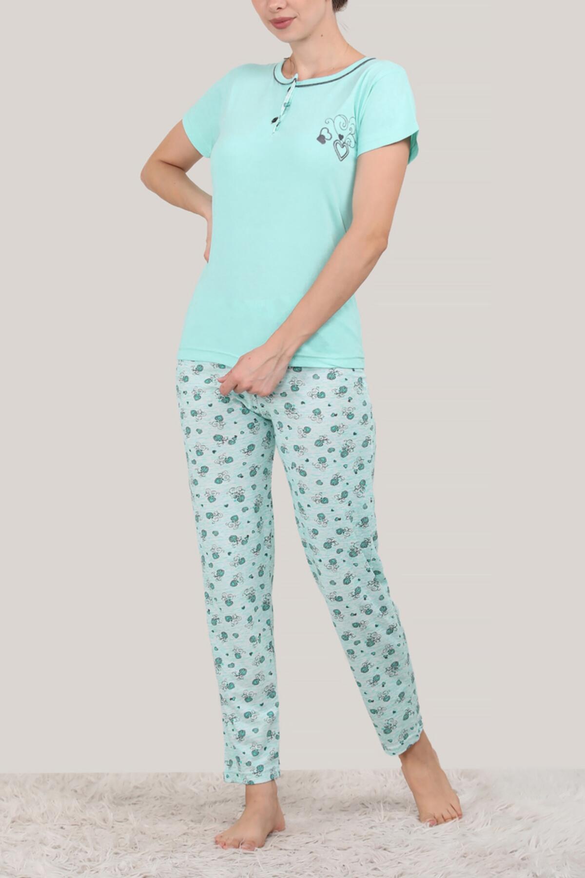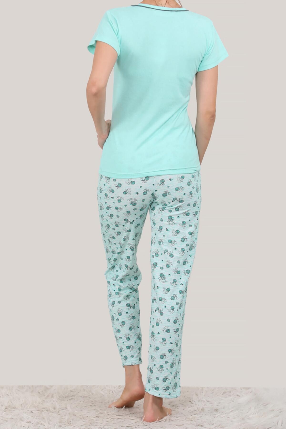 Kadın Kısa Kol Pijama Takımı Su Yeşili