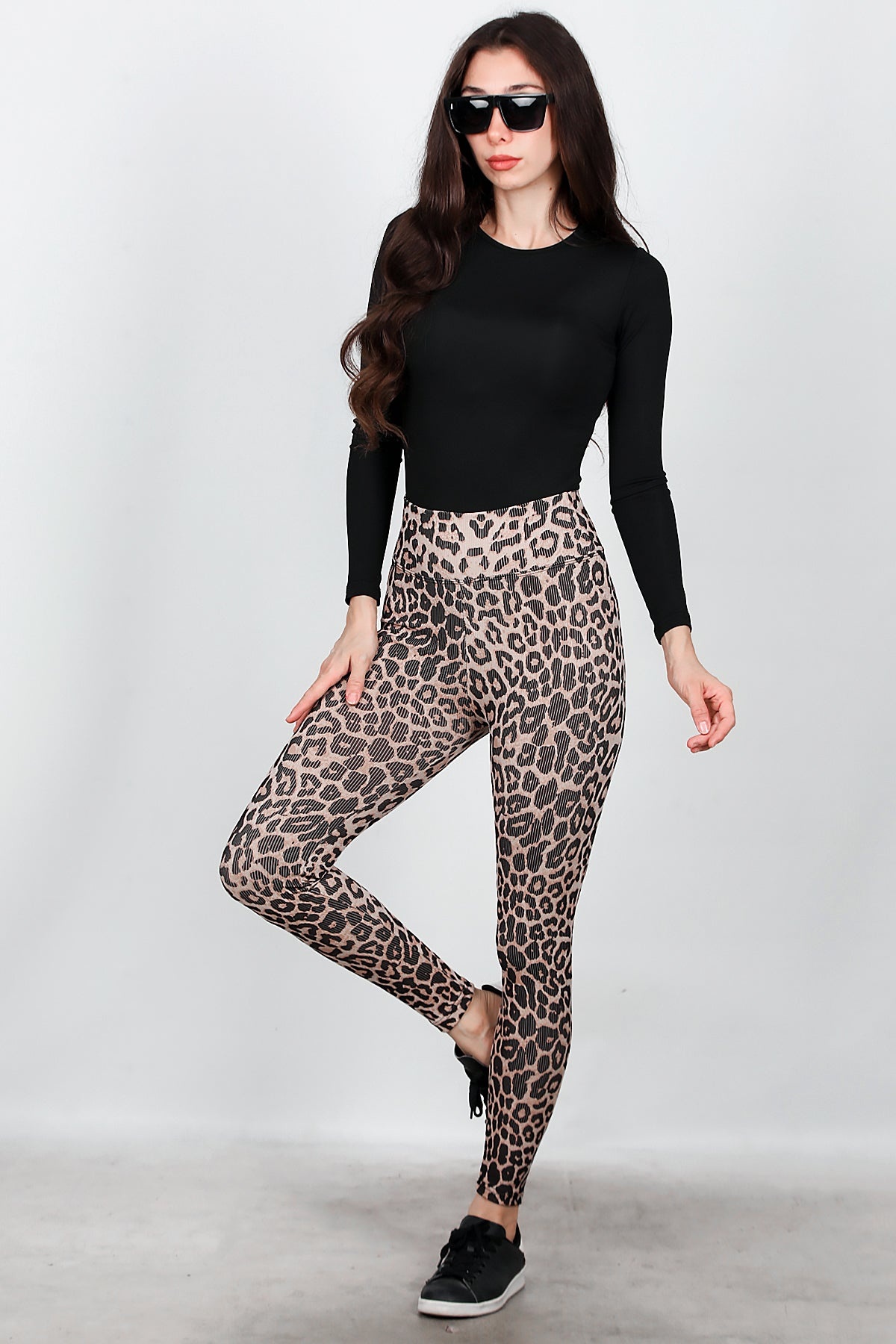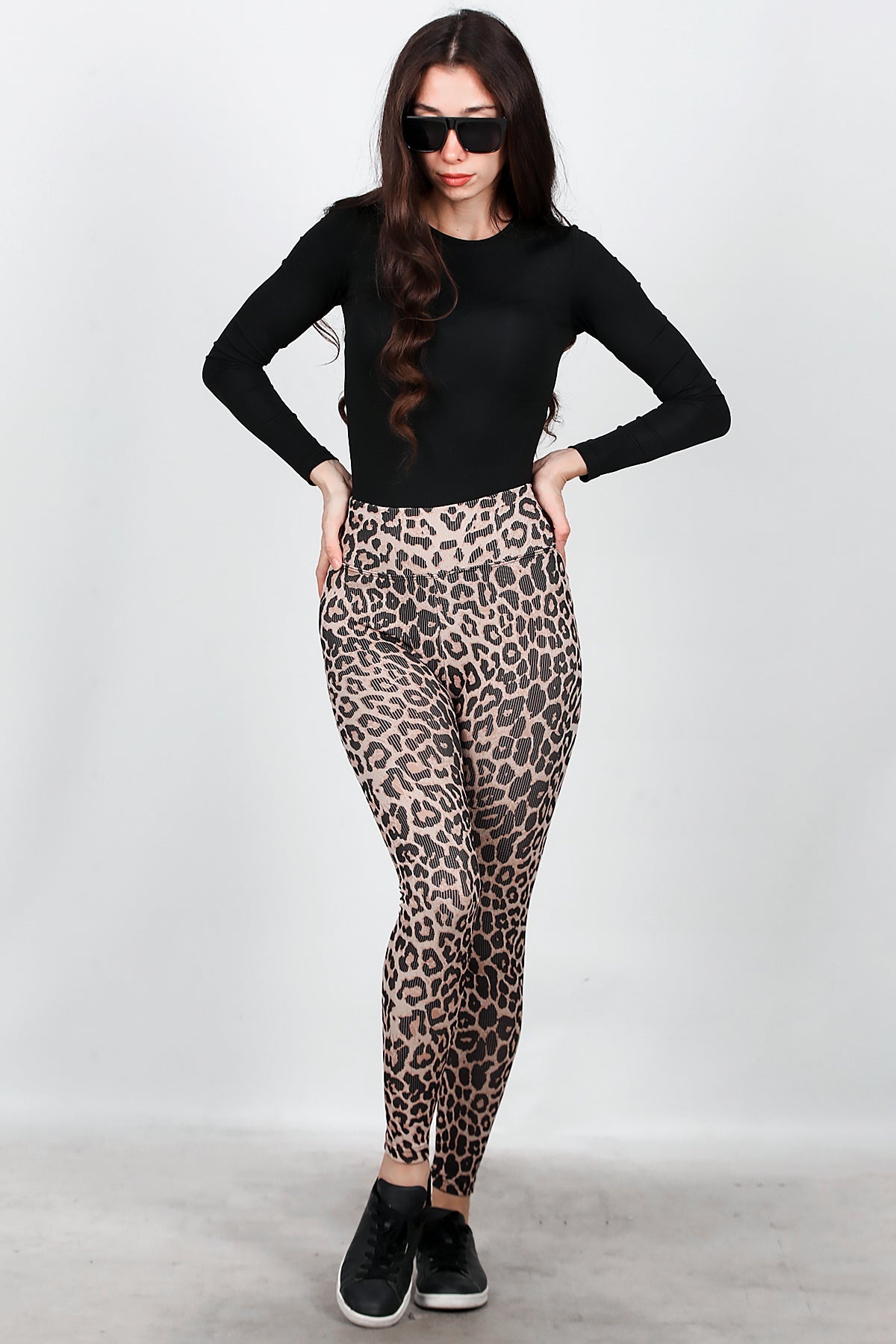 Kadın Fitilli Leopar Desenli Tayt Krem