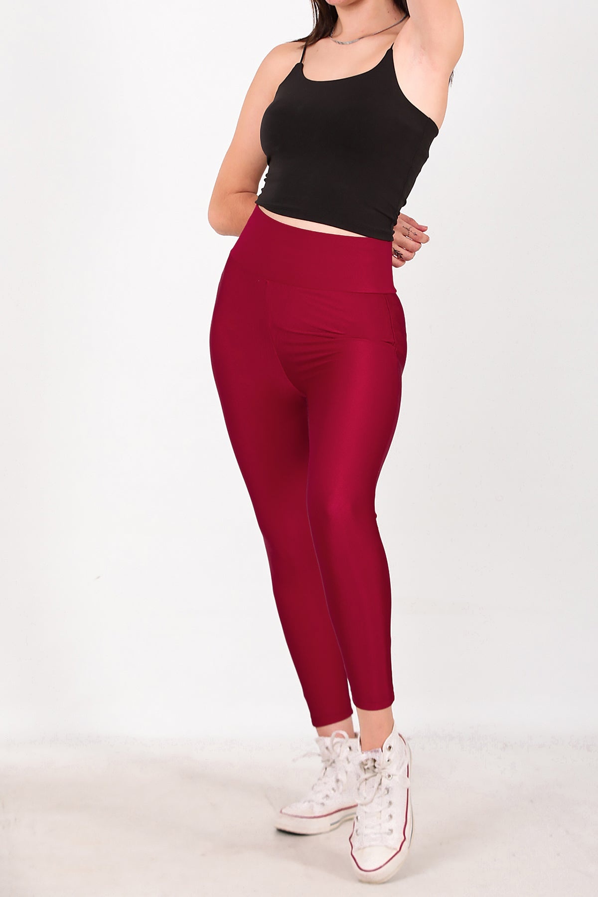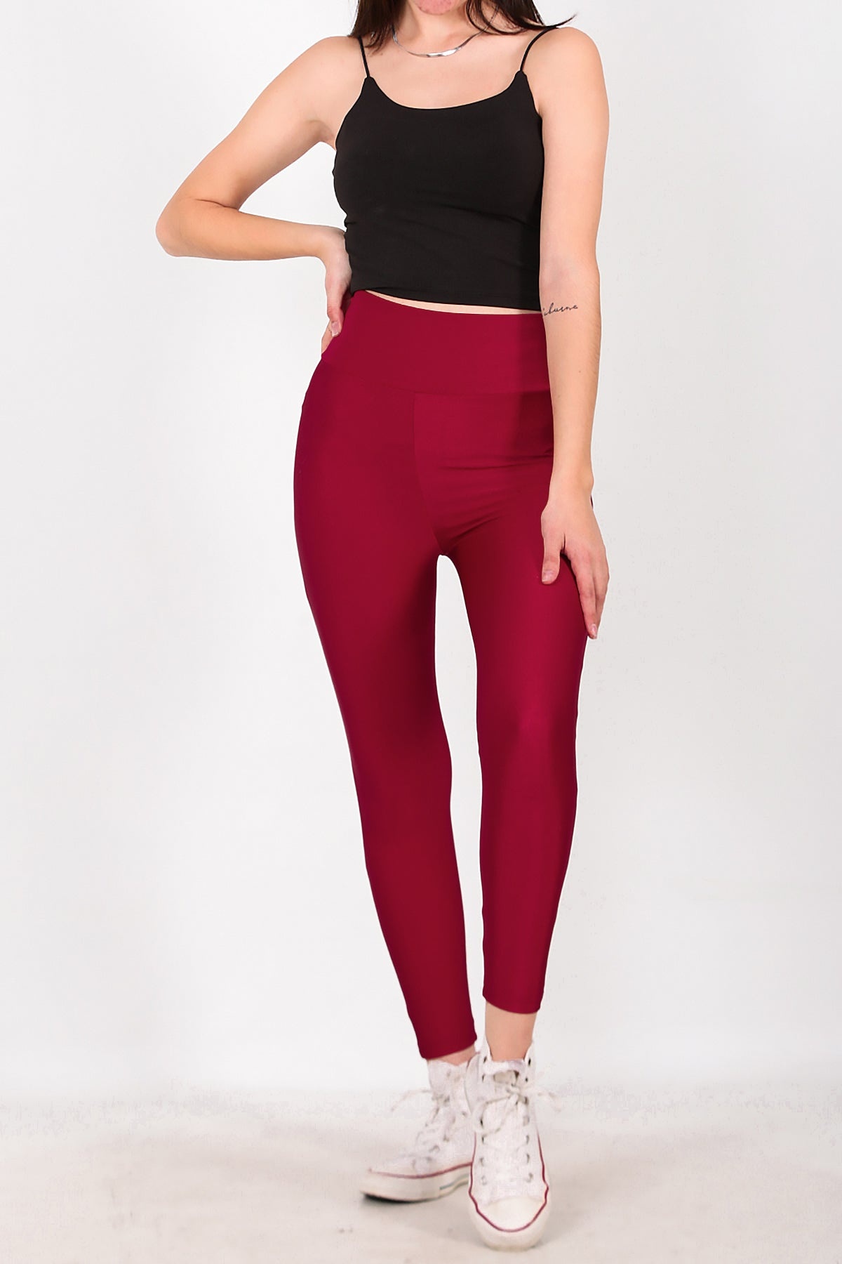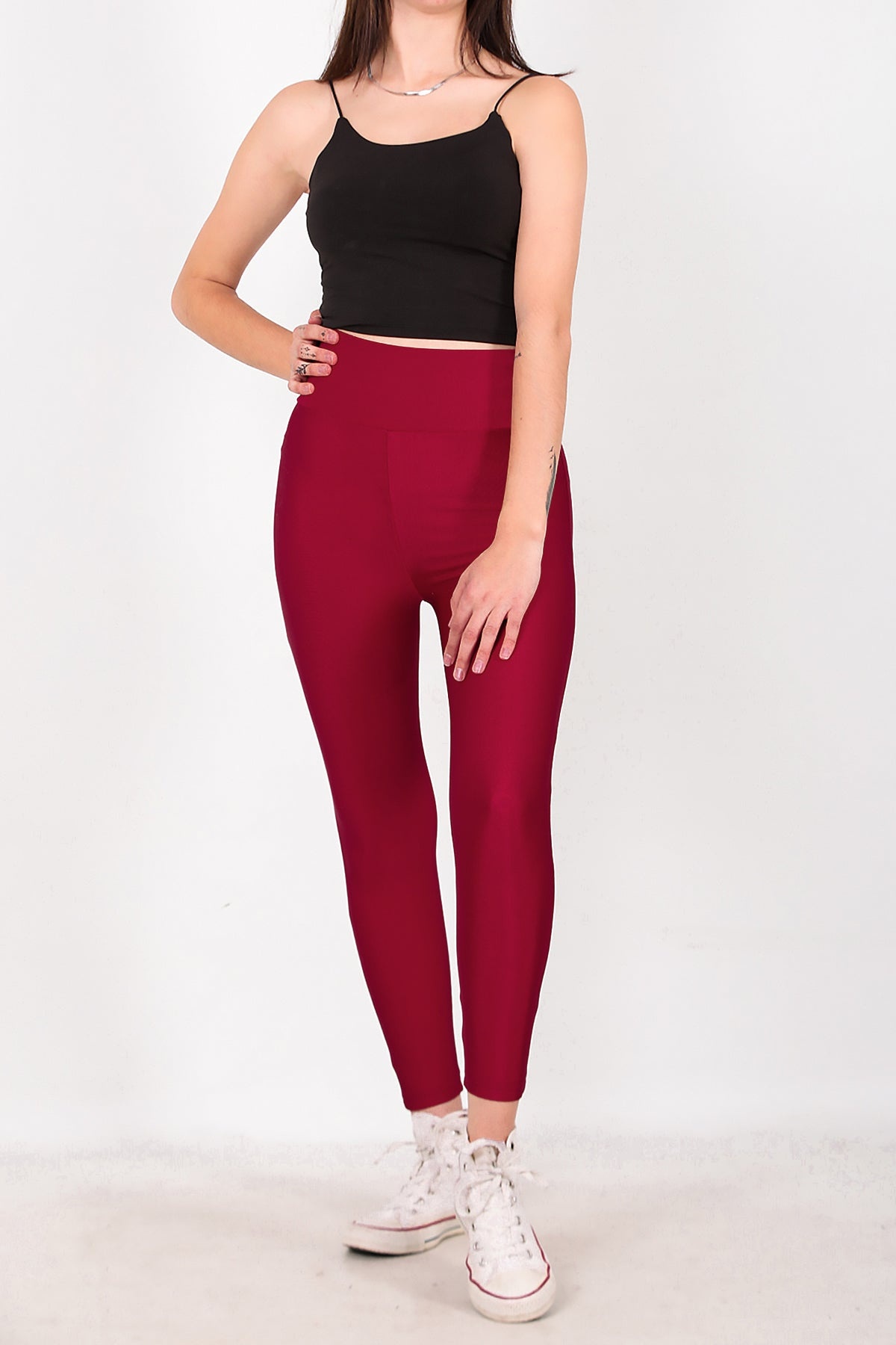 Kadın Yüksek Bel Parlak Tayt Bordo Bordo