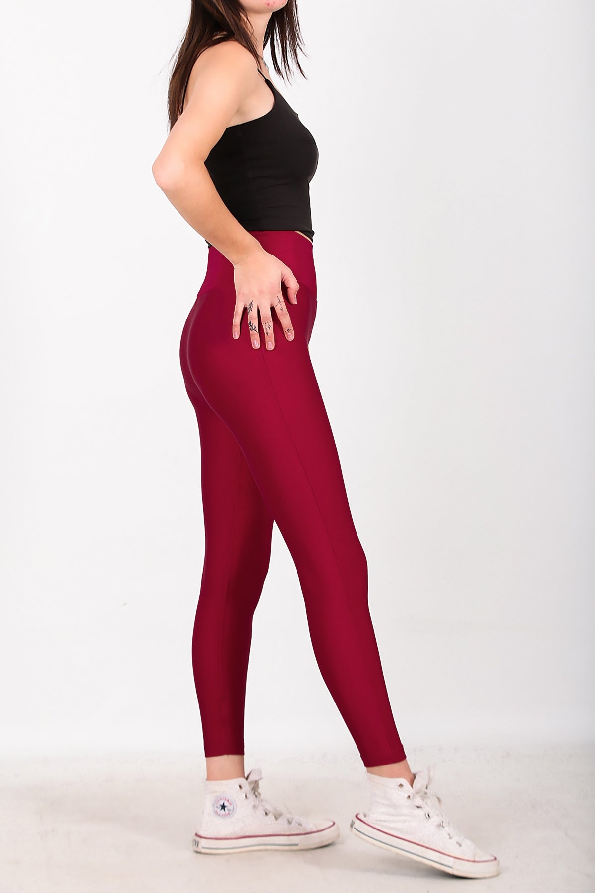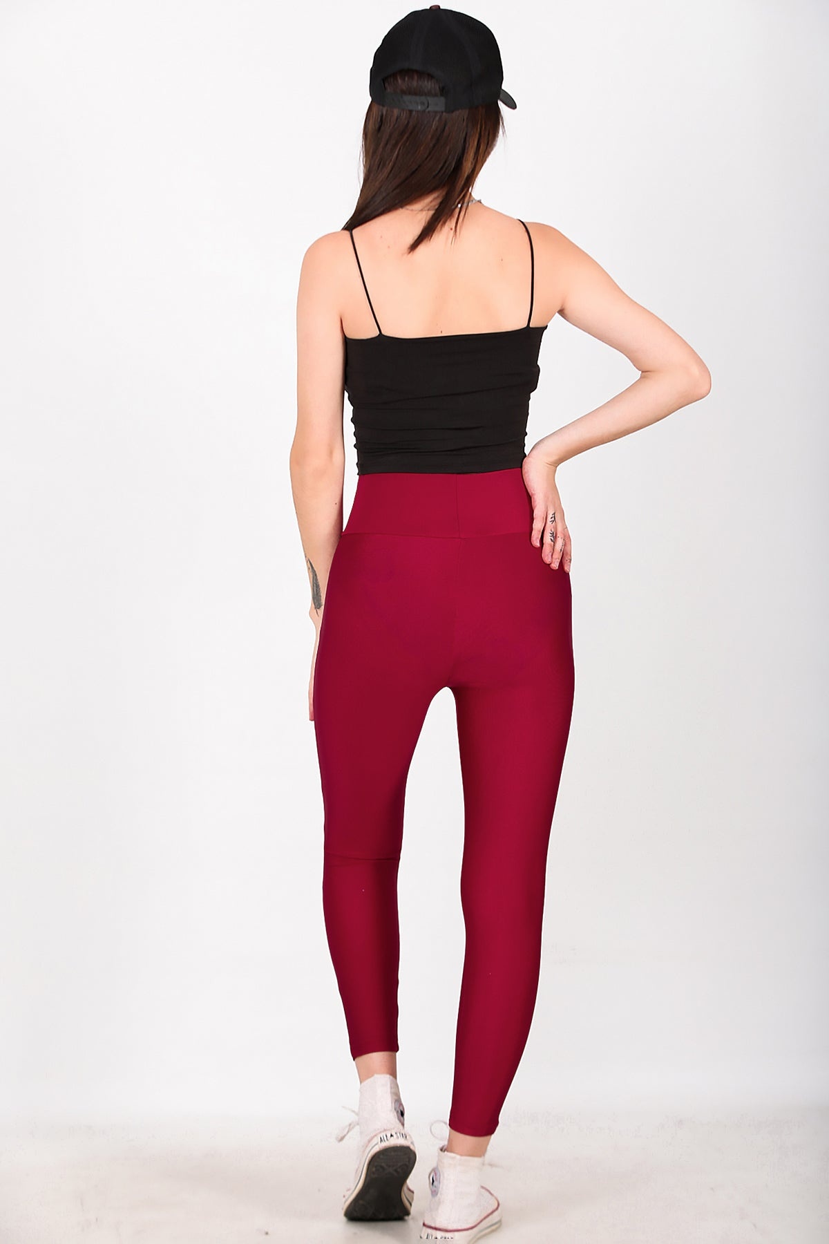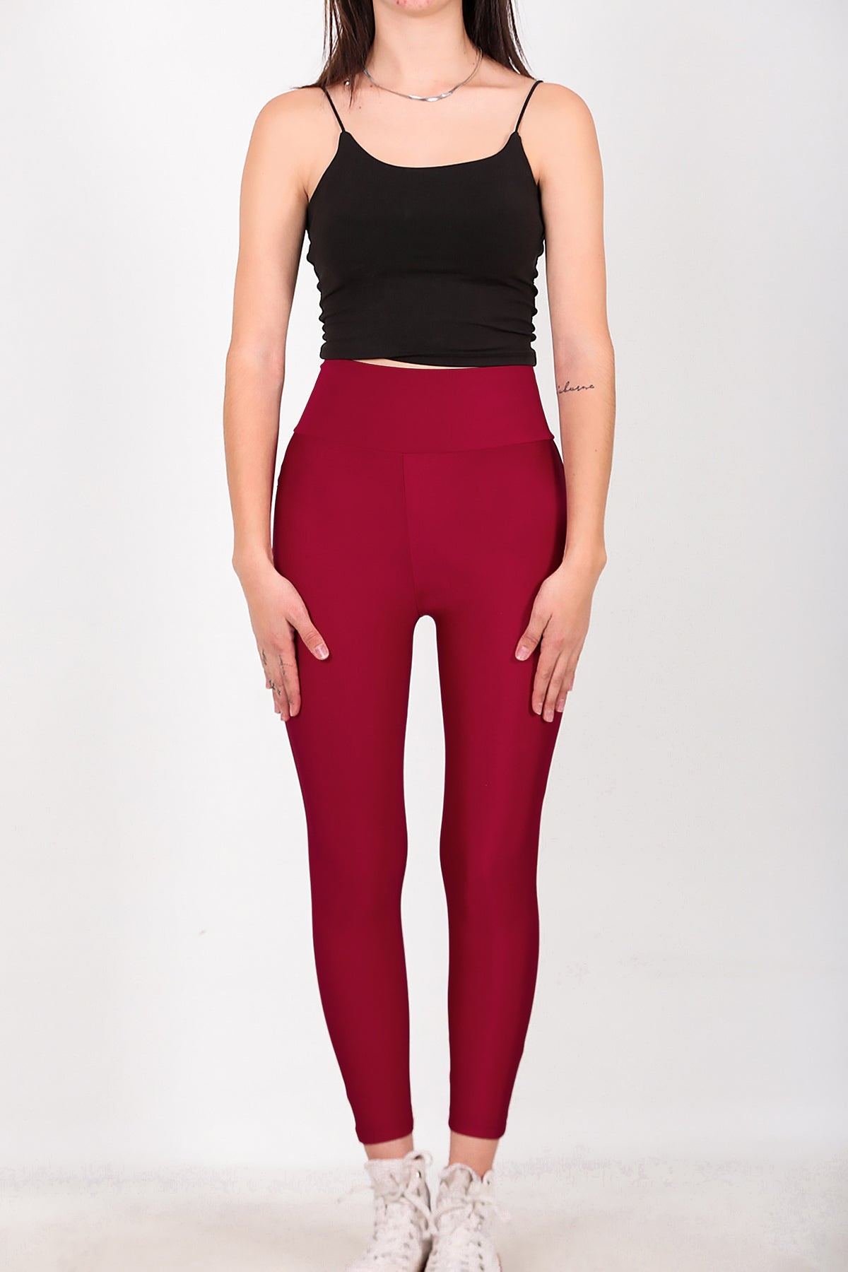 Kadın Yüksek Bel Parlak Tayt Bordo Bordo