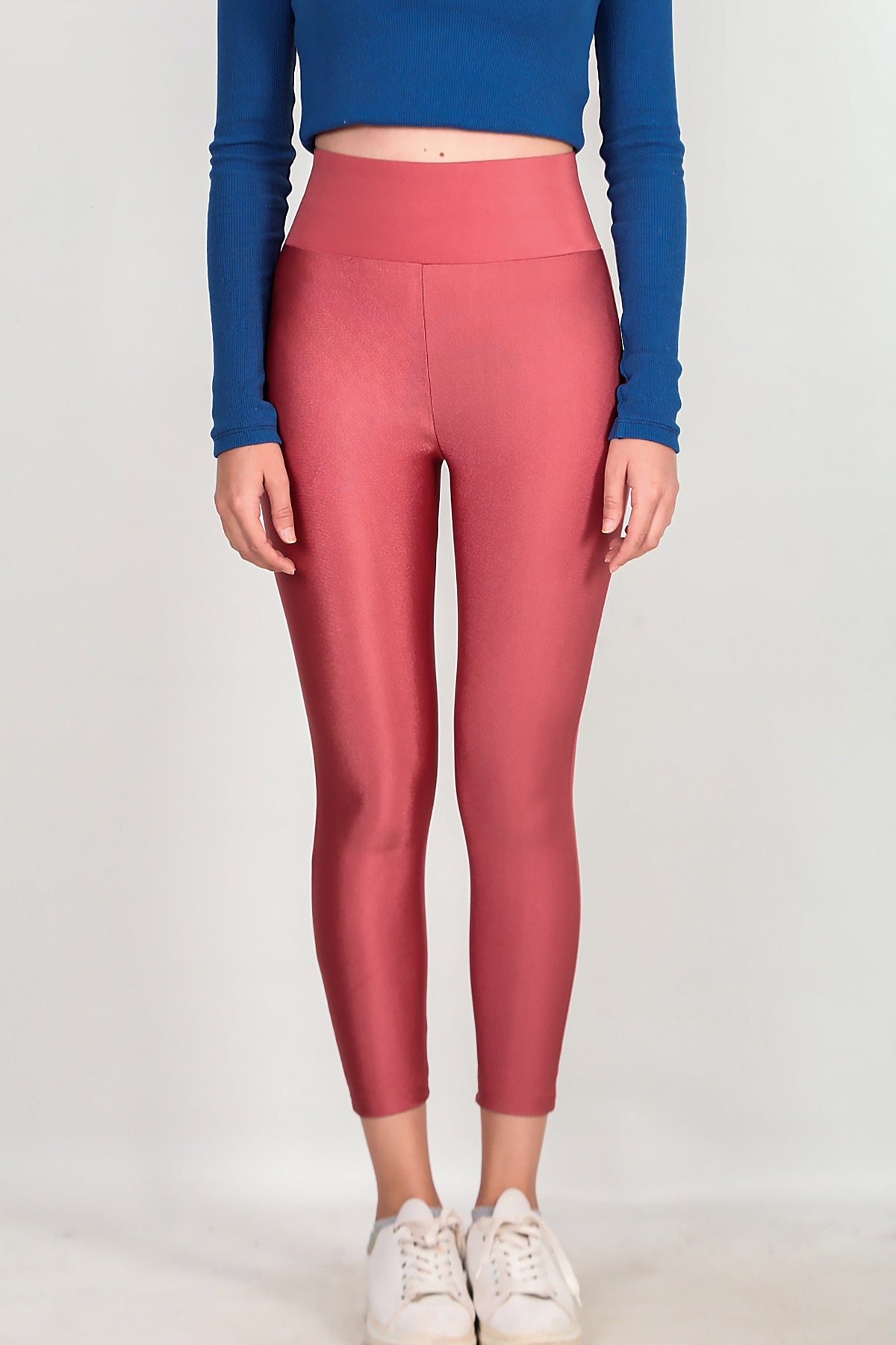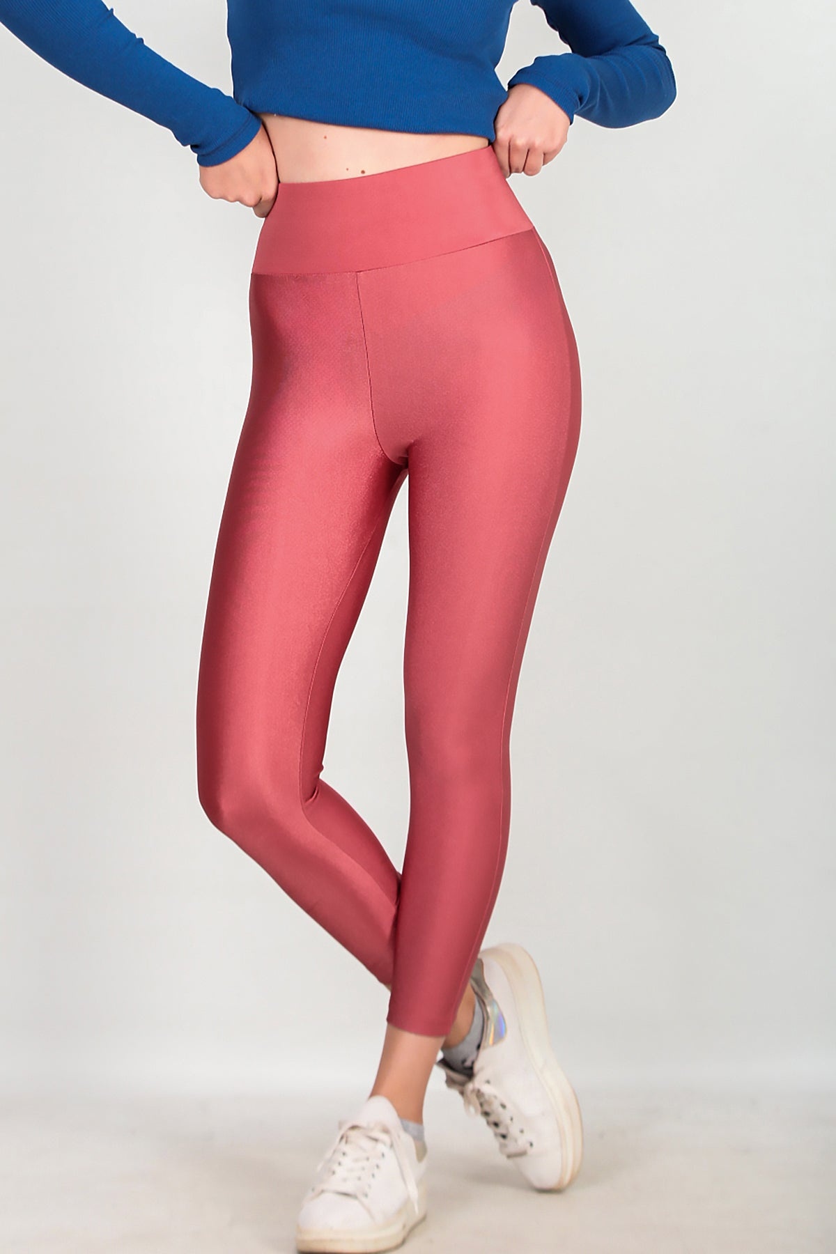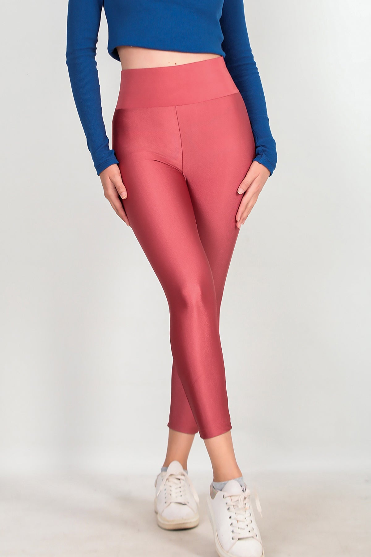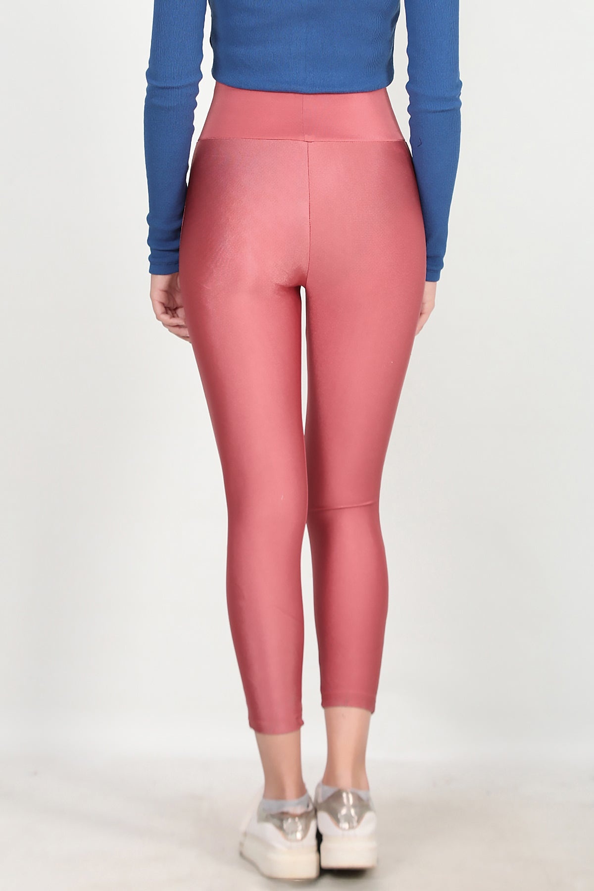 Kadın Yüksek Bel Parlak Tayt Gül Kurusu Gül Kurusu
