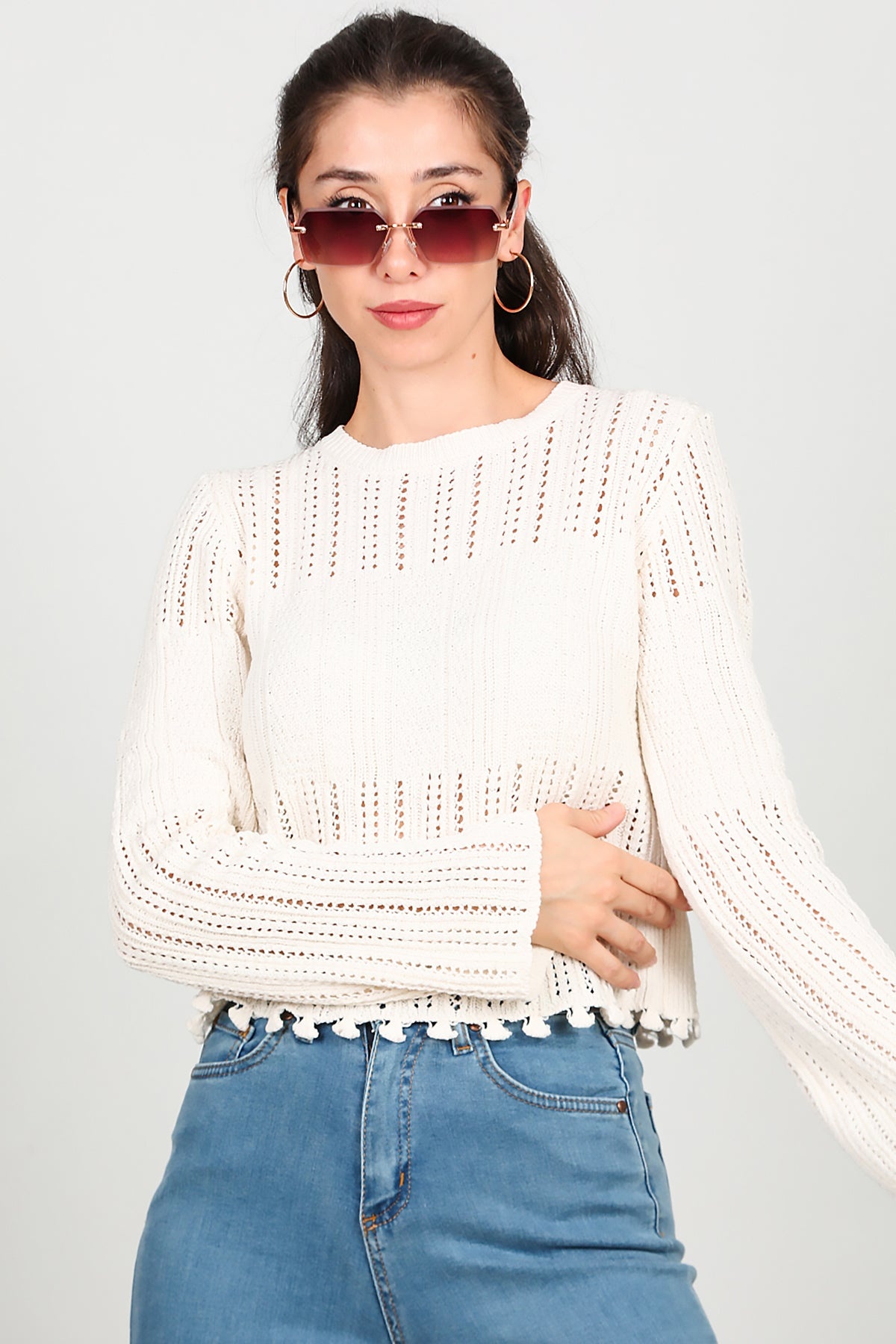 Kadın Alt Püsküllü Triko Ekru