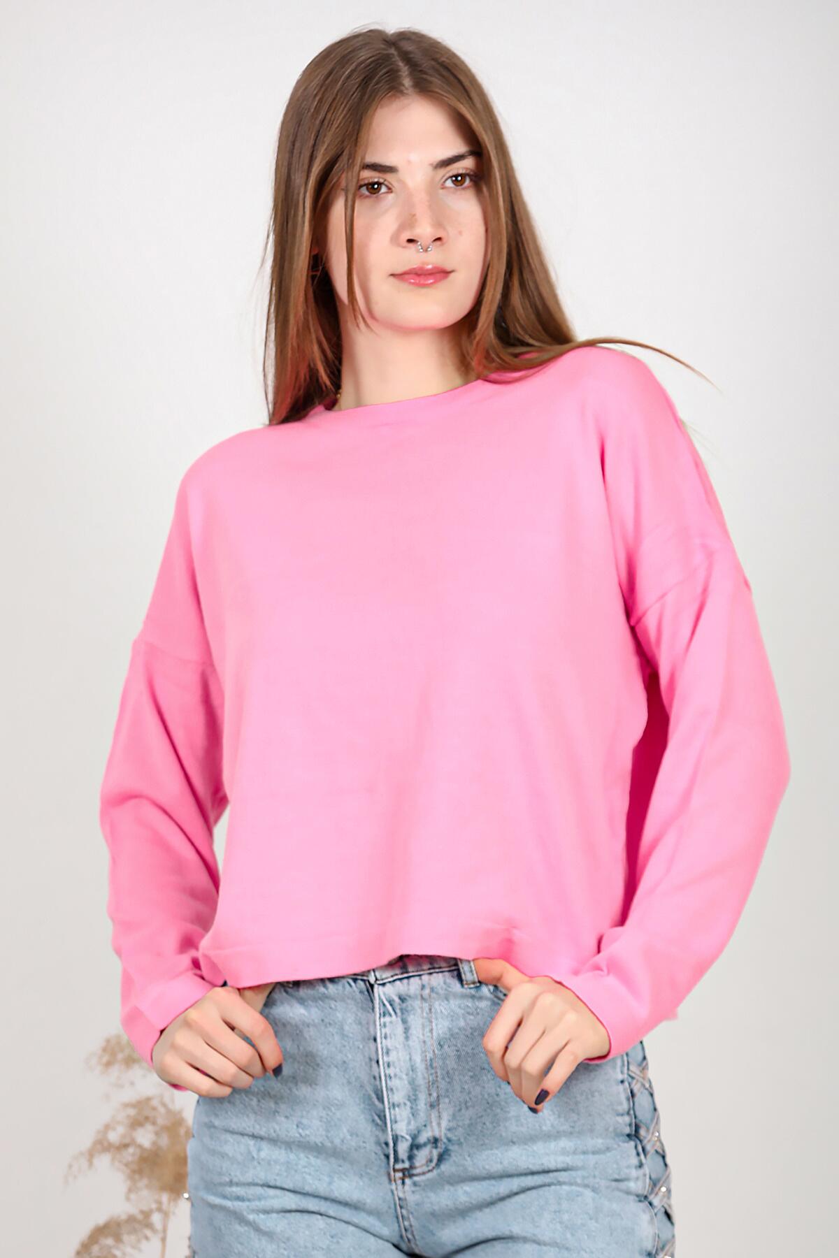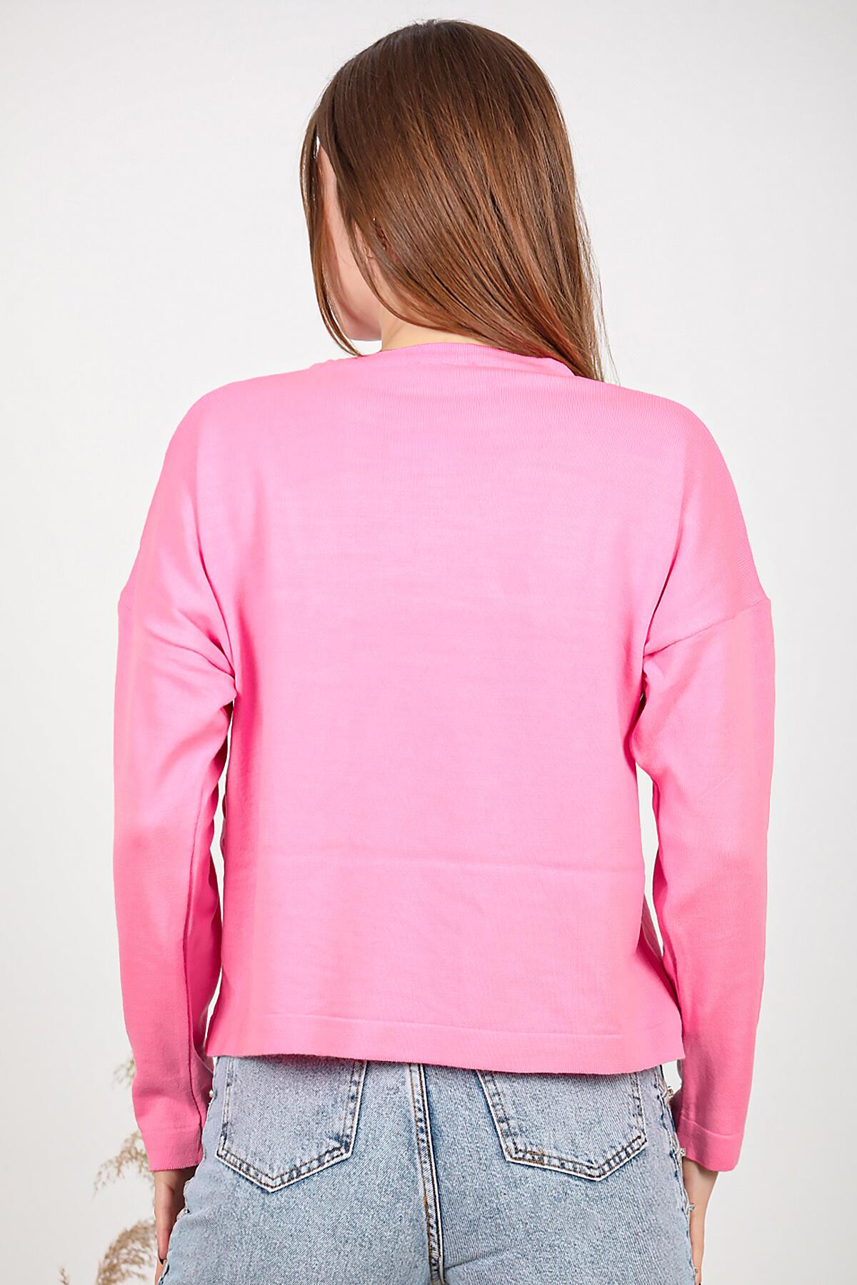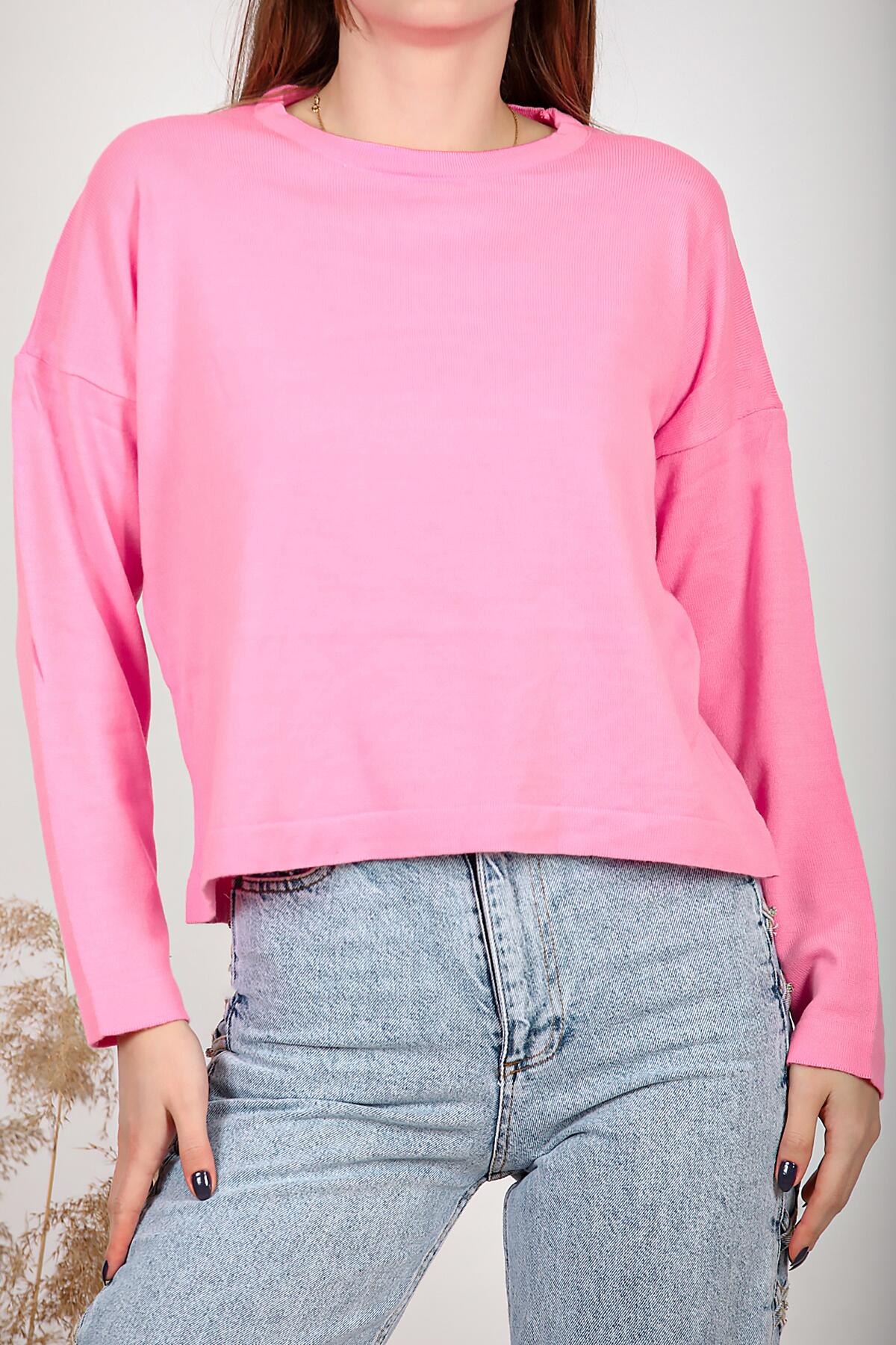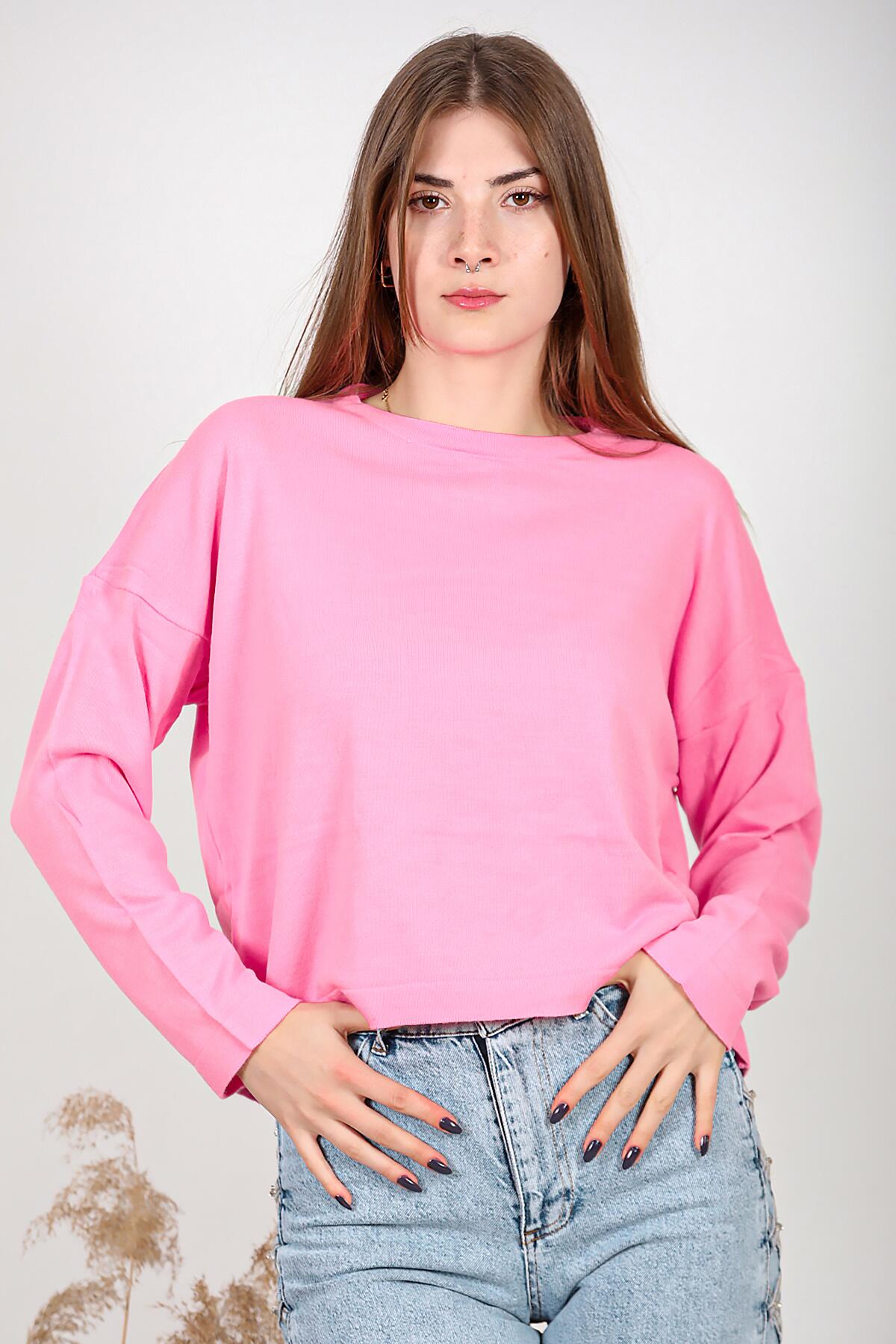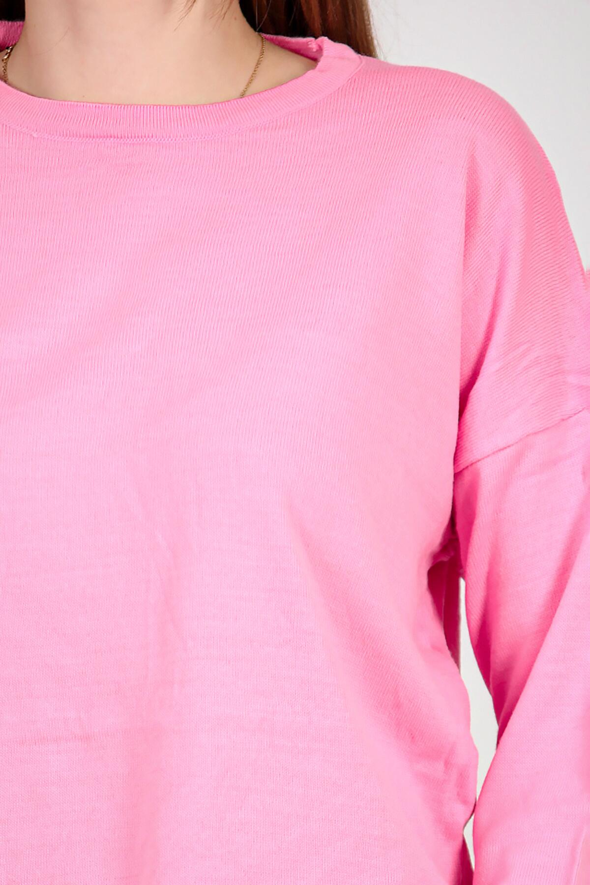 Kadın Bisiklet Yaka Basic Triko Pembe