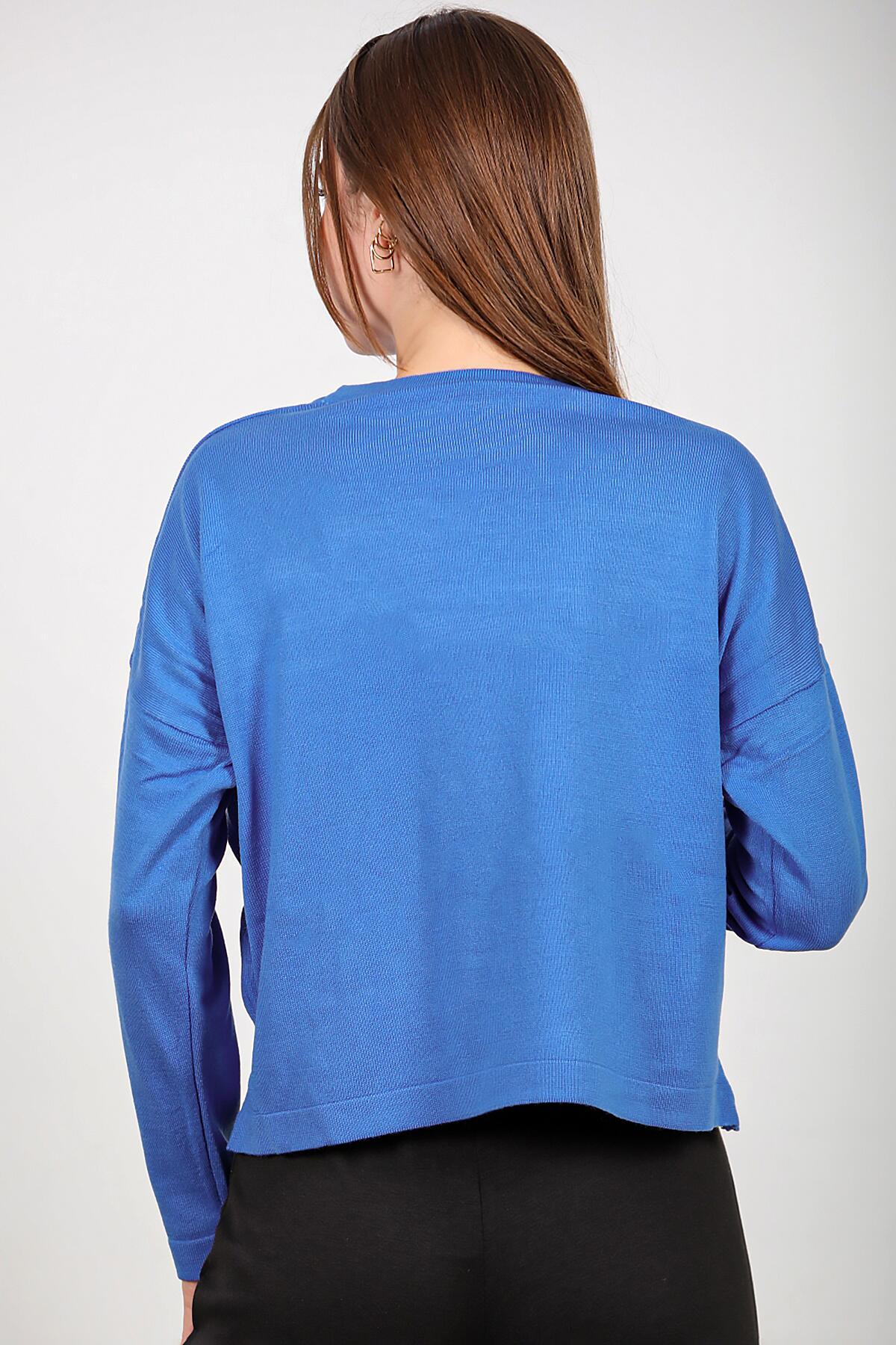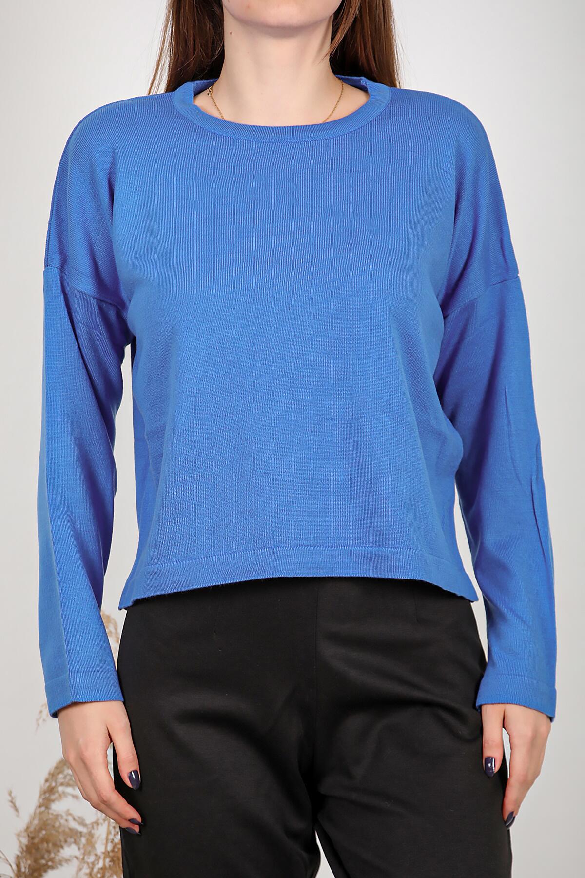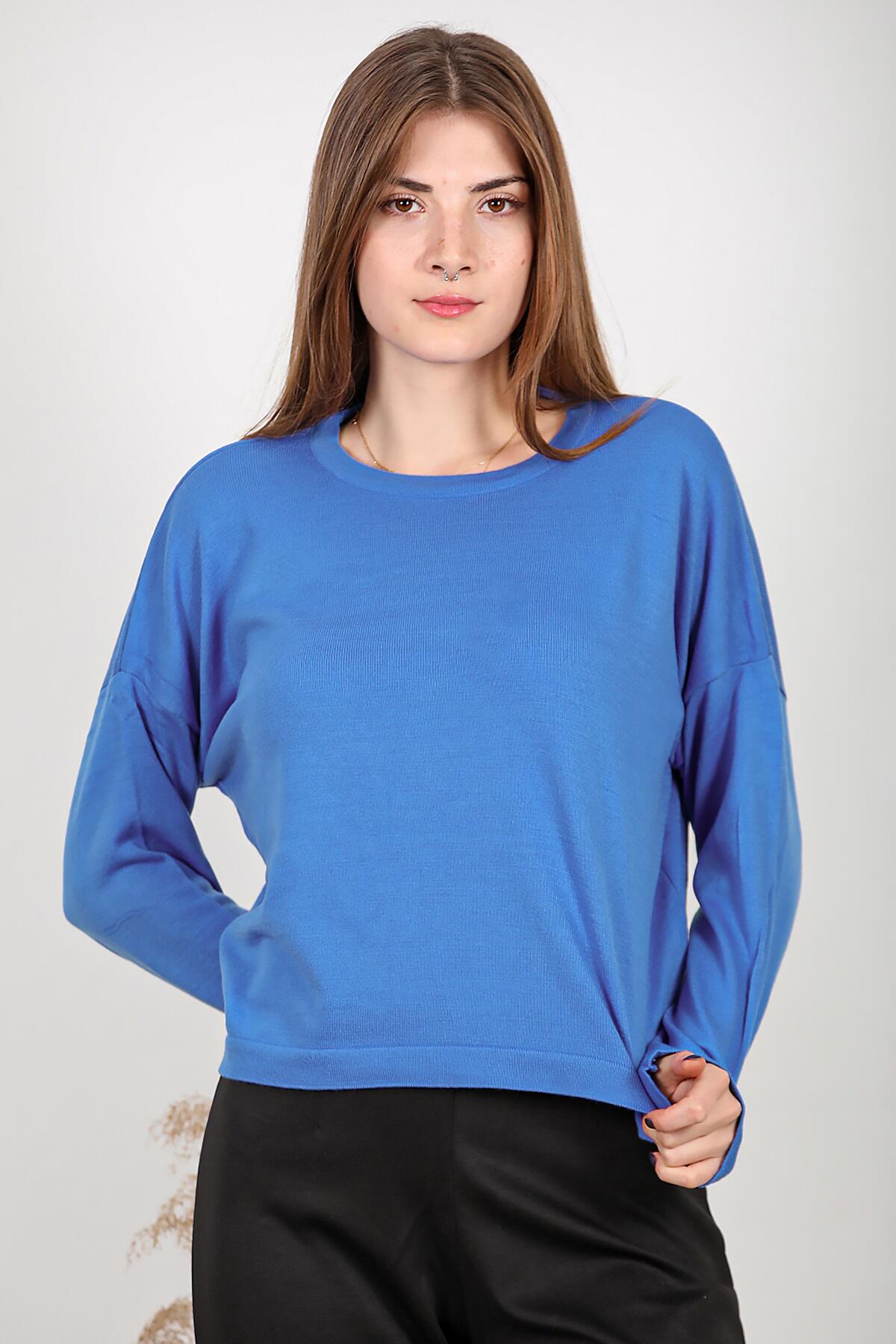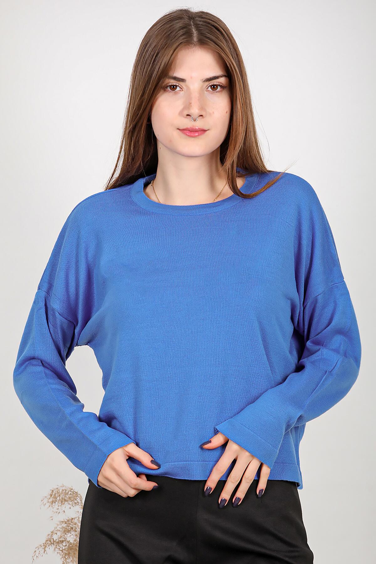 Kadın Bisiklet Yaka Basic Triko Saks