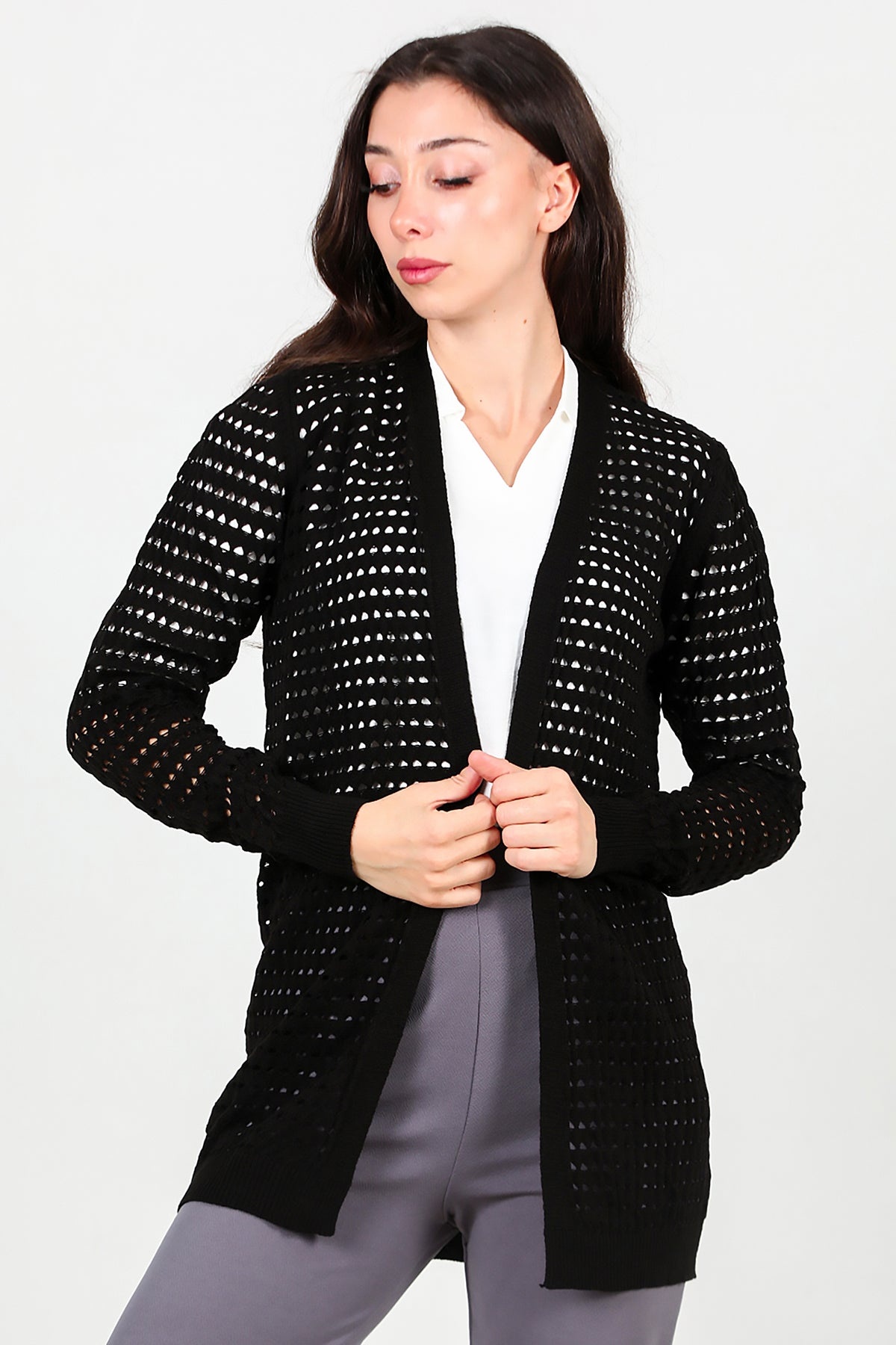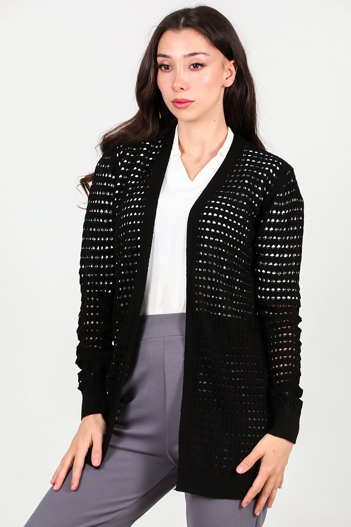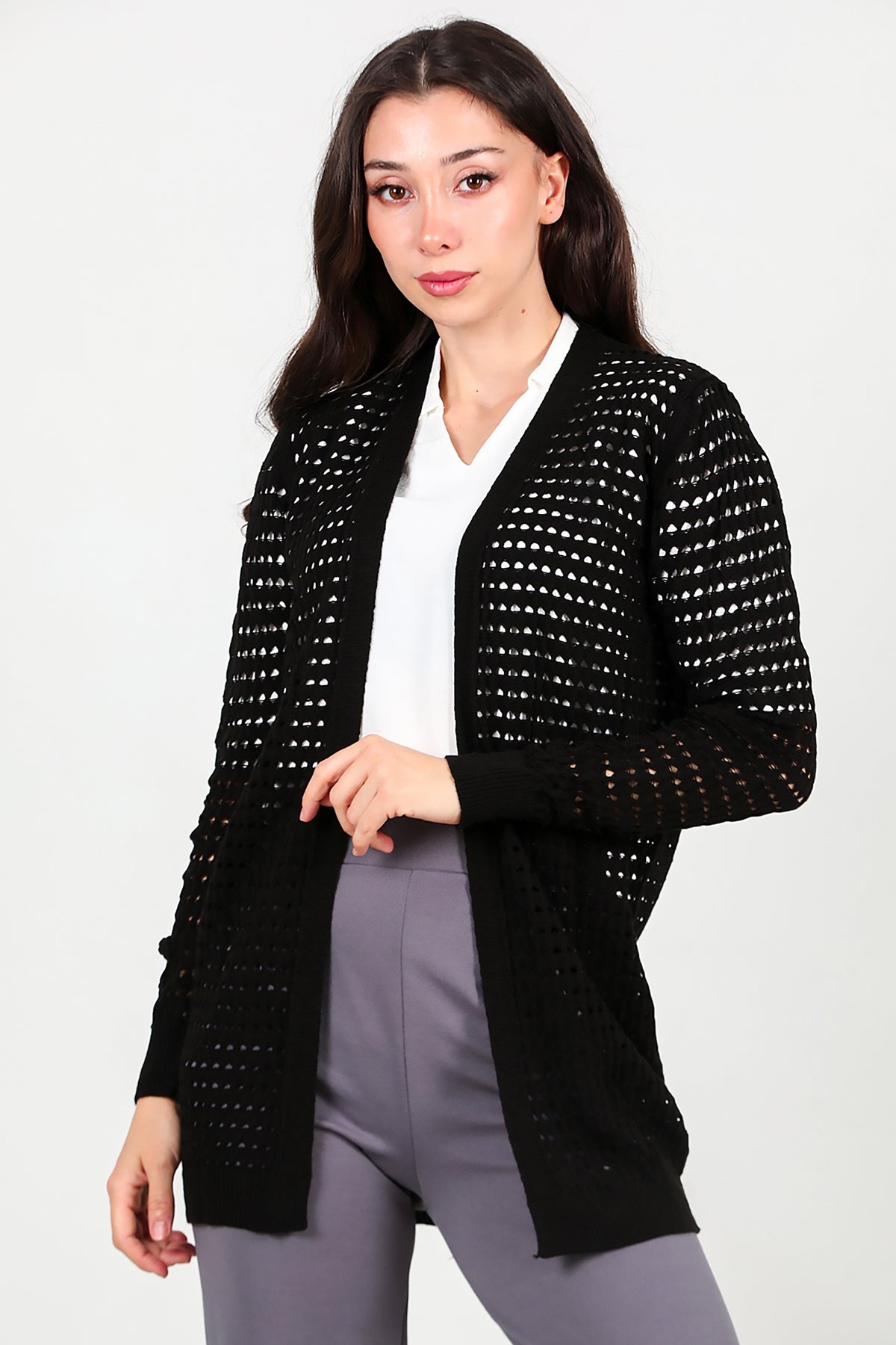 Kadın Delikli Hırka Siyah