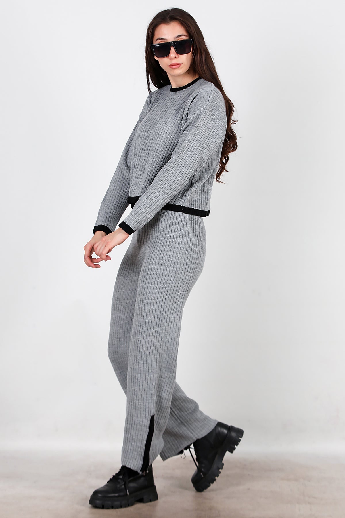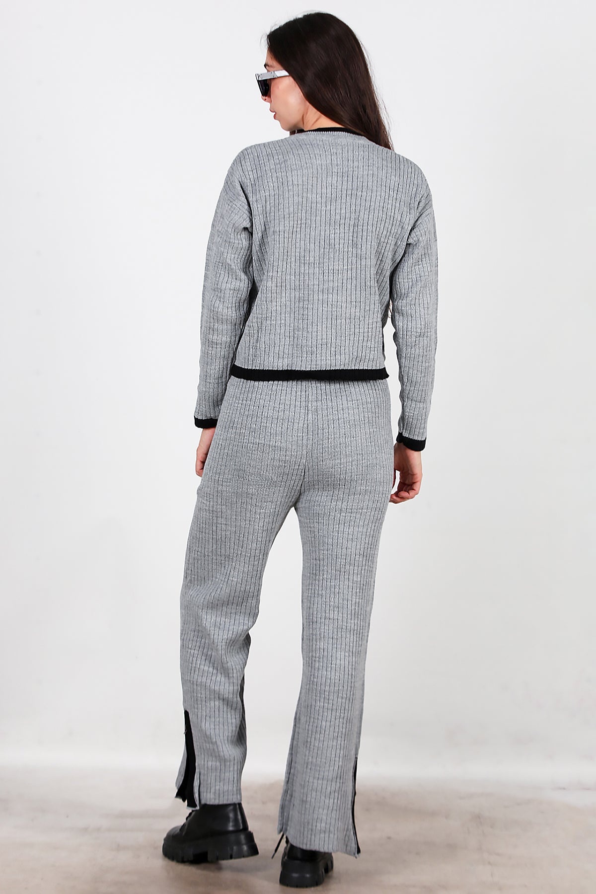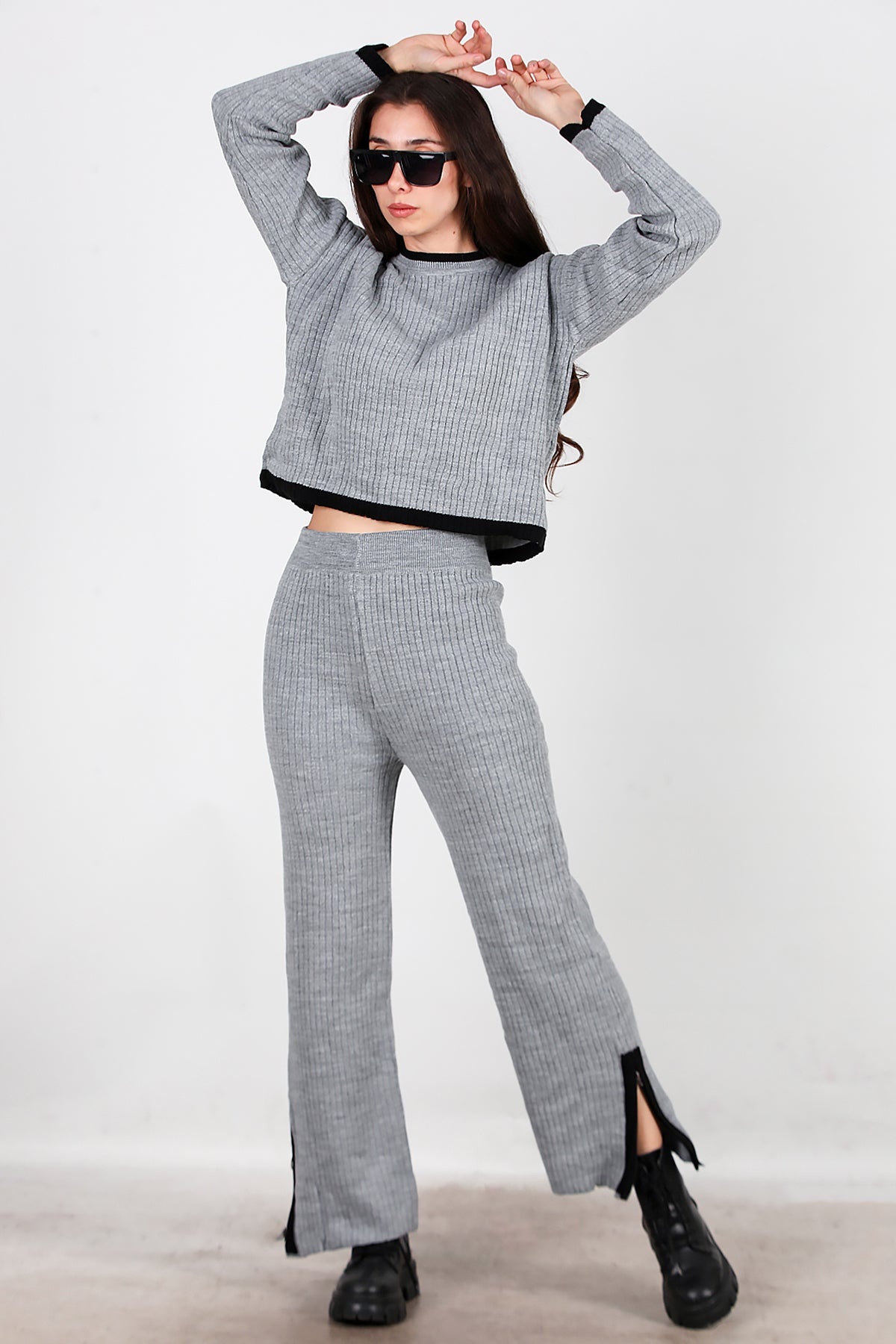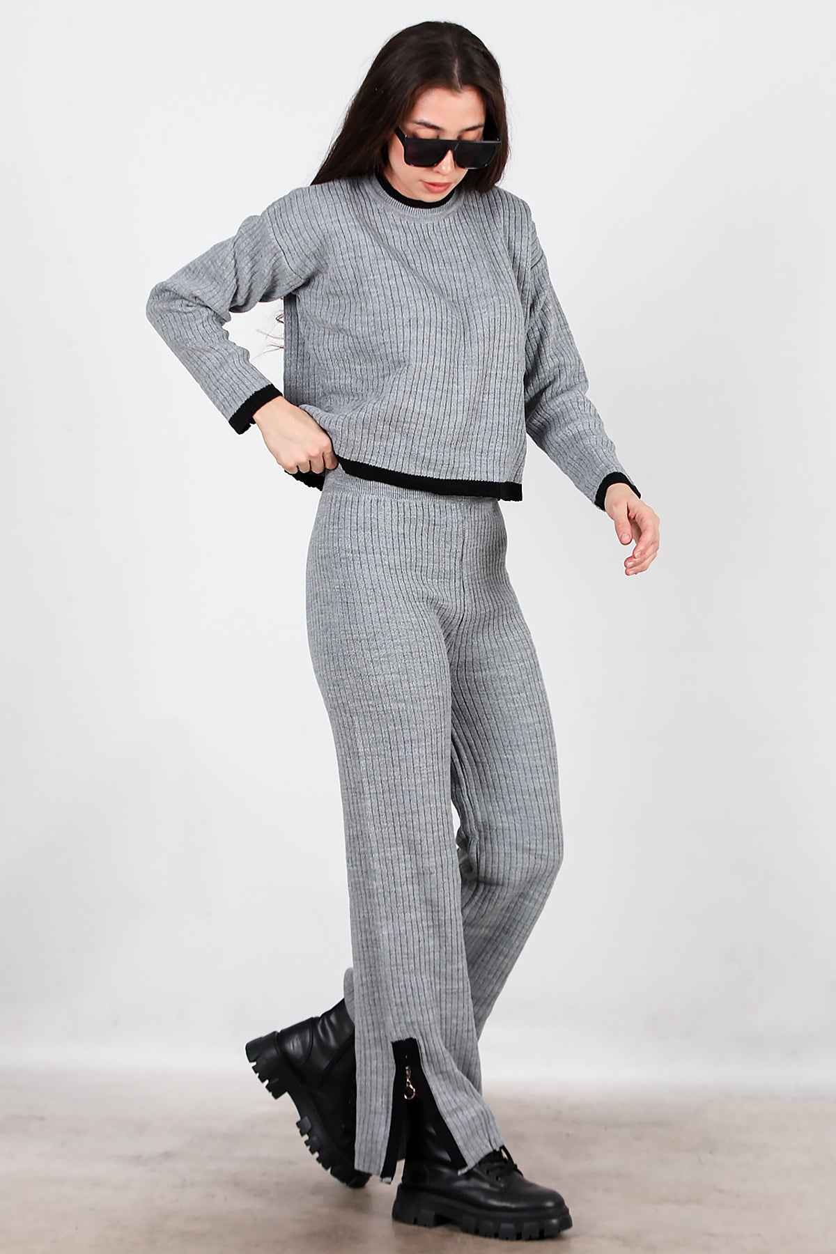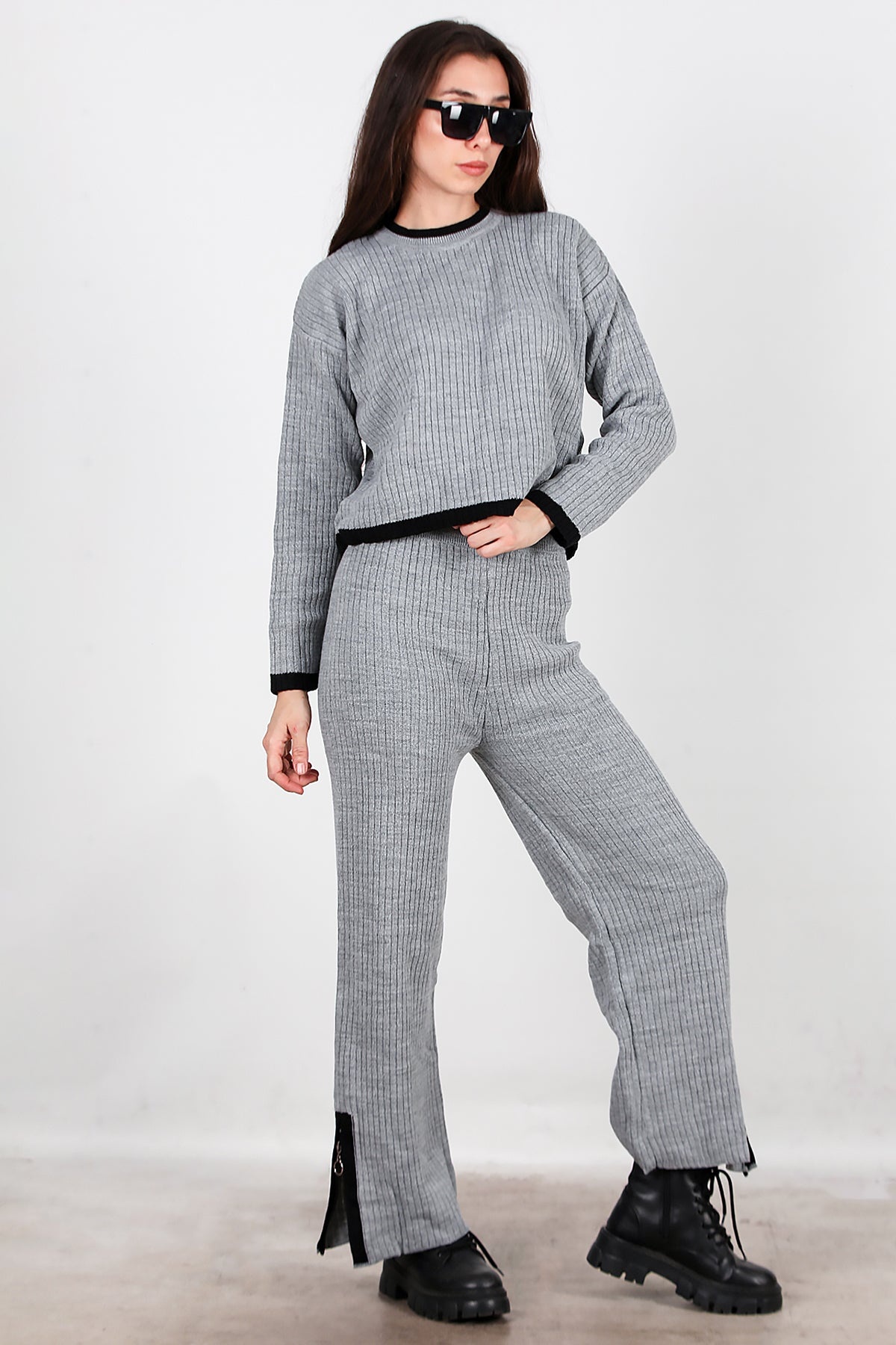 Kadın Garnili Paça Fermuarlı Triko Takım Antrasit