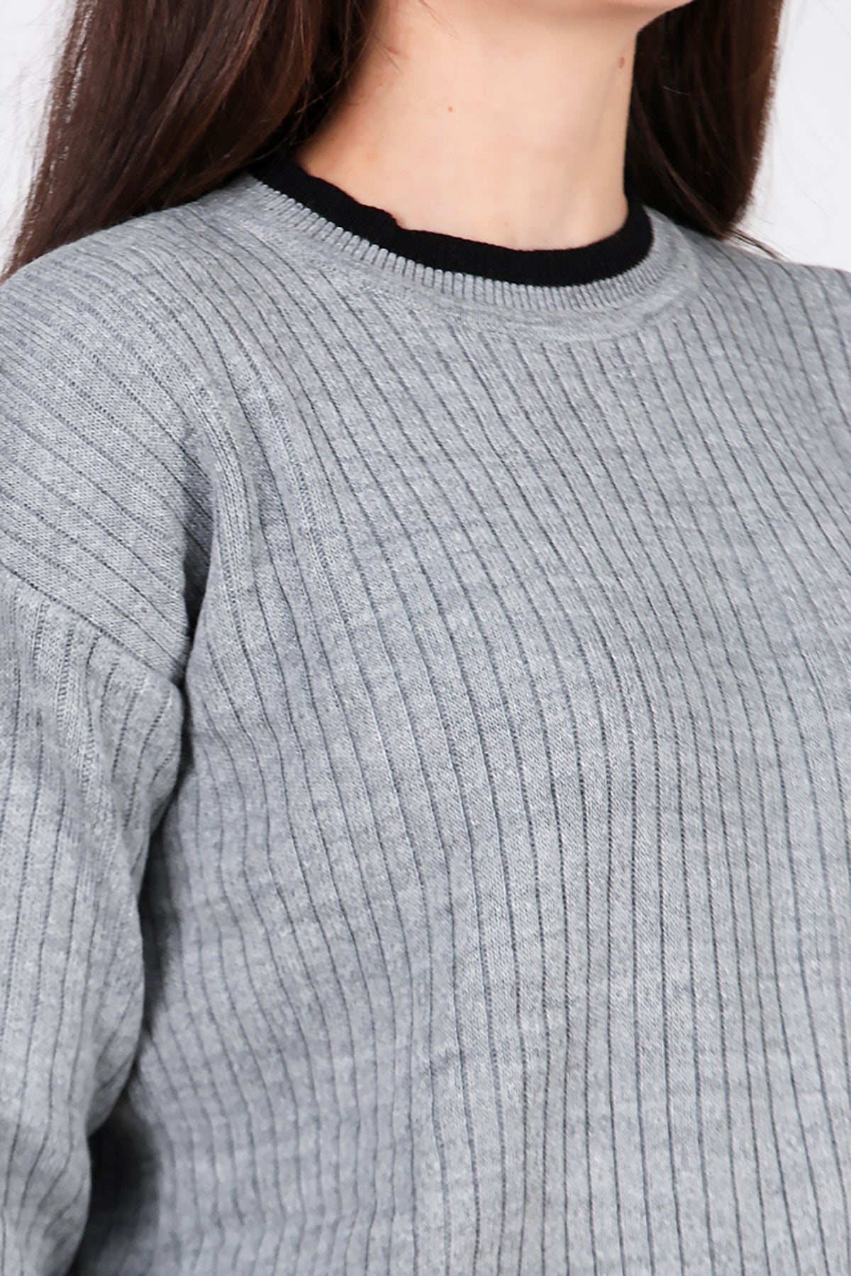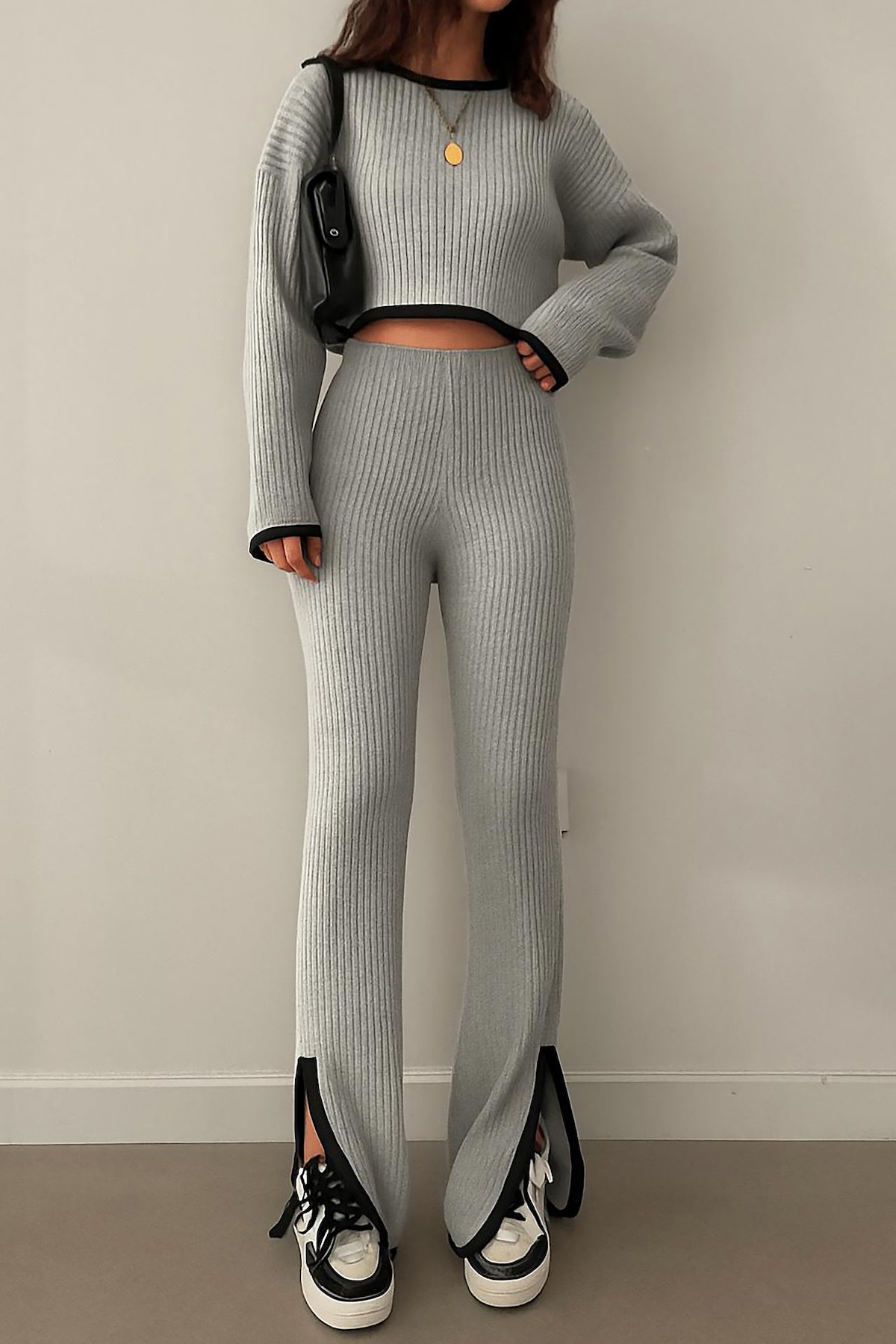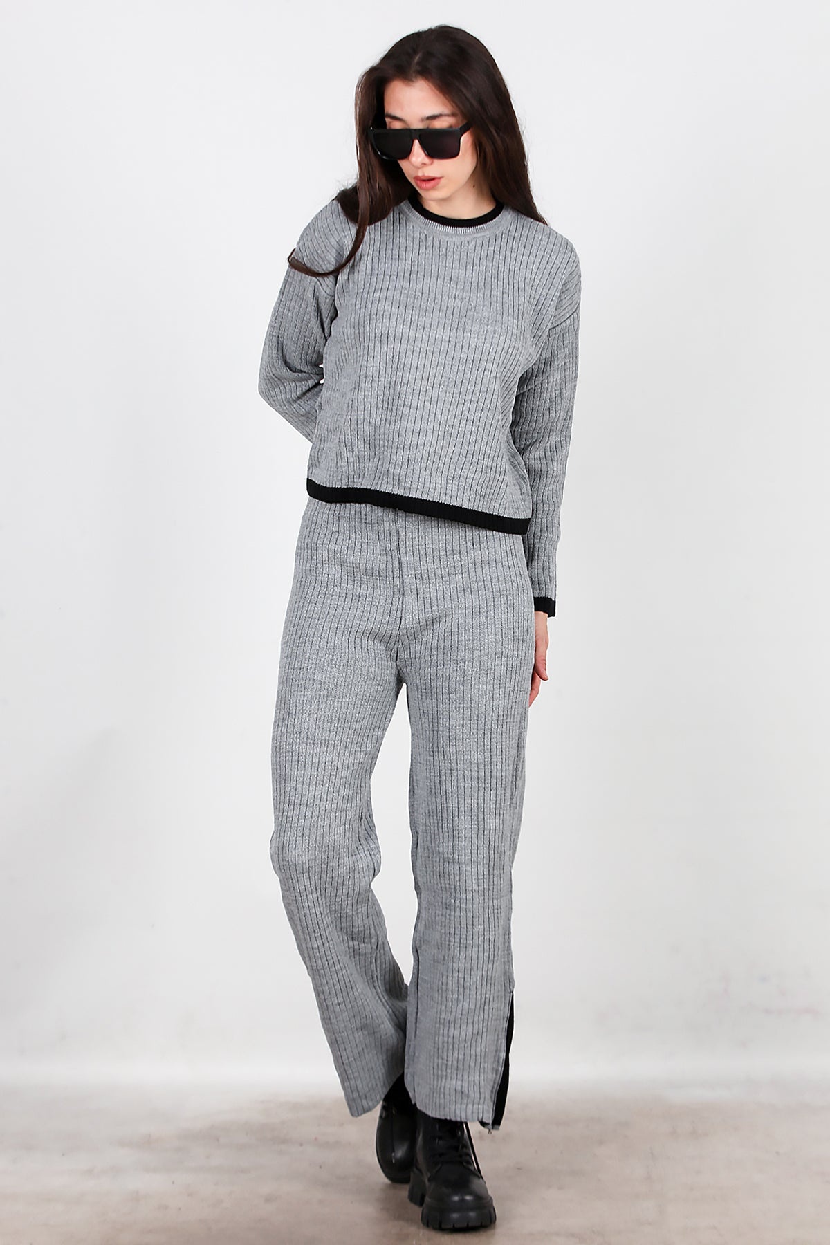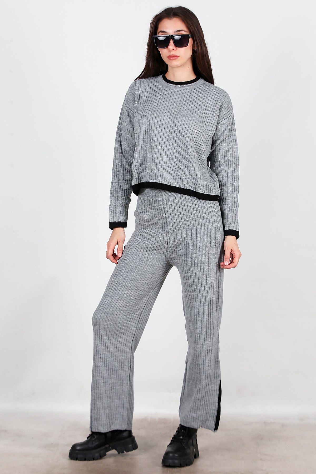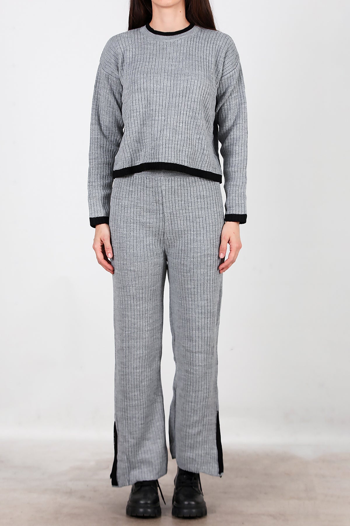 Kadın Garnili Paça Fermuarlı Triko Takım Antrasit
