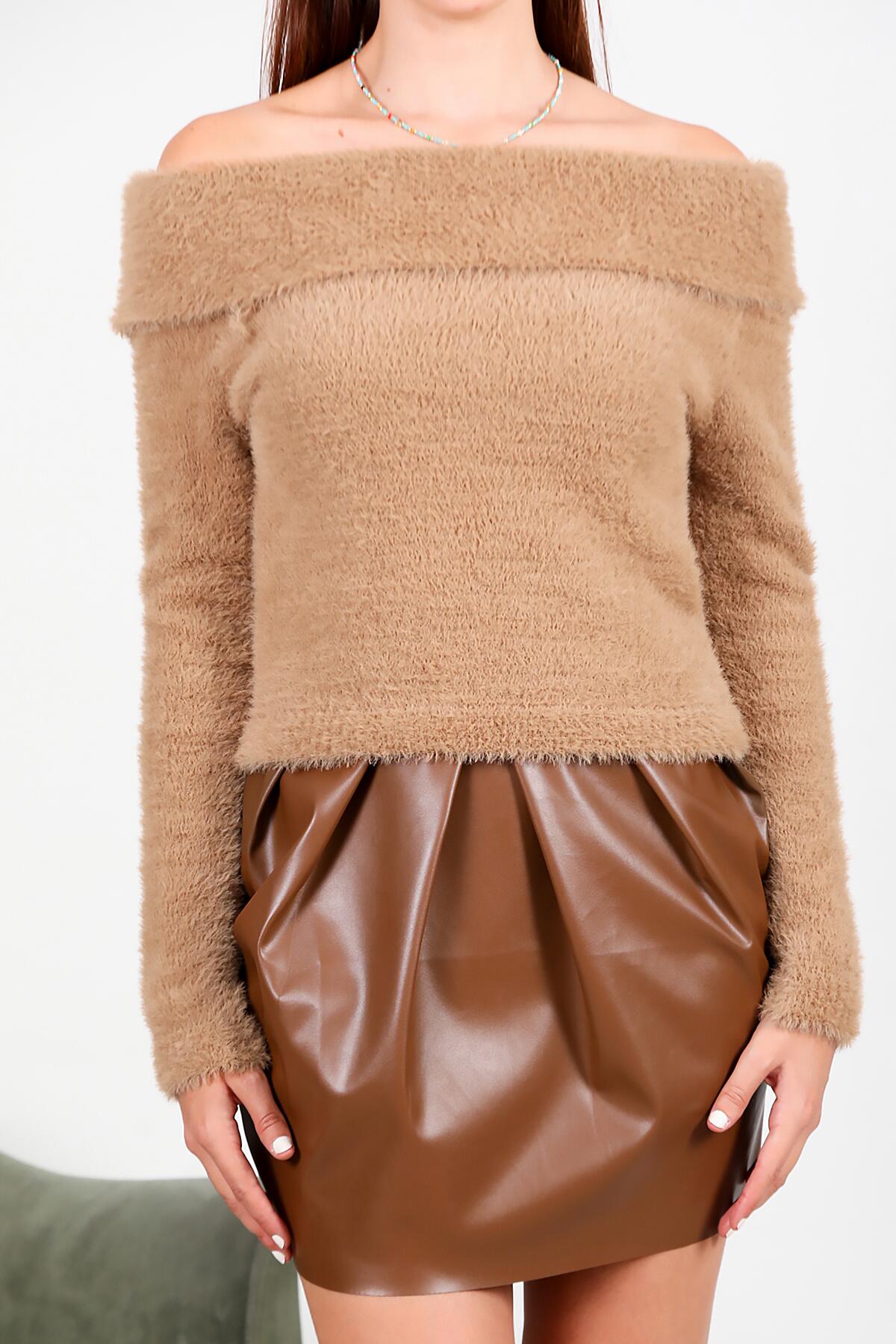Kadın Madonna Yaka Yumoş Kazak Vizon