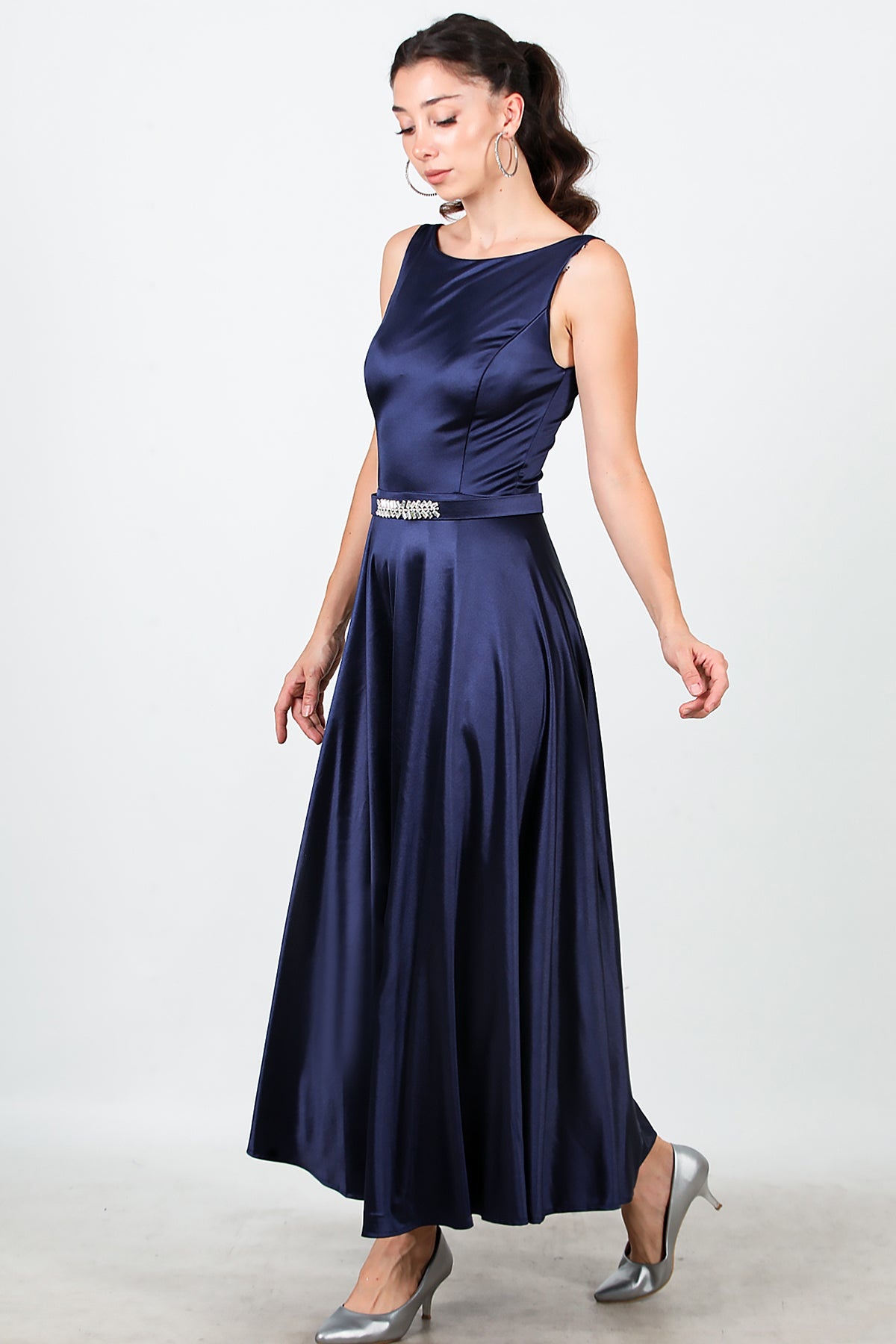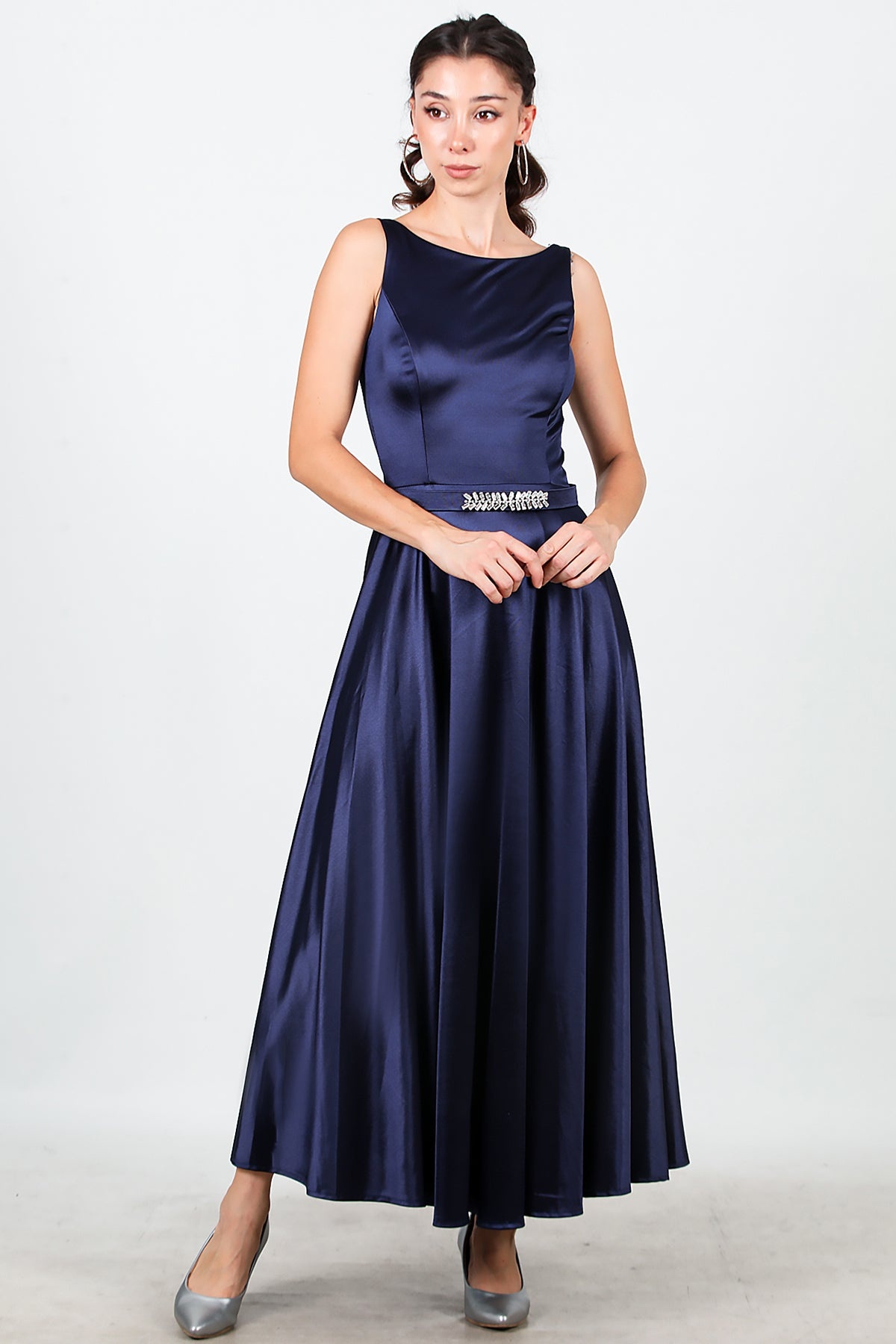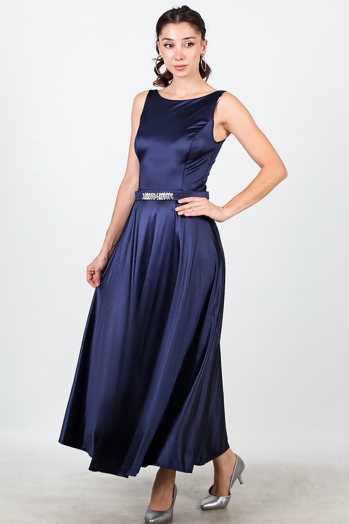 Kadın Askılı Kemerli Midi Boy Abiye Lacivert