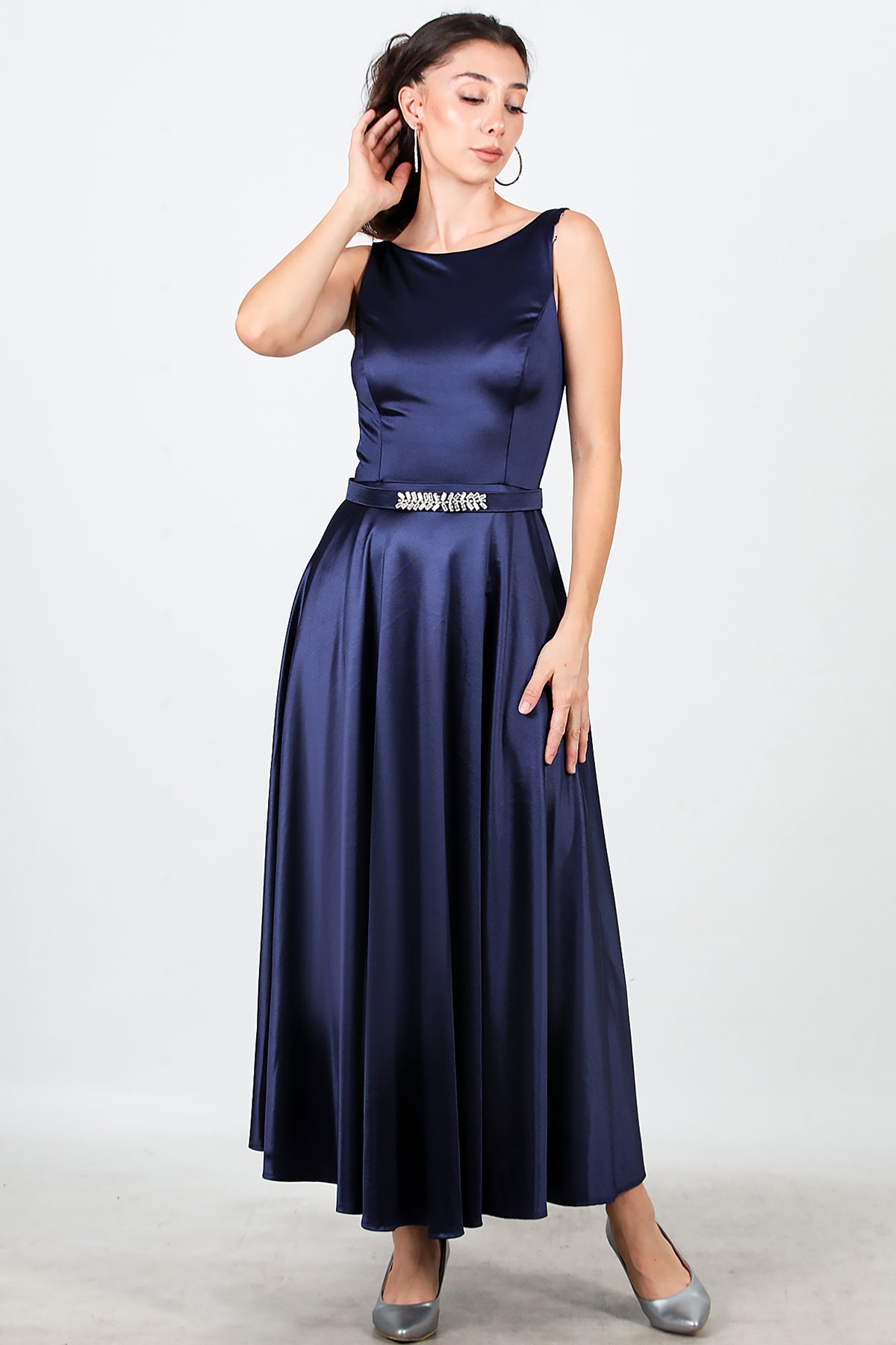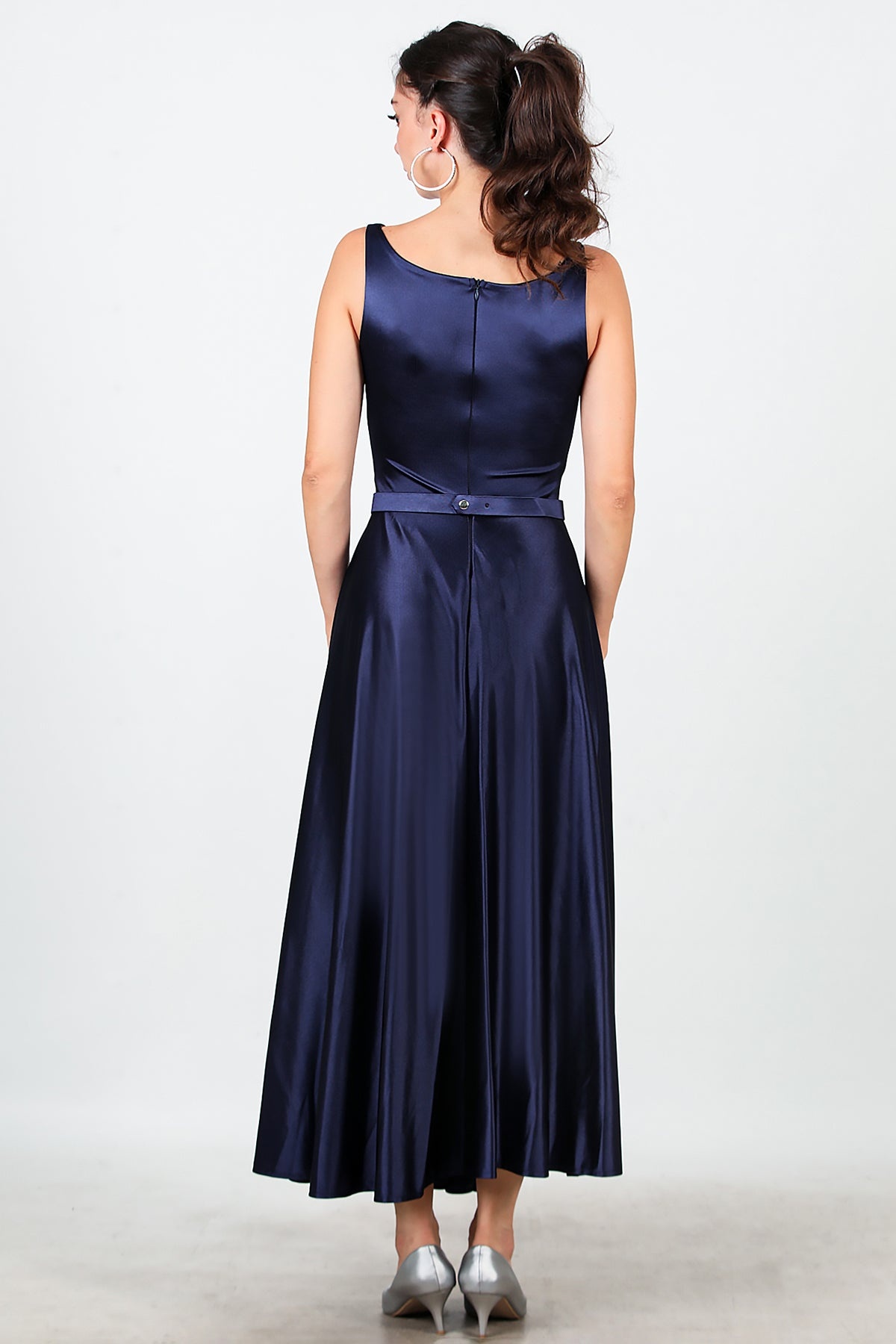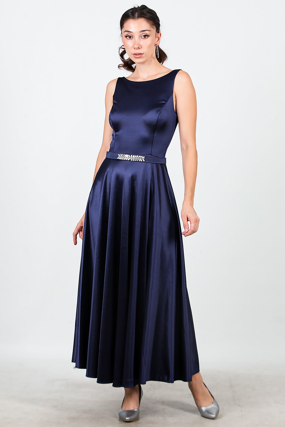 Kadın Askılı Kemerli Midi Boy Abiye Lacivert