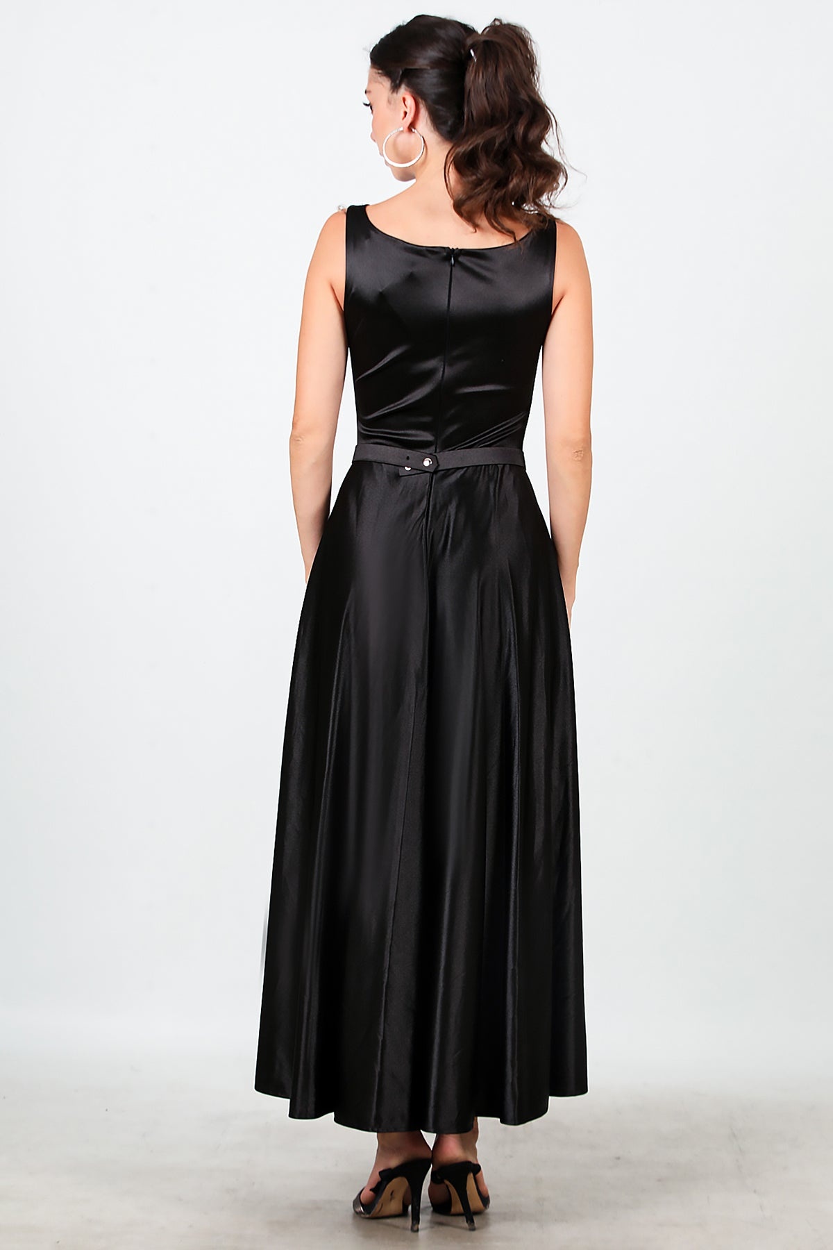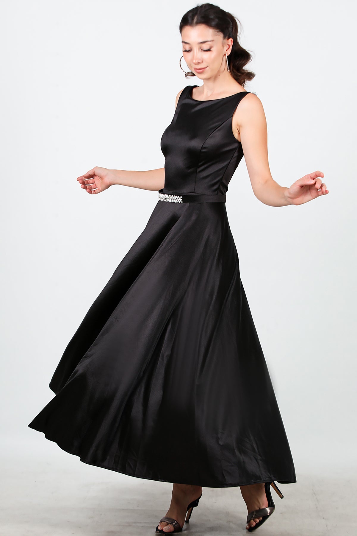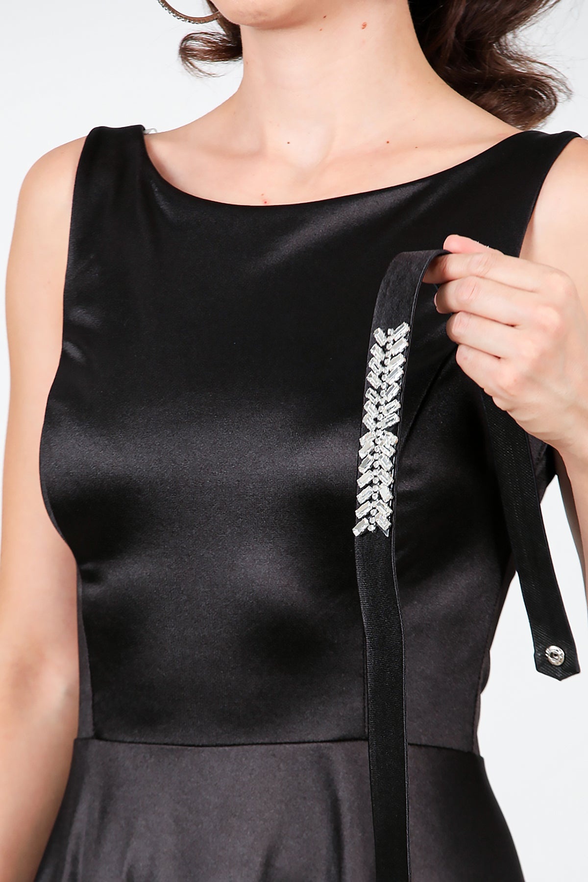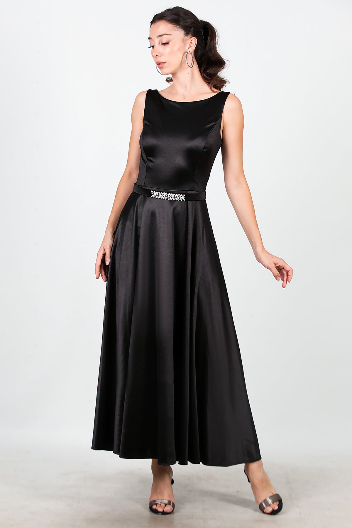 Kadın Askılı Kemerli Midi Boy Abiye Siyah