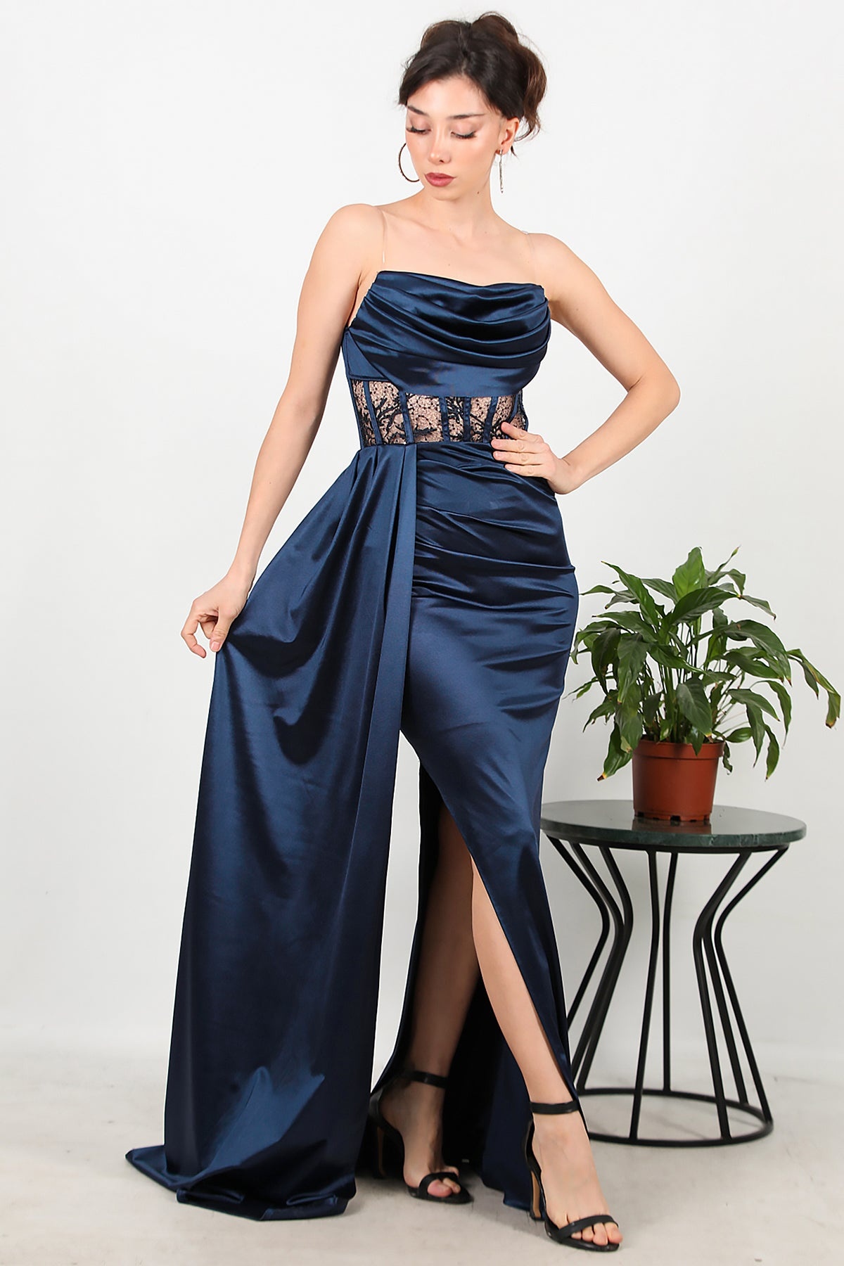 Numune Bedeni: 36Numune Boyu: 157 cmKumaş Tipi: %100 PolyesterKol: Kolsuz