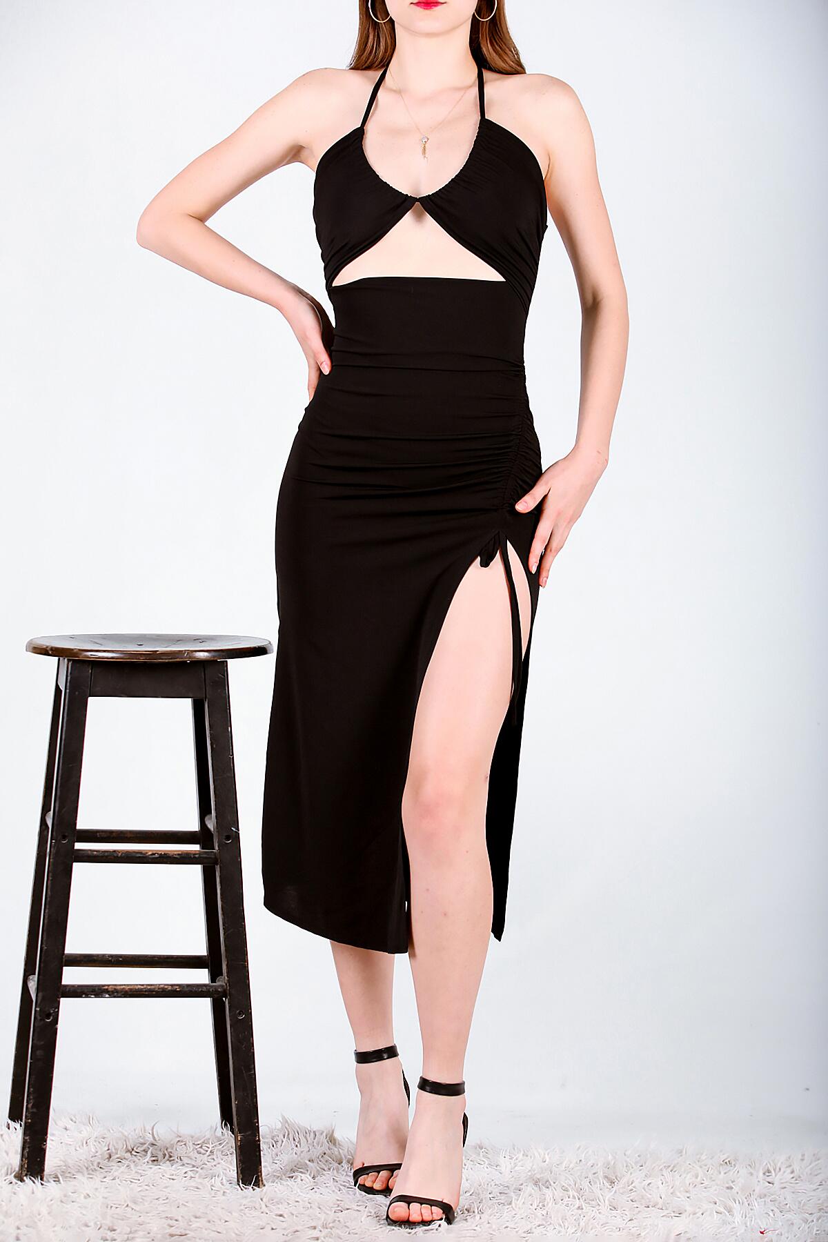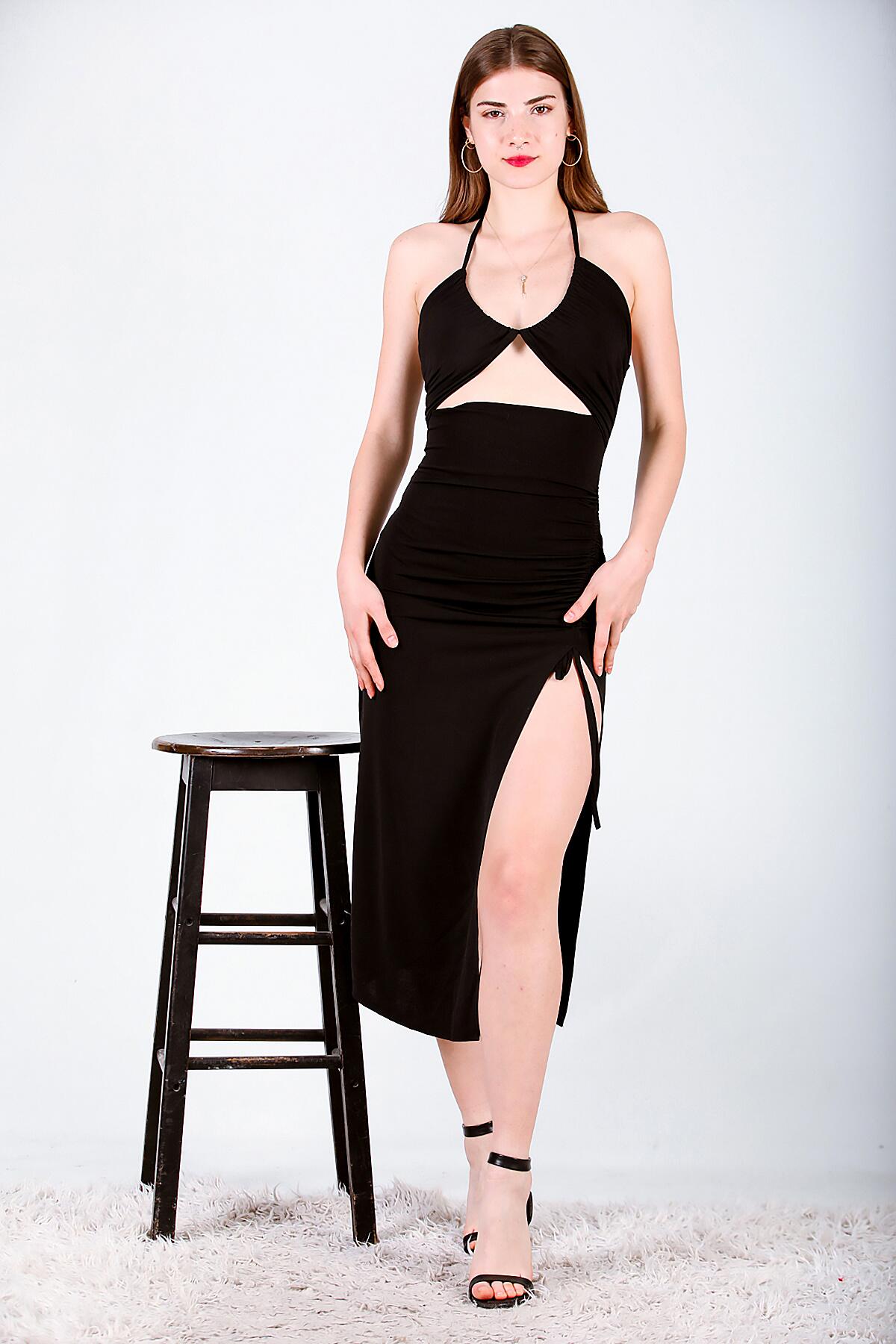 Kadın Boyundan Bağlamalı Midi Boy Elbise Siyah