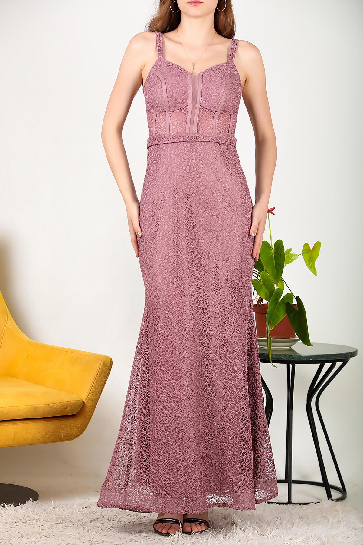 Kadın Dantel Uzun Abiye Gül Kurusu