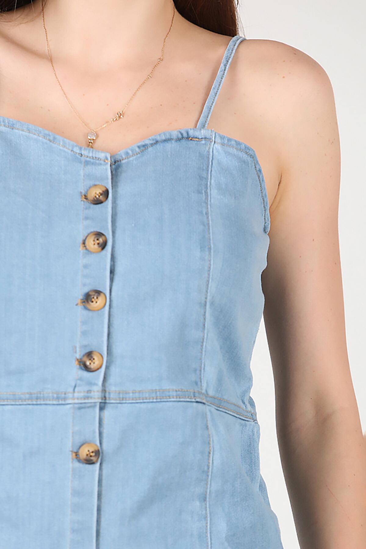 Kadın Düğmeli Kot Elbise Kot