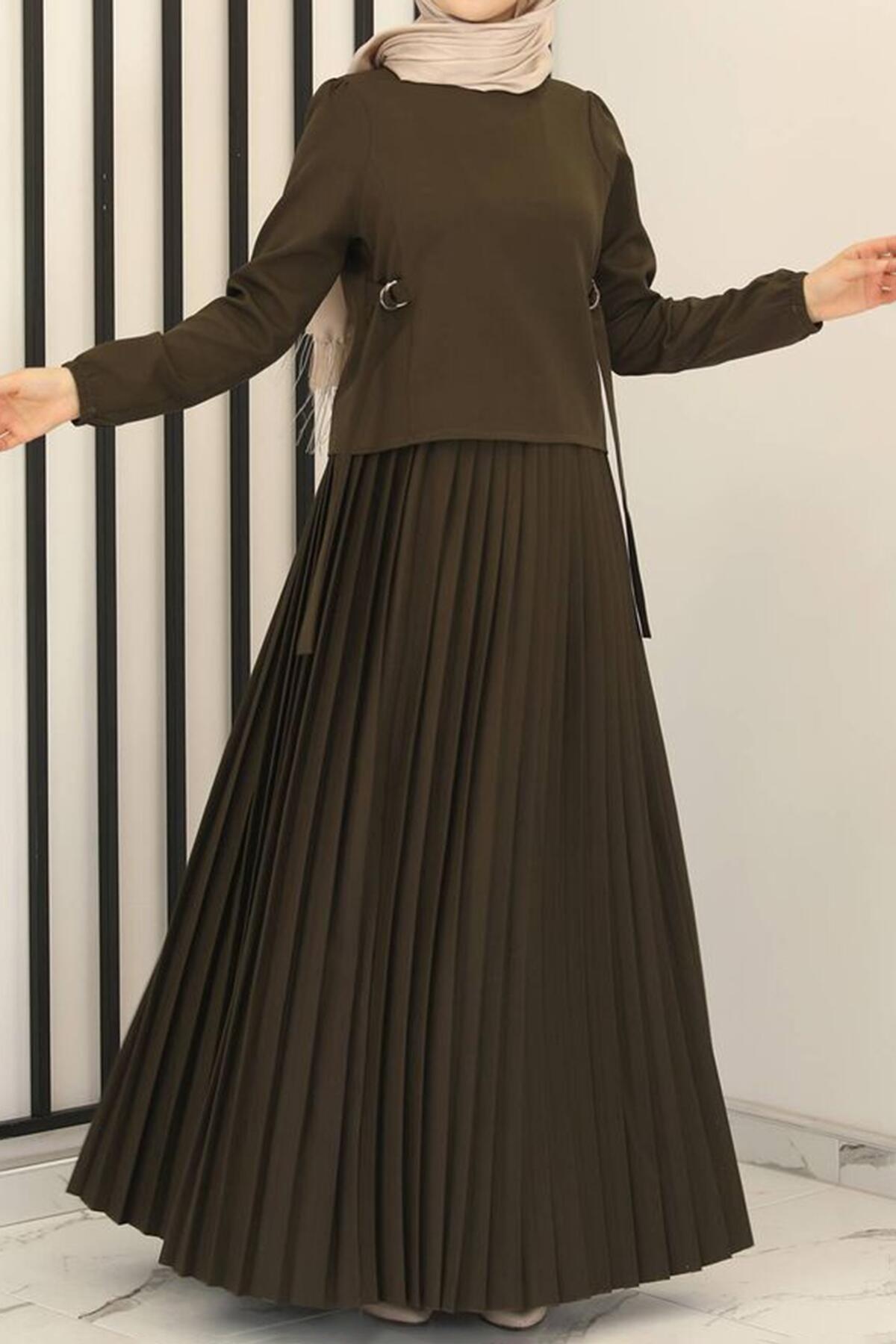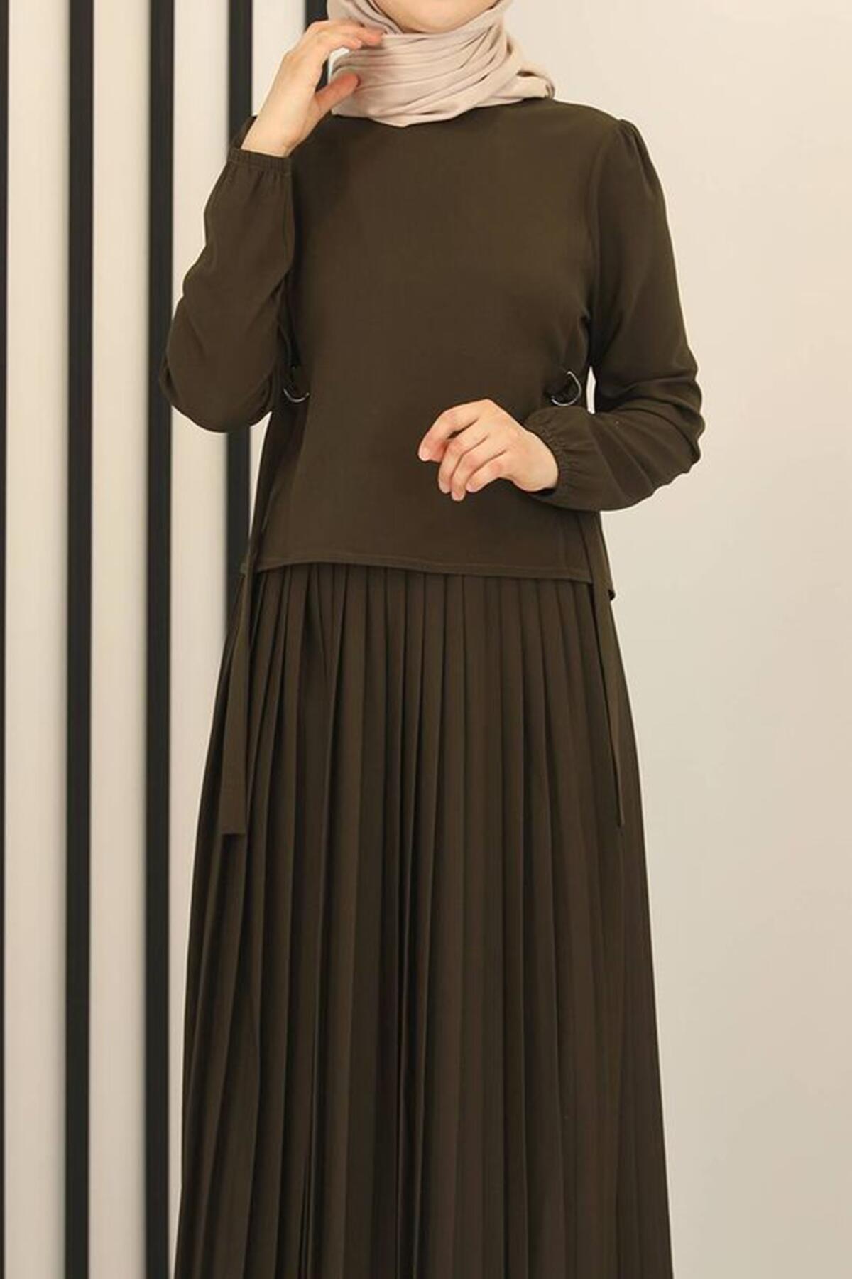 Piliseli Etek - Toka Detay Bluz İkili Takım