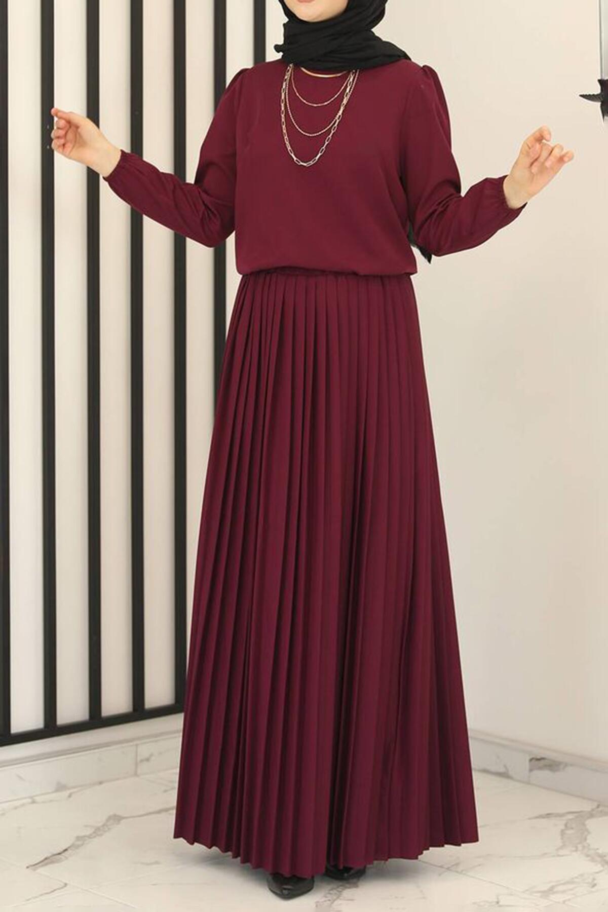 Kadın Eteği Pileli Takım Mürdüm