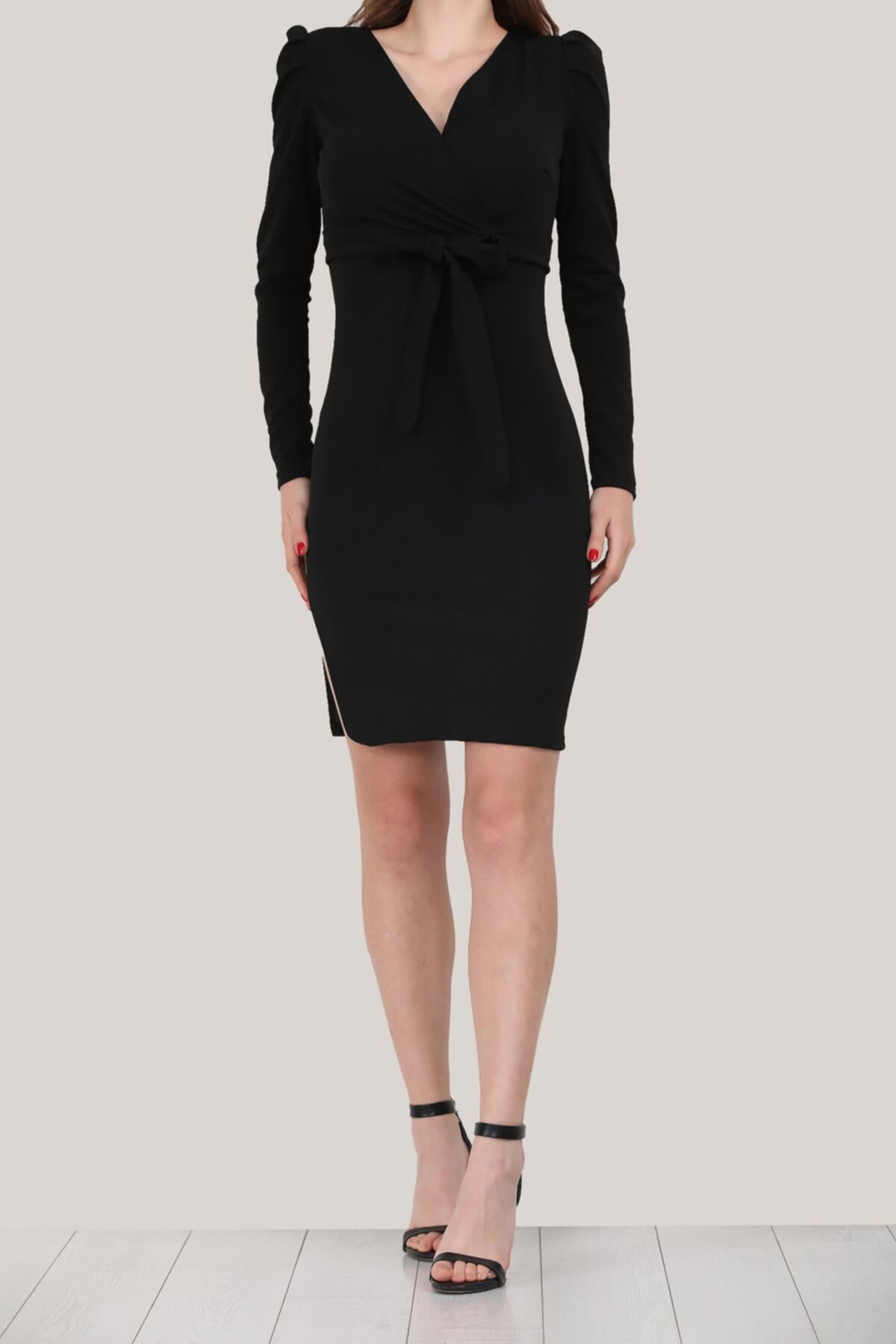 Kadın Kısa Krep Elbise Siyah