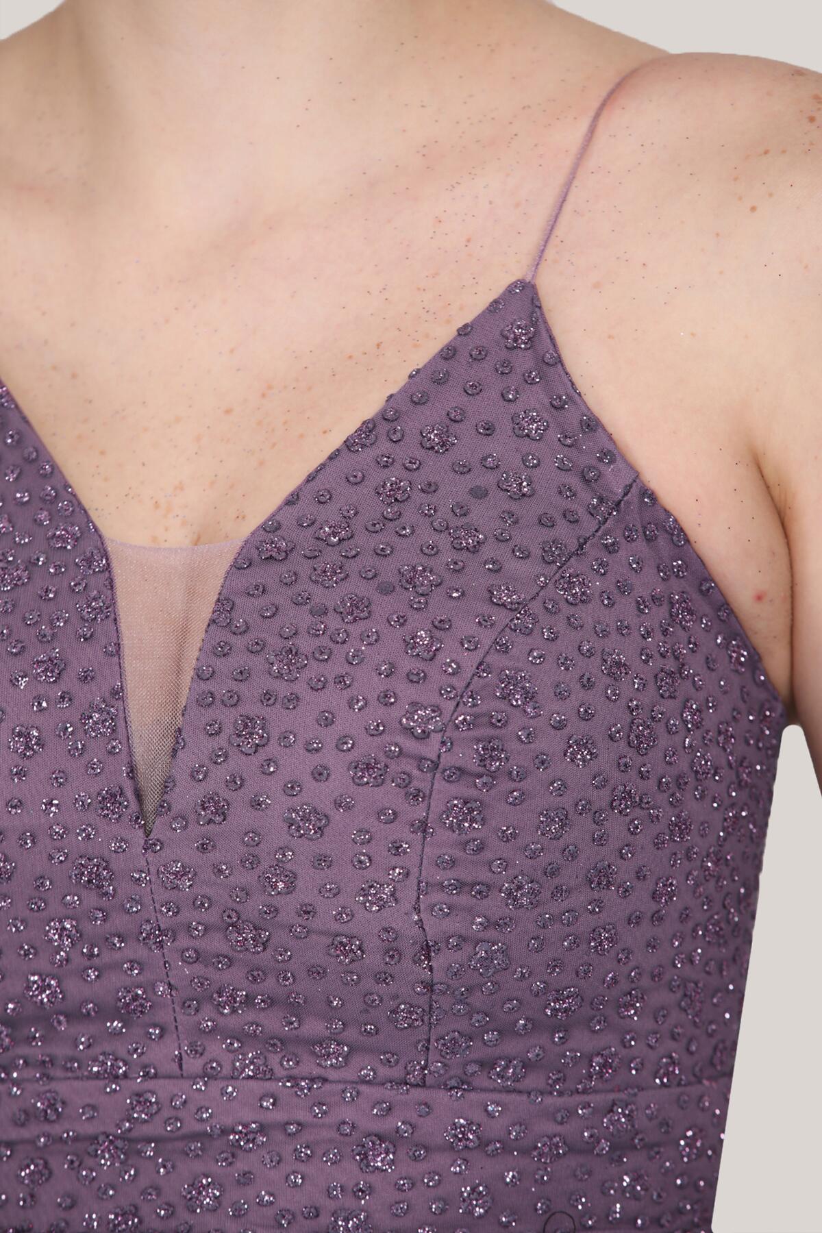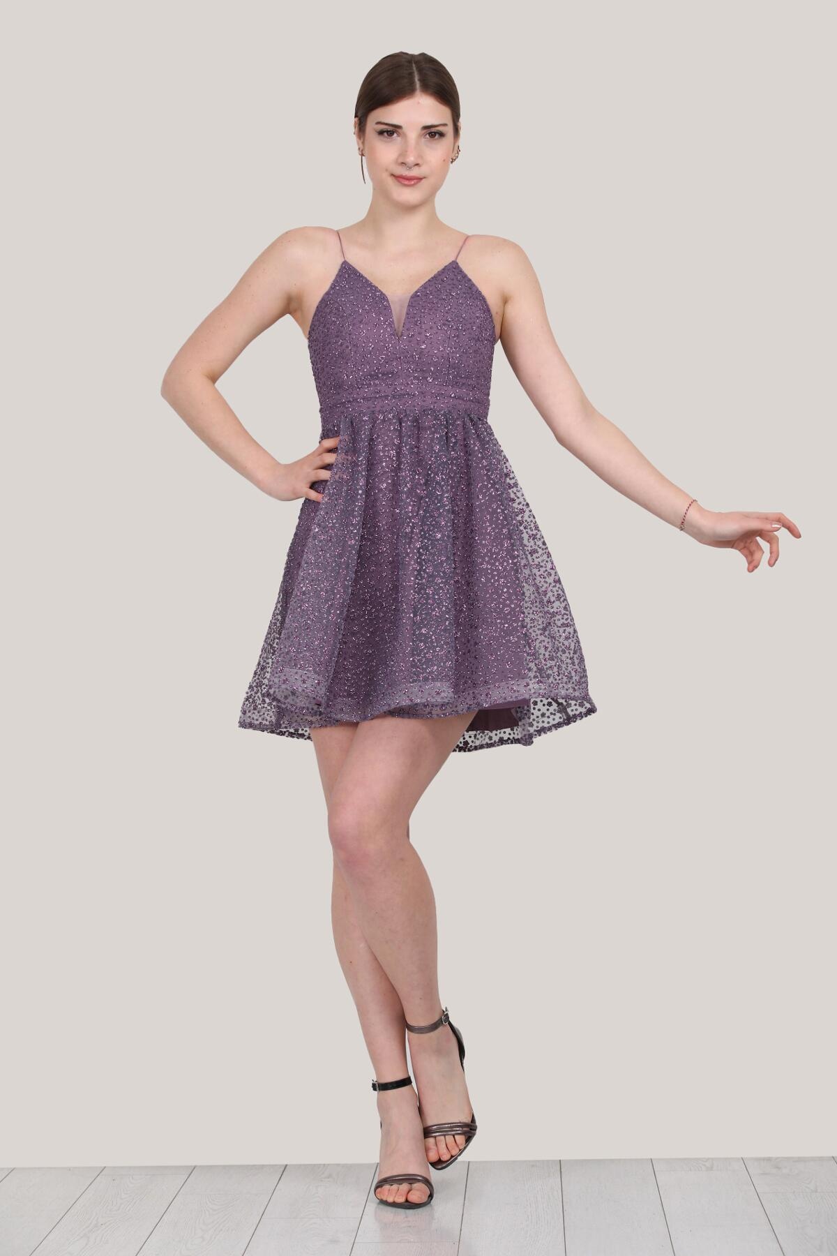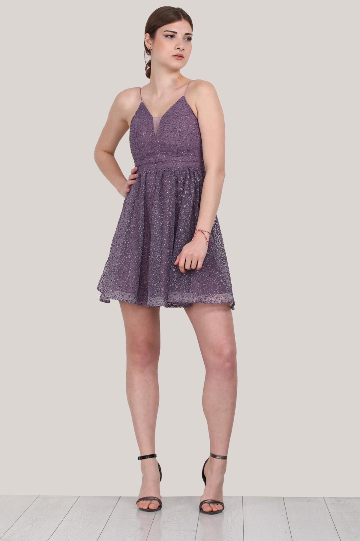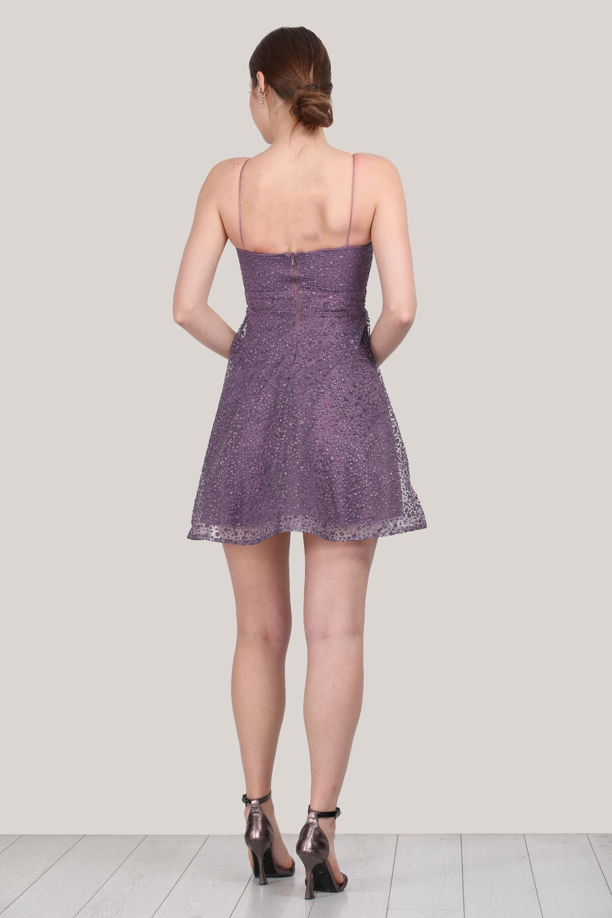 Kadın Kısa Simli Abiye Elbise Lila