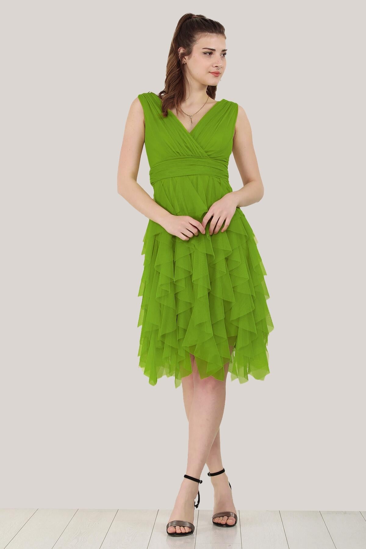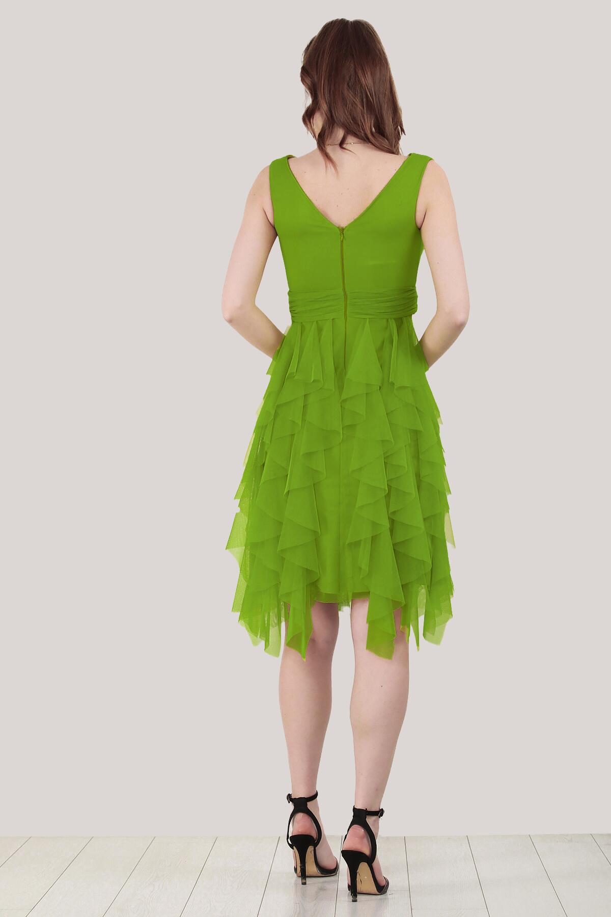 Kadın Kısa Tül Abiye Elbise Yeşil