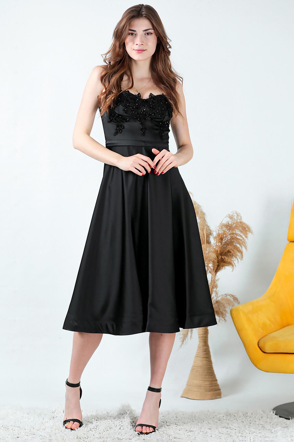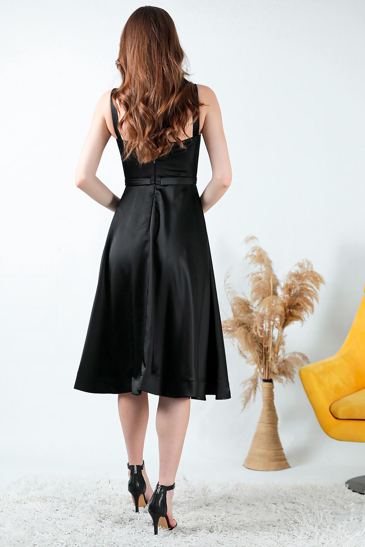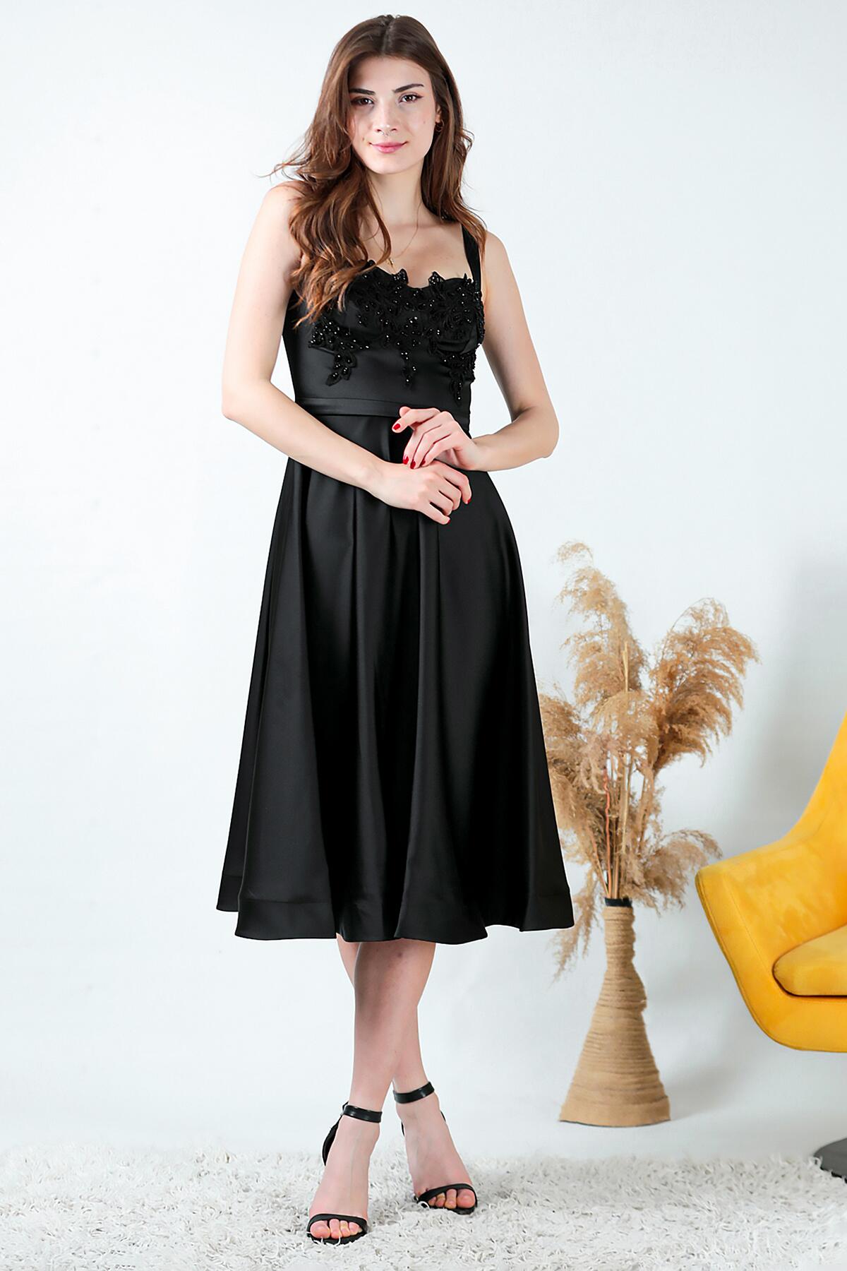 Kadın Midi Boy Saten Abiye Siyah