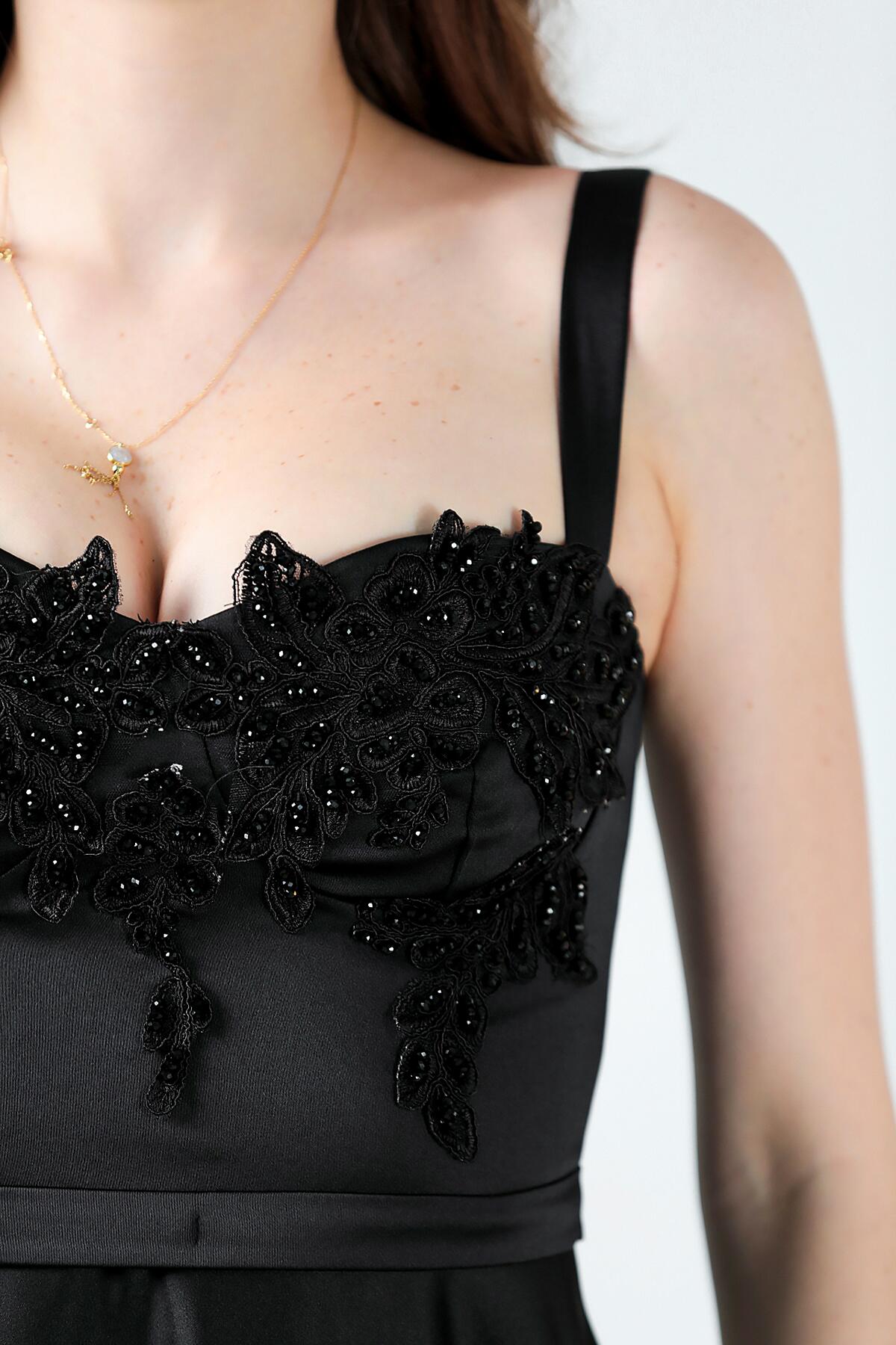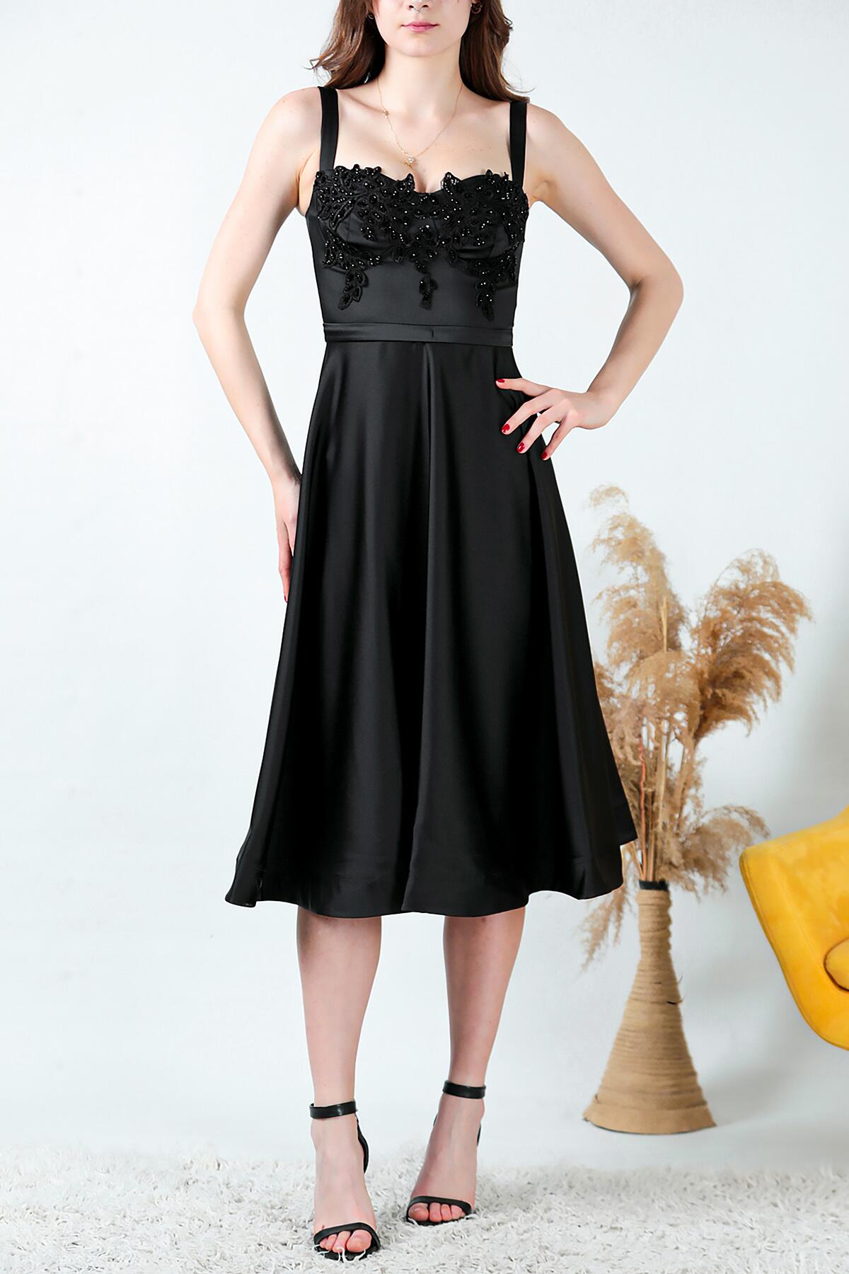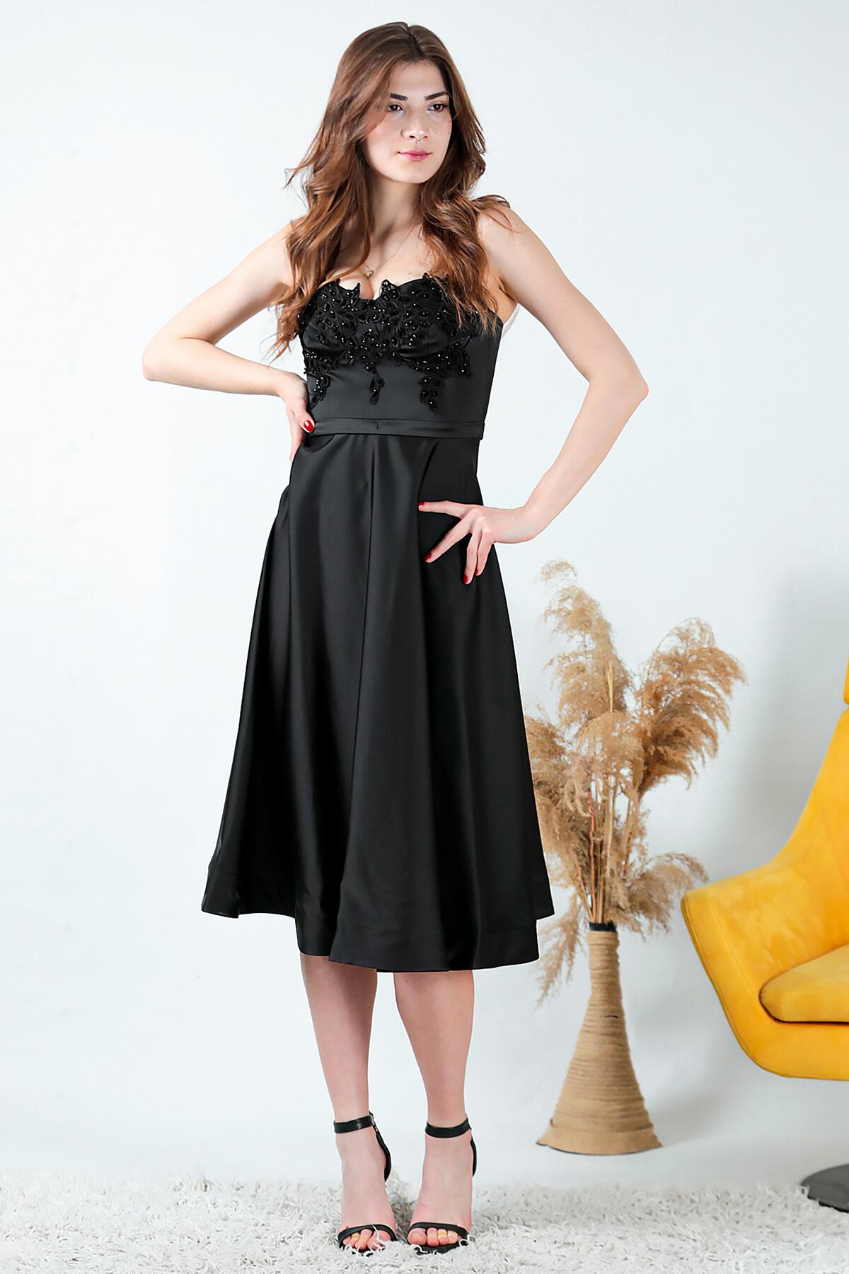 Kadın Midi Boy Saten Abiye Siyah
