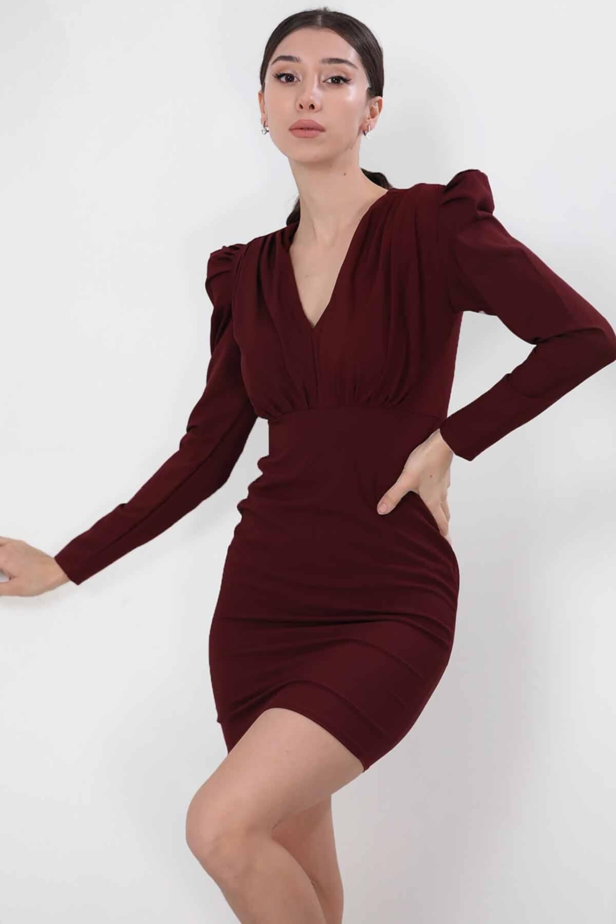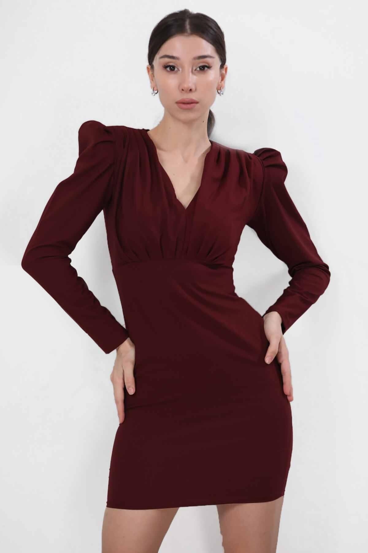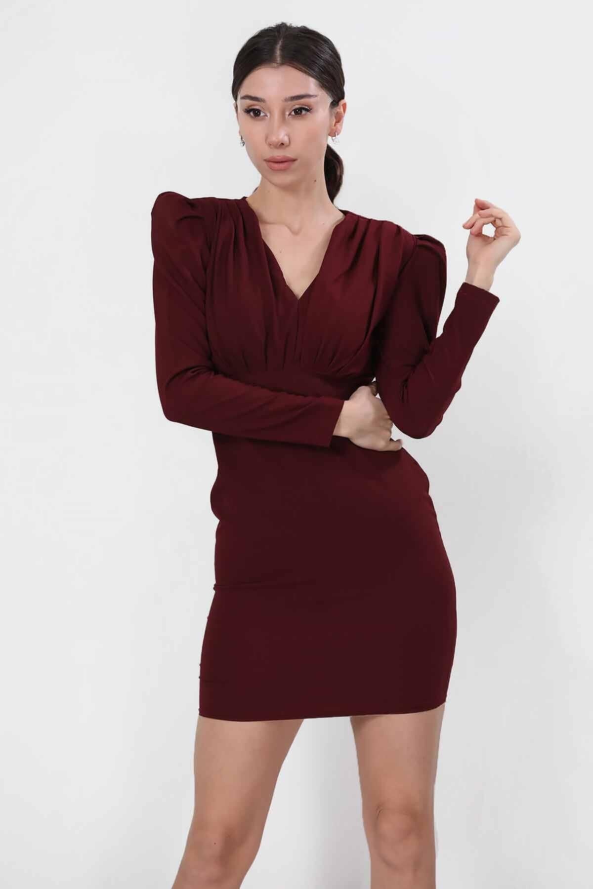 Kadın Mini Elbise Bordo