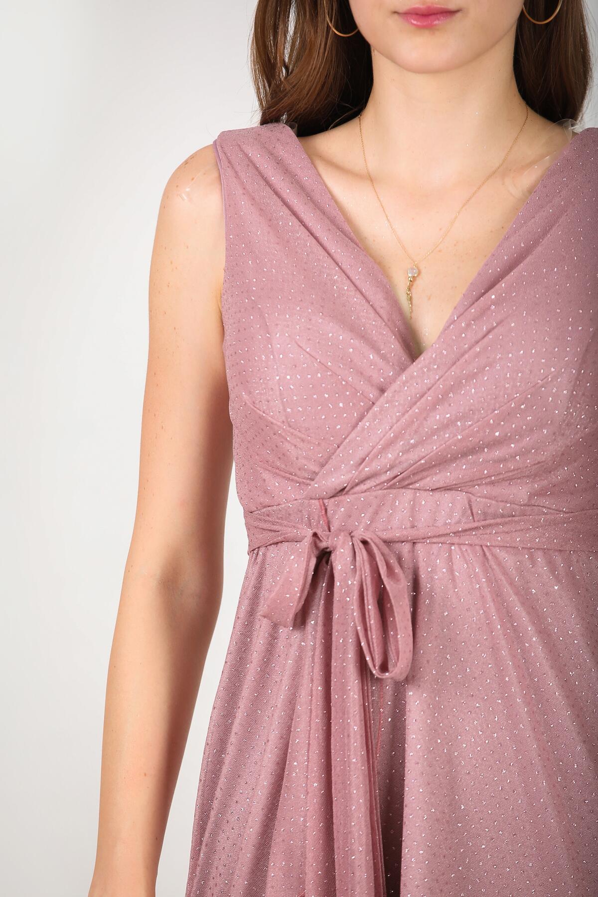 Kadın Önü Fırfırlı Abiye Gül Kurusu