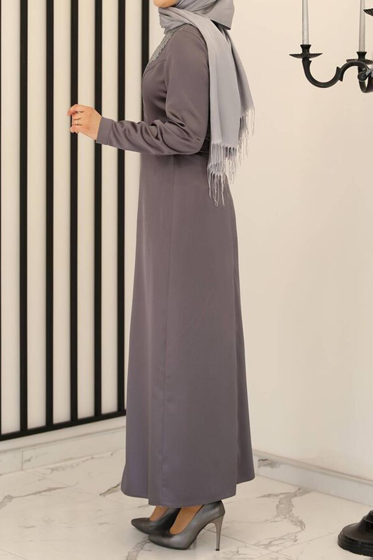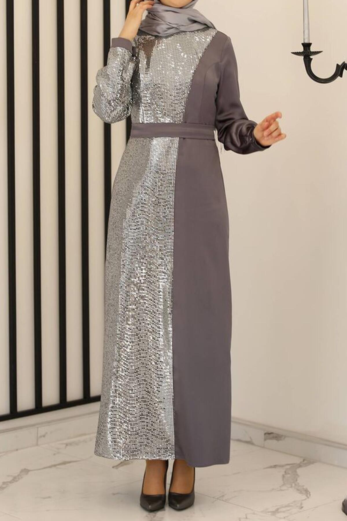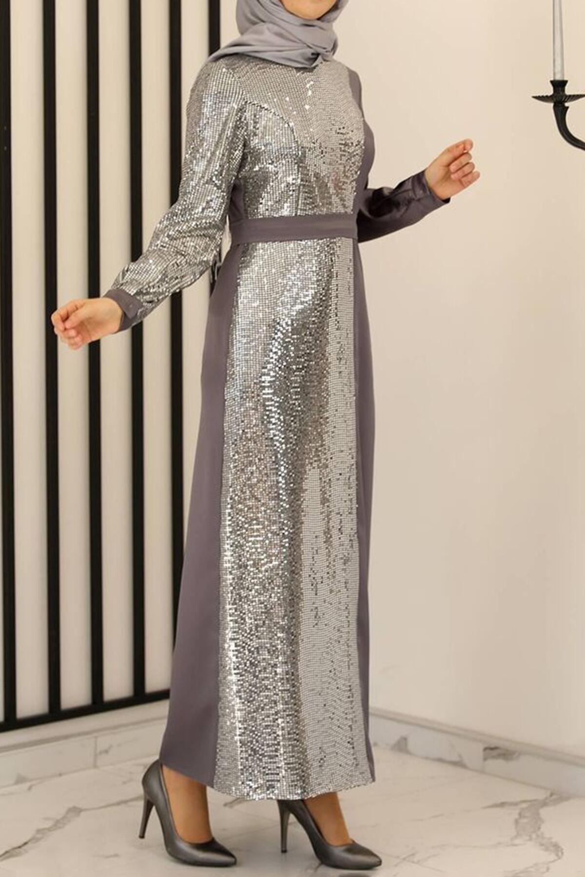 Kadın Pullu Uzun Abiye Antrasit