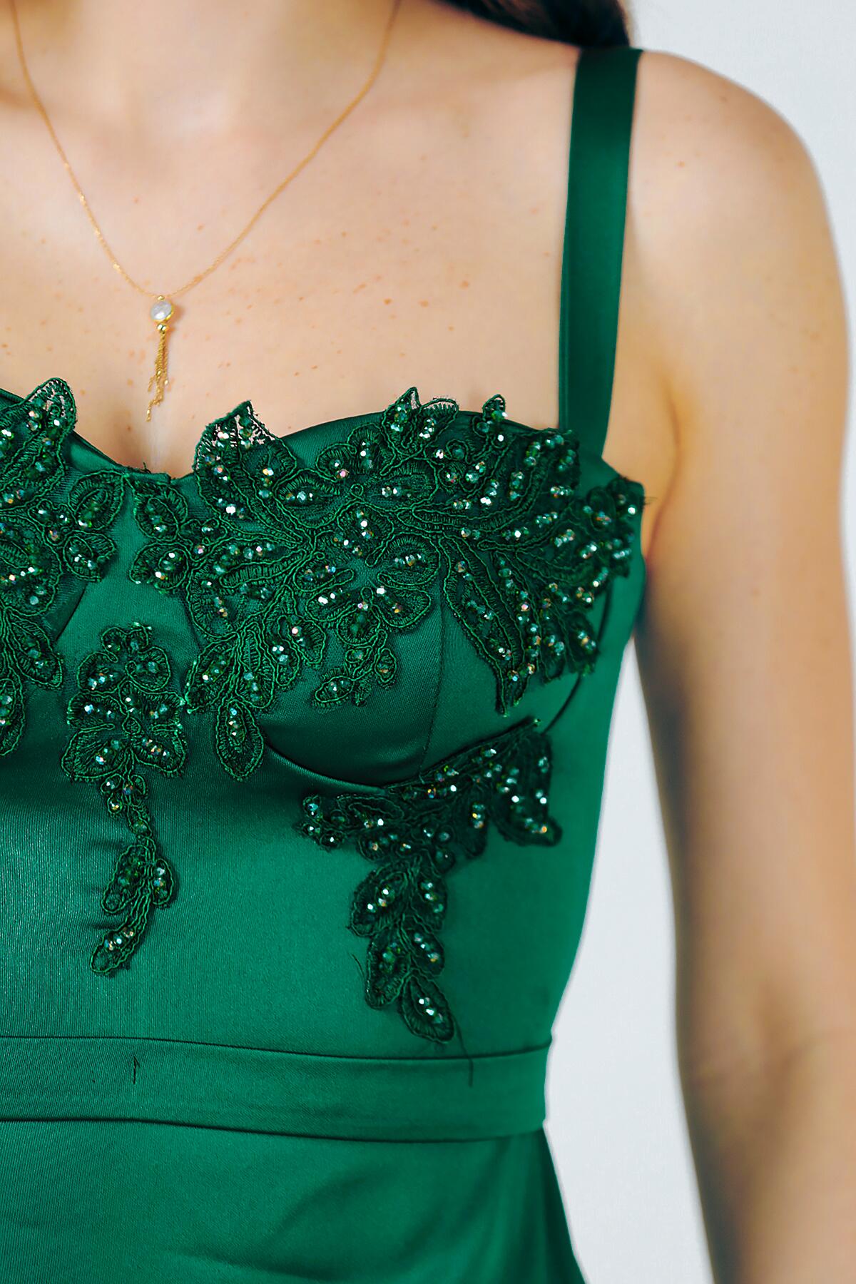 Kadın Saten Kısa Elbise Zümrüt
