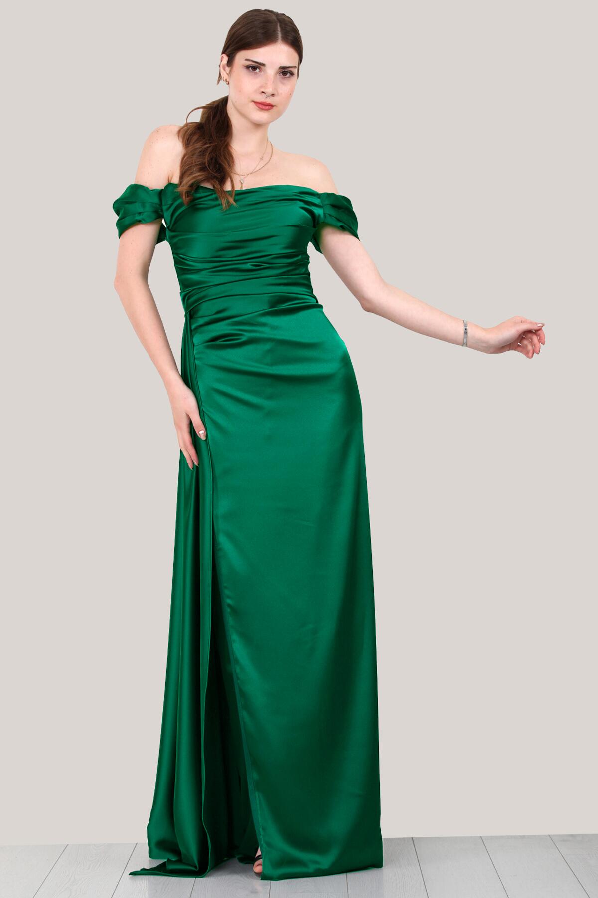 Kadın Saten Uzun Abiye Koyu Yeşil