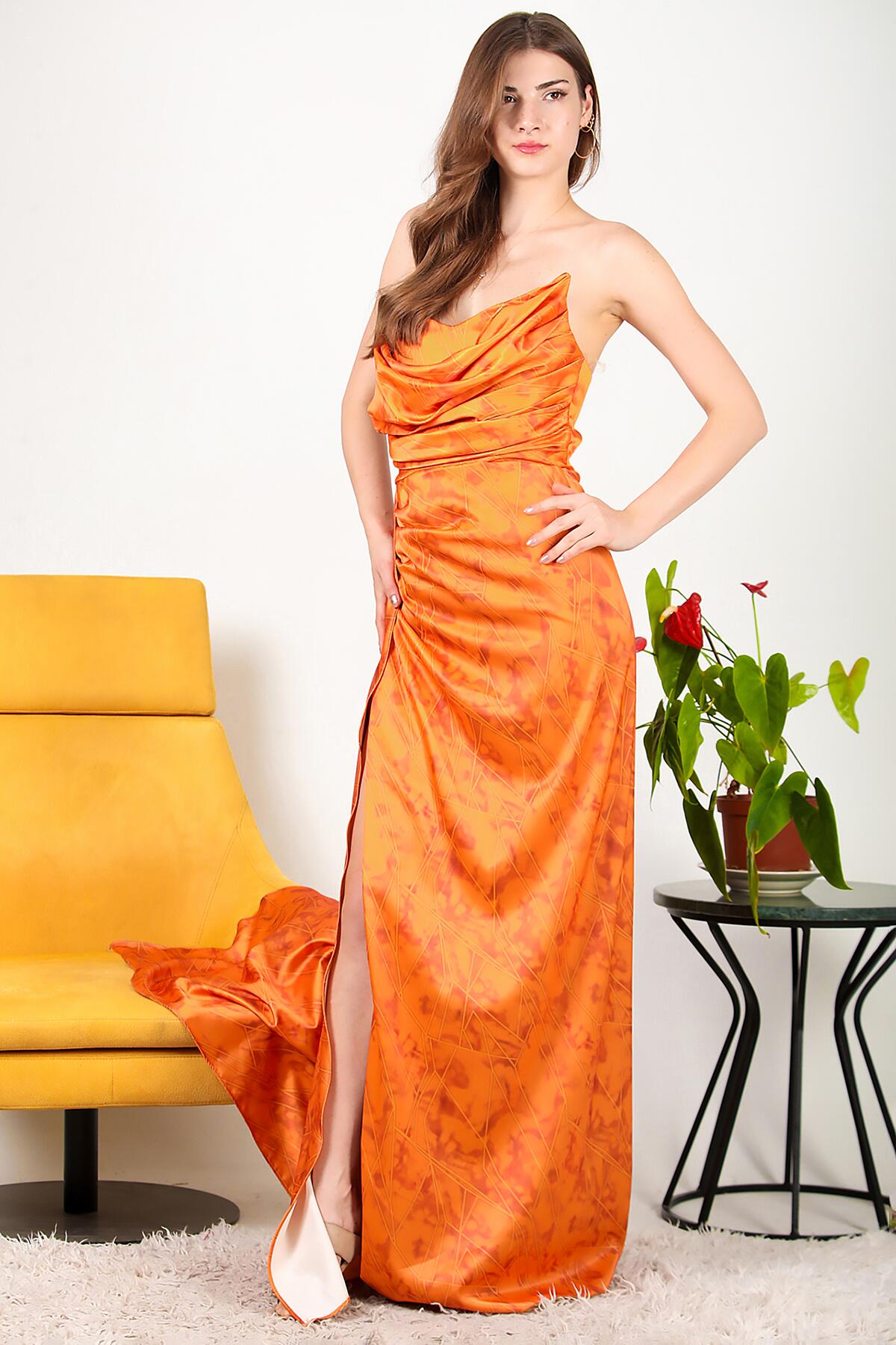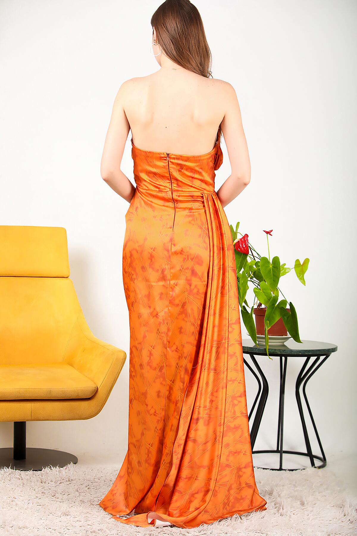 Kadın Saten Uzun Abiye Turuncu