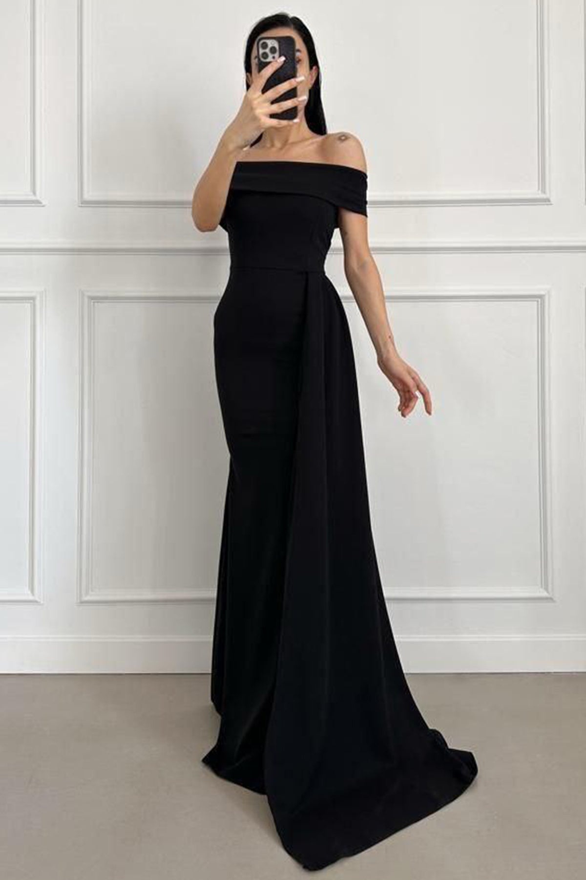 Kadın Scuba Krep Uzun Abiye Siyah
