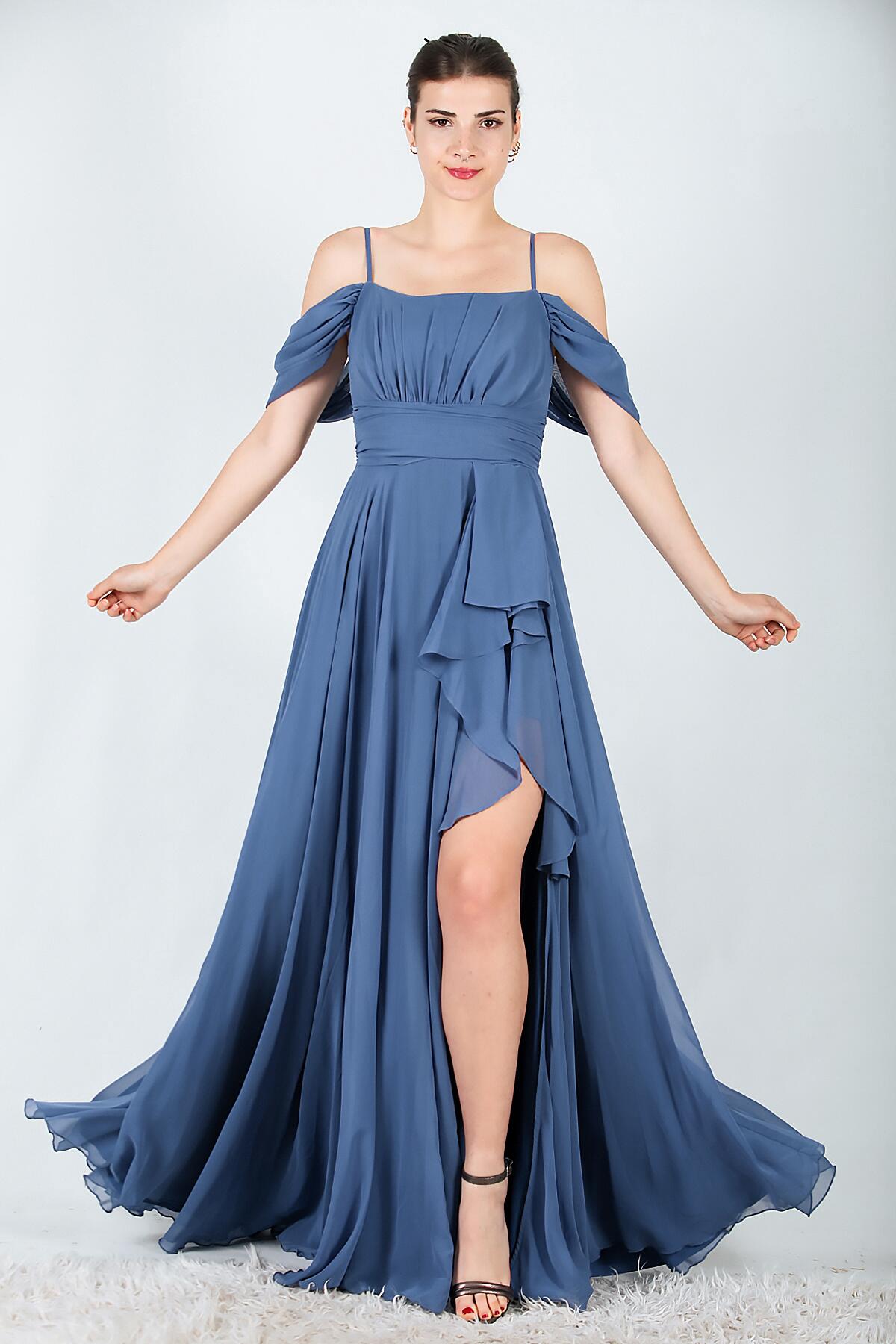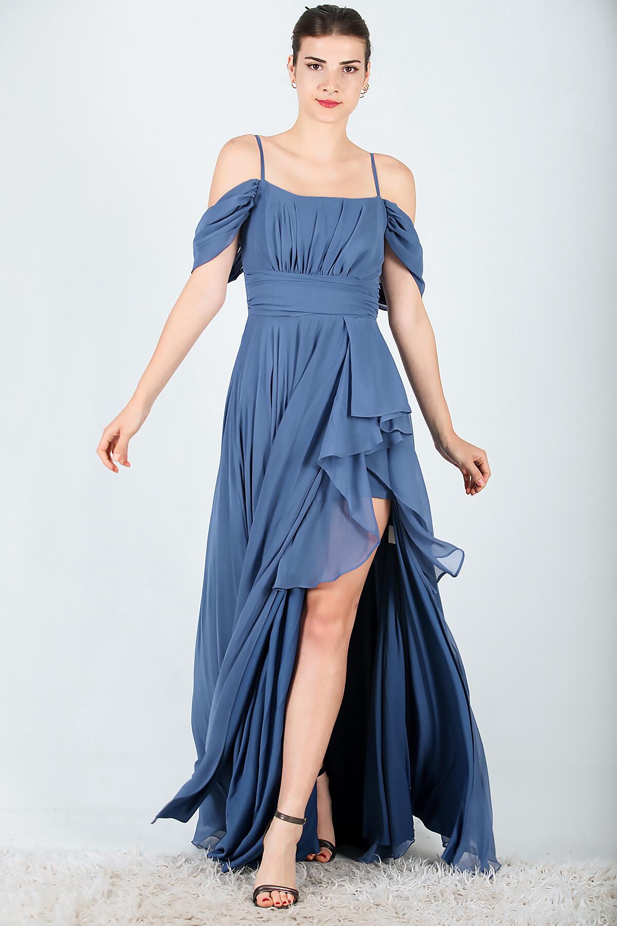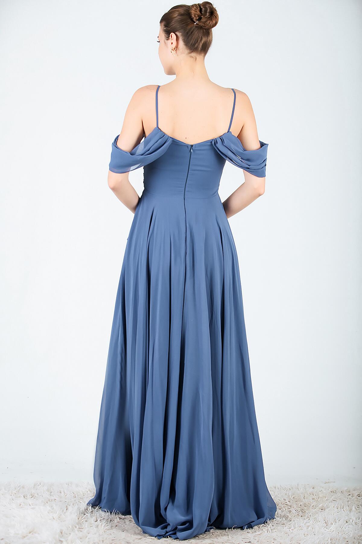 Kadın Şifon Uzun Abiye Elbise İndigo