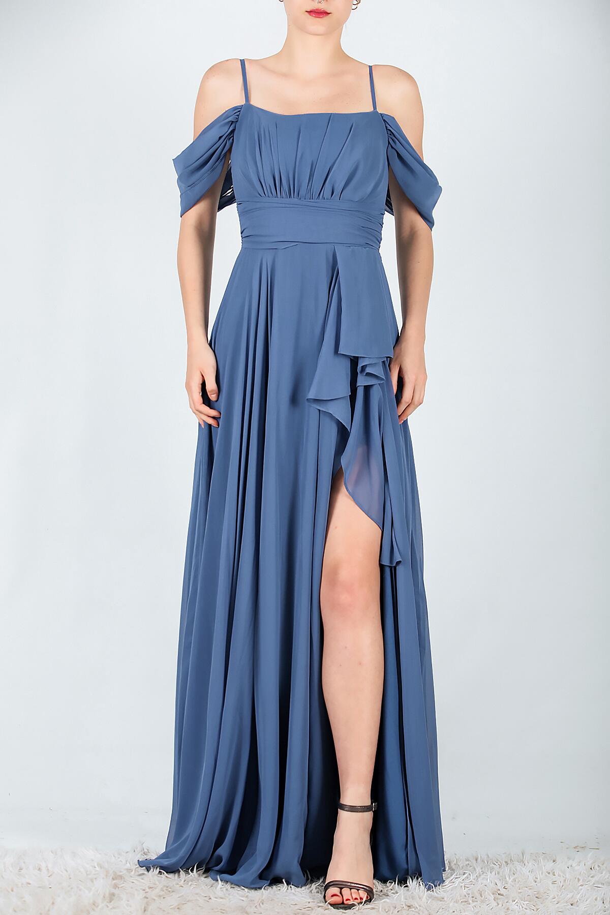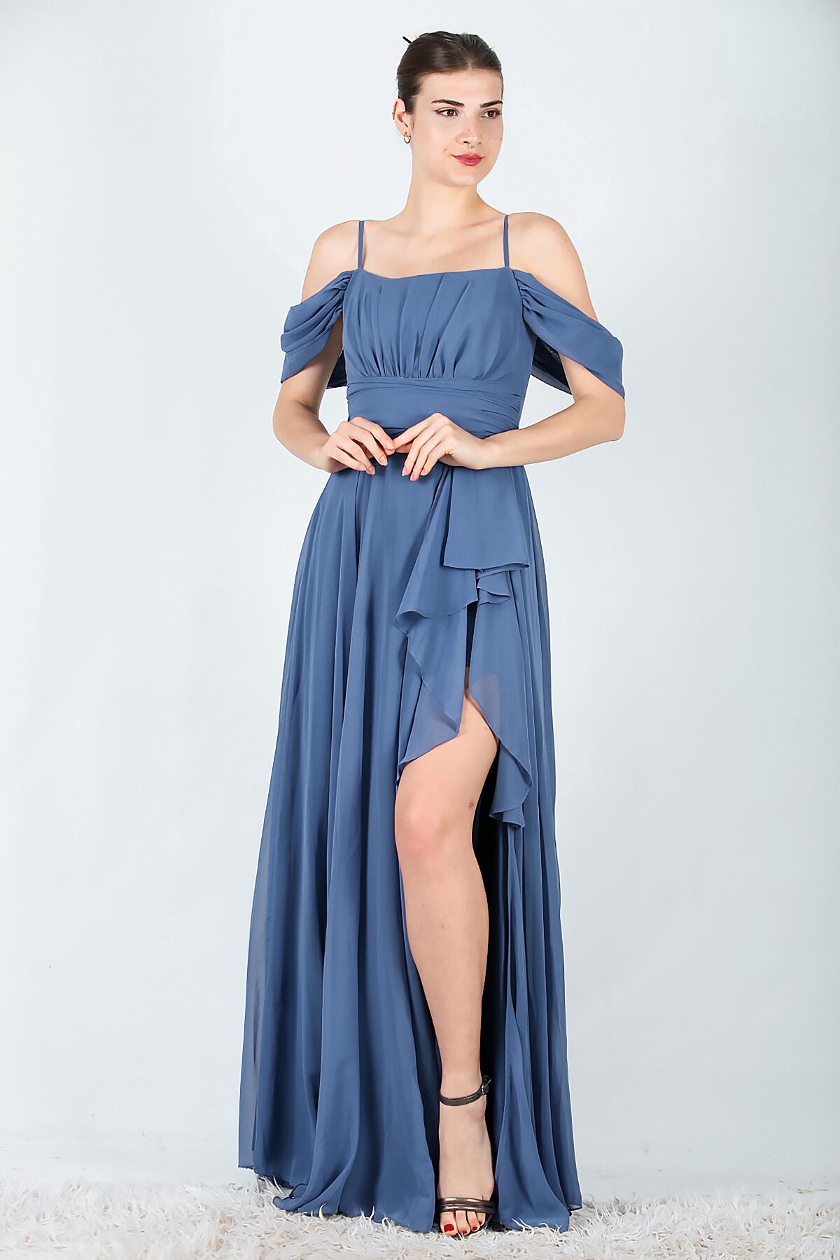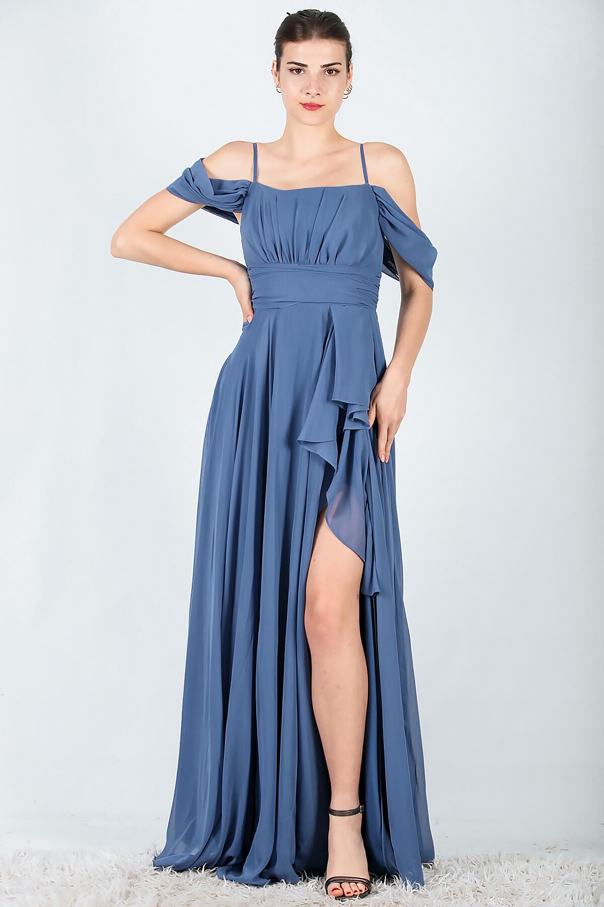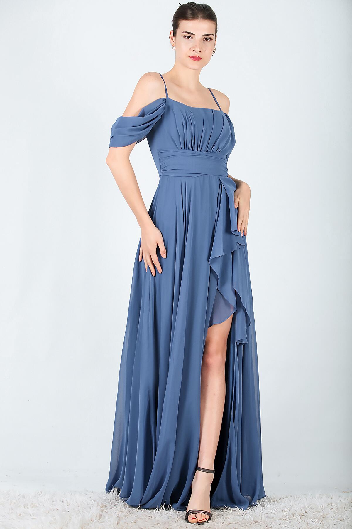 Kadın Şifon Uzun Abiye Elbise İndigo