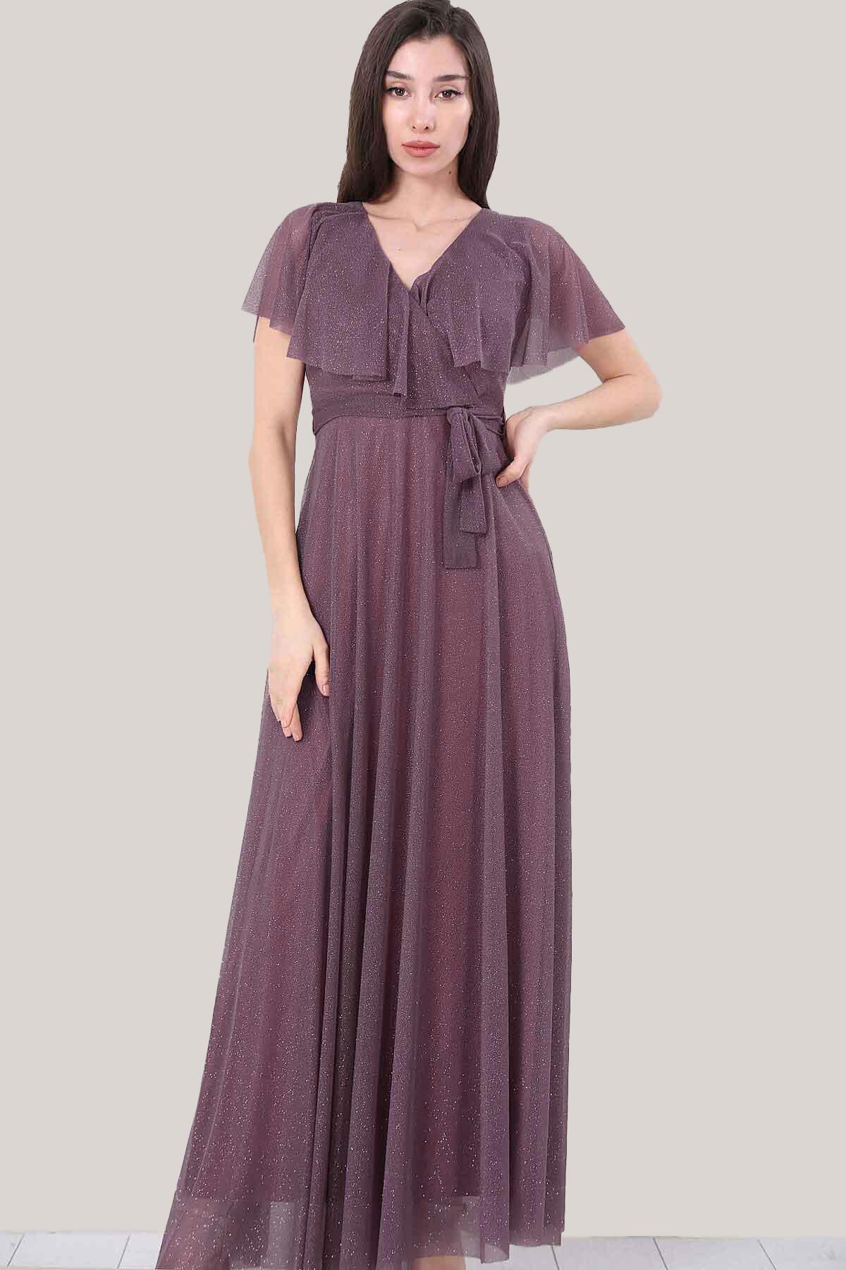 Kadın Simli Uzun Abiye Mürdüm