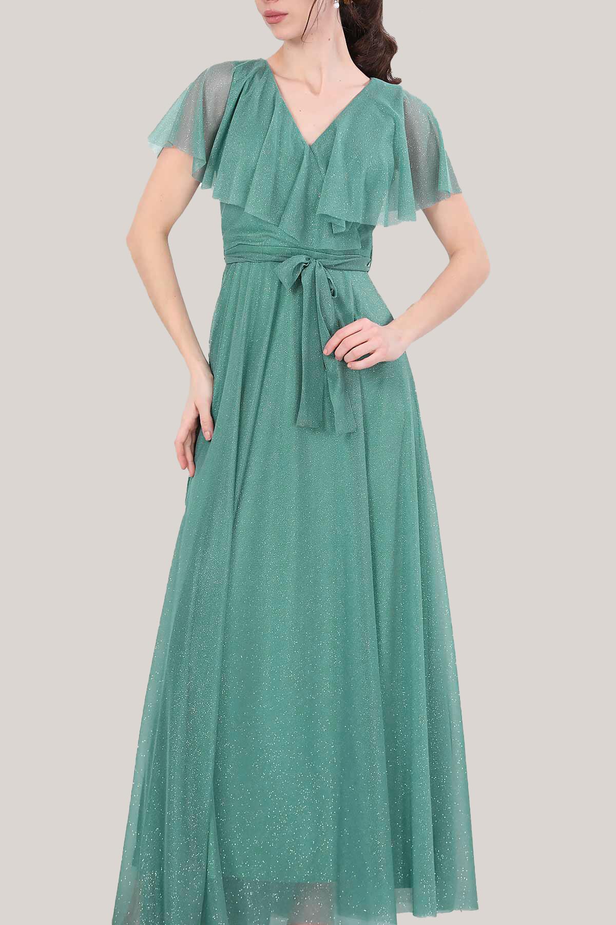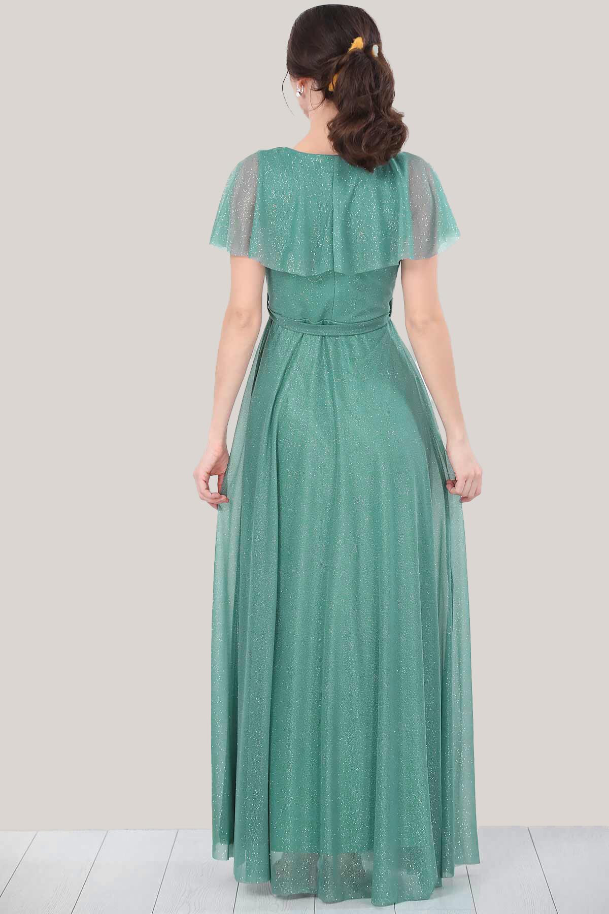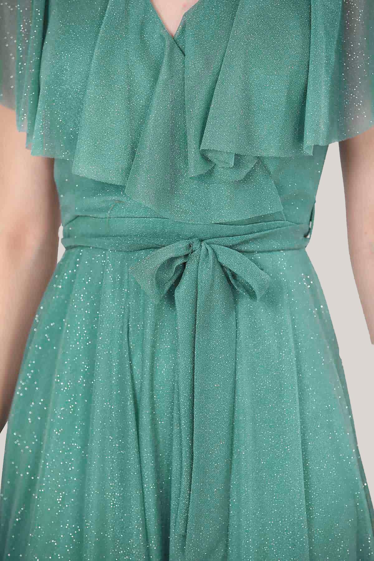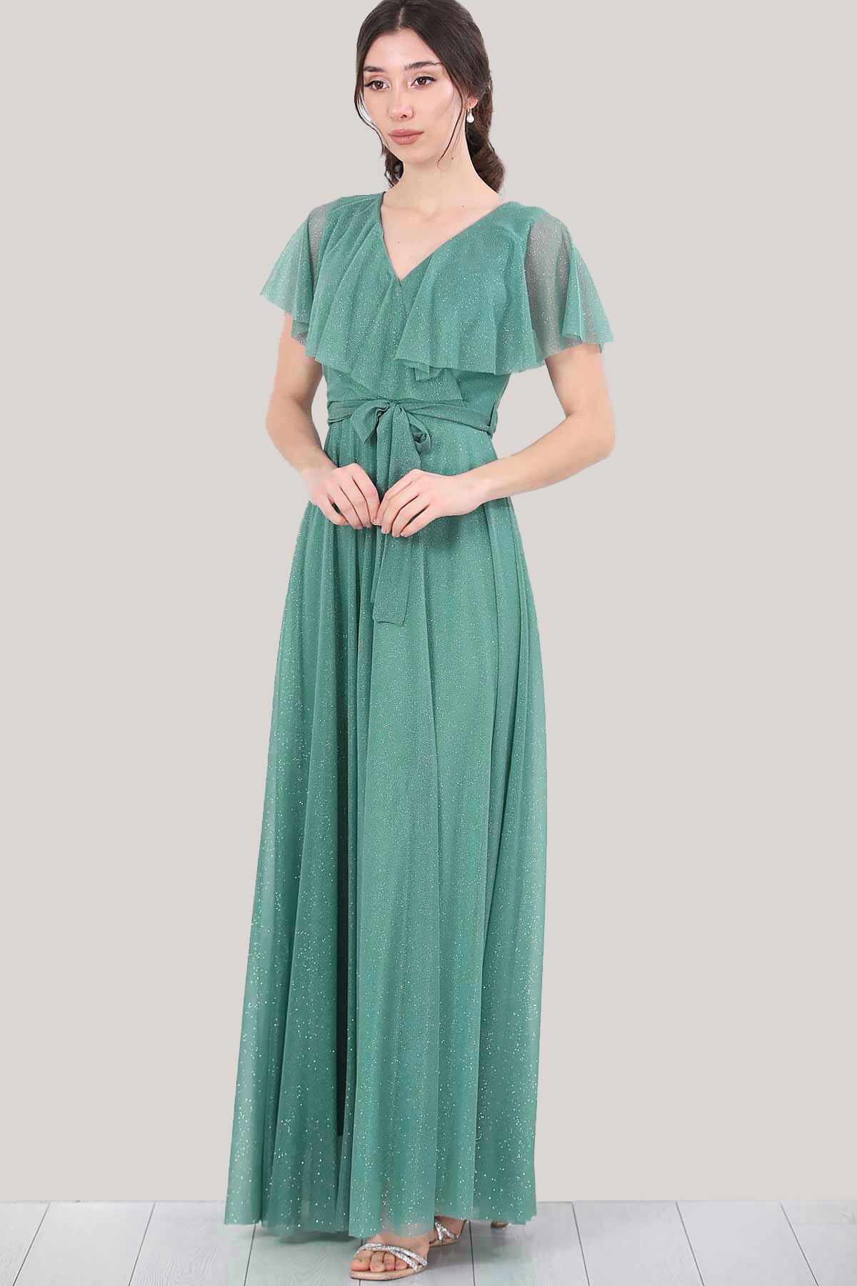 Kadın Simli Uzun Abiye Yeşil