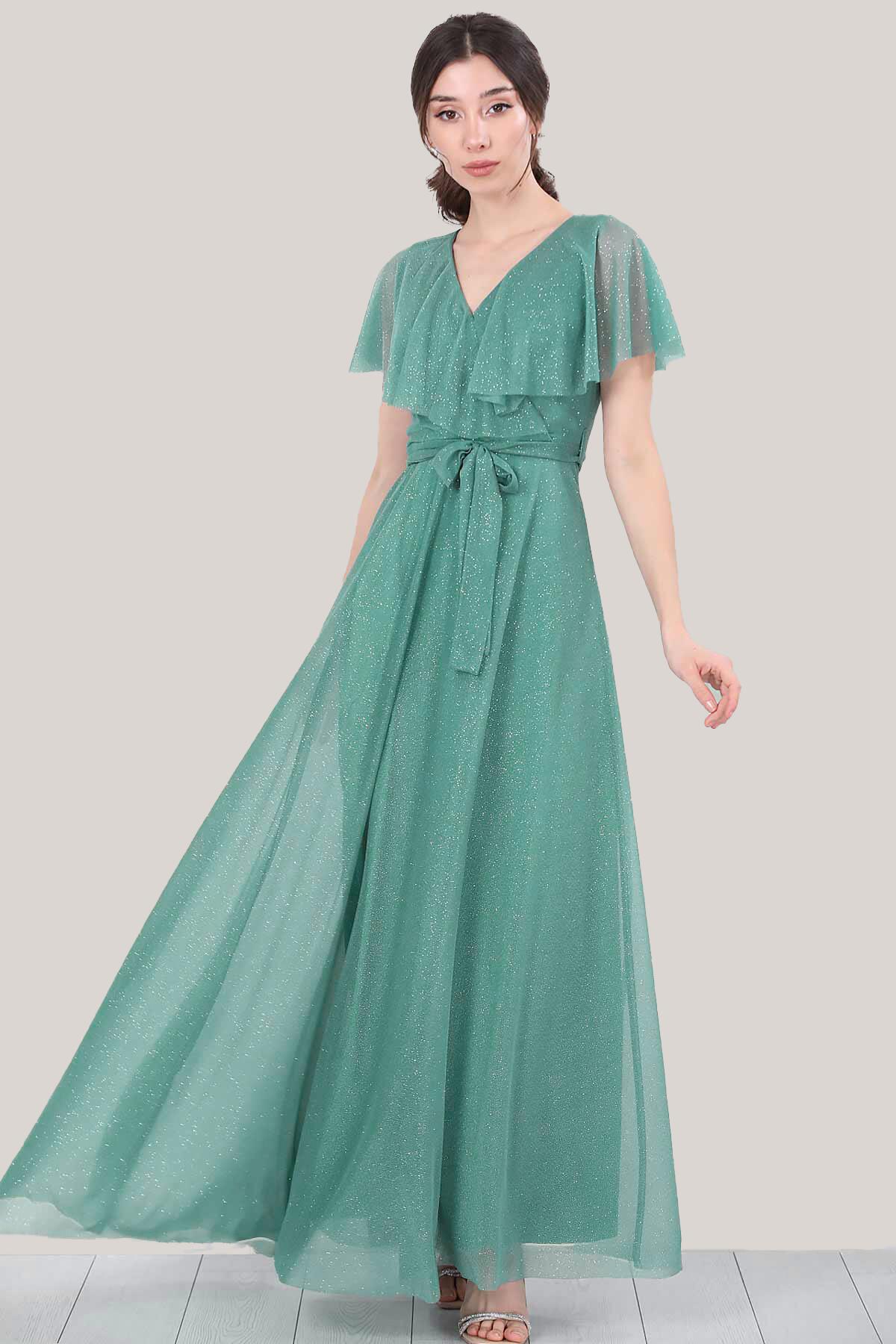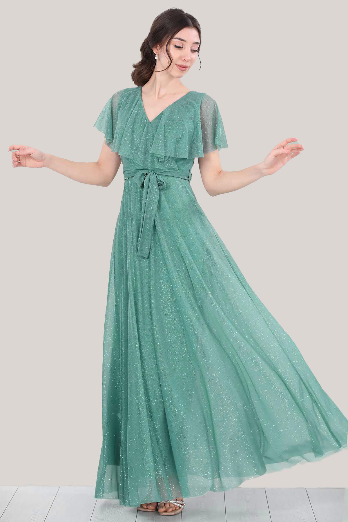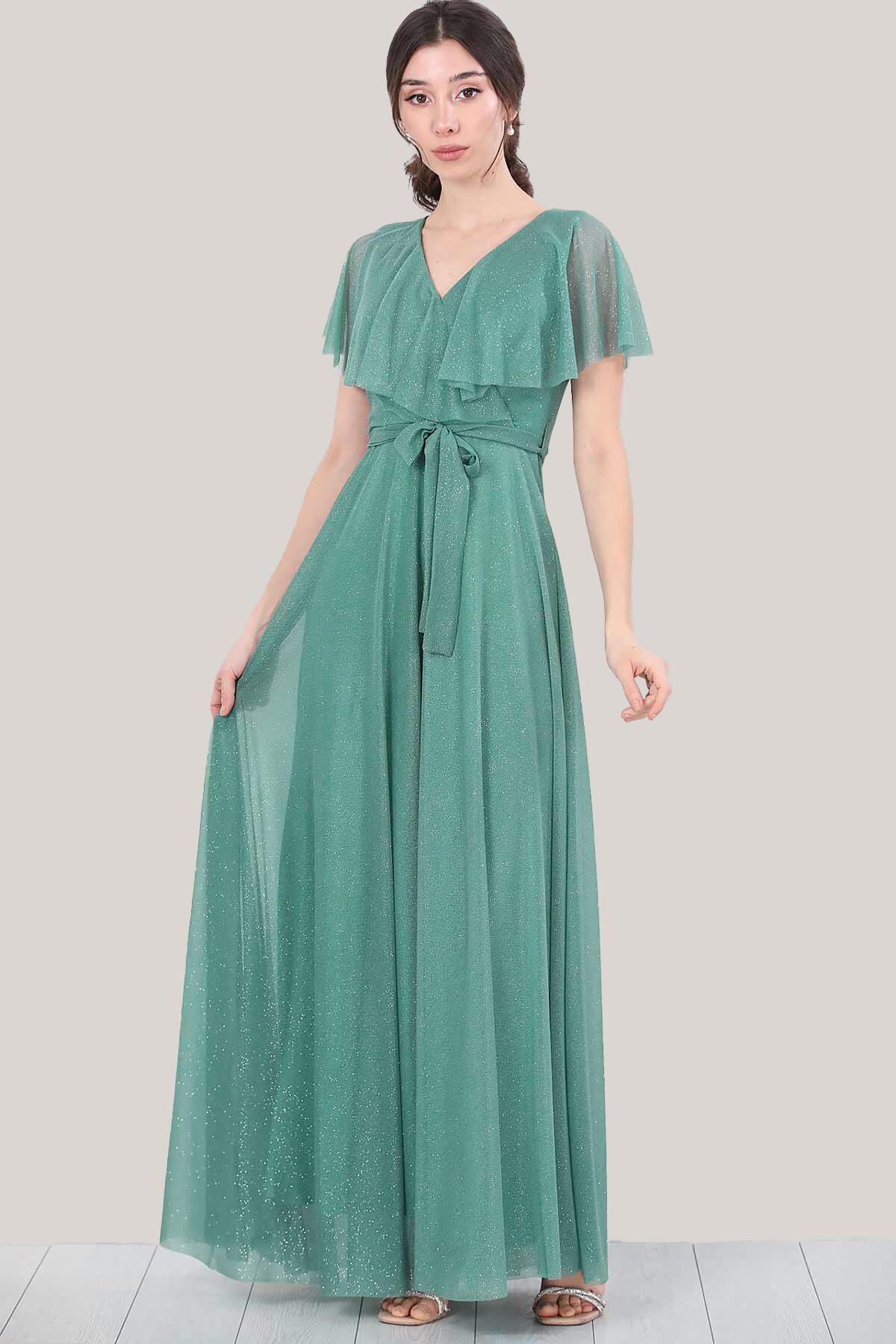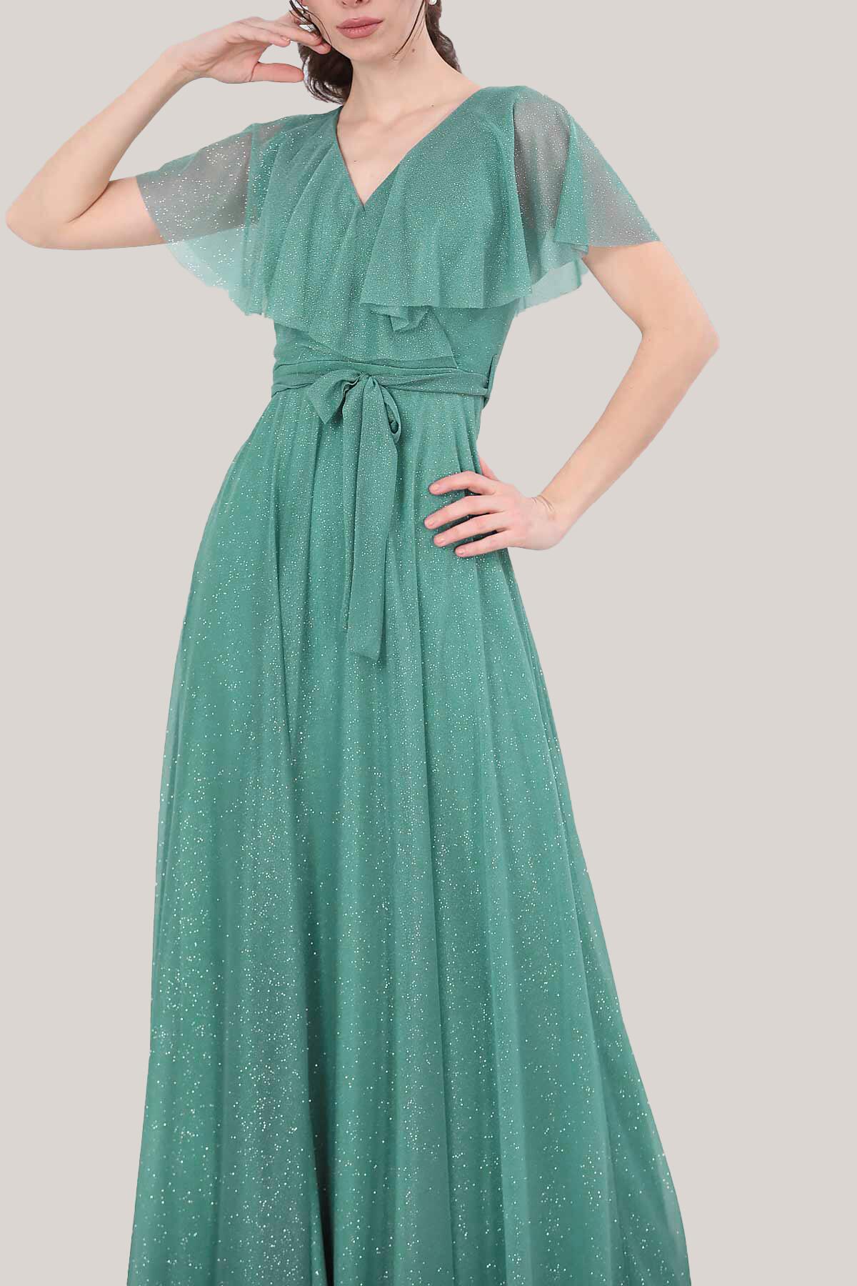 Kadın Simli Uzun Abiye Yeşil