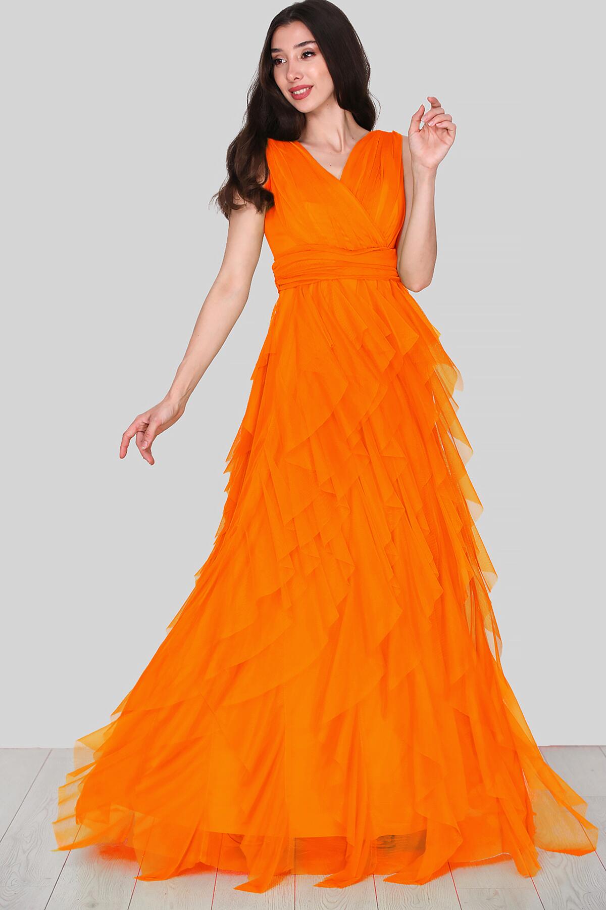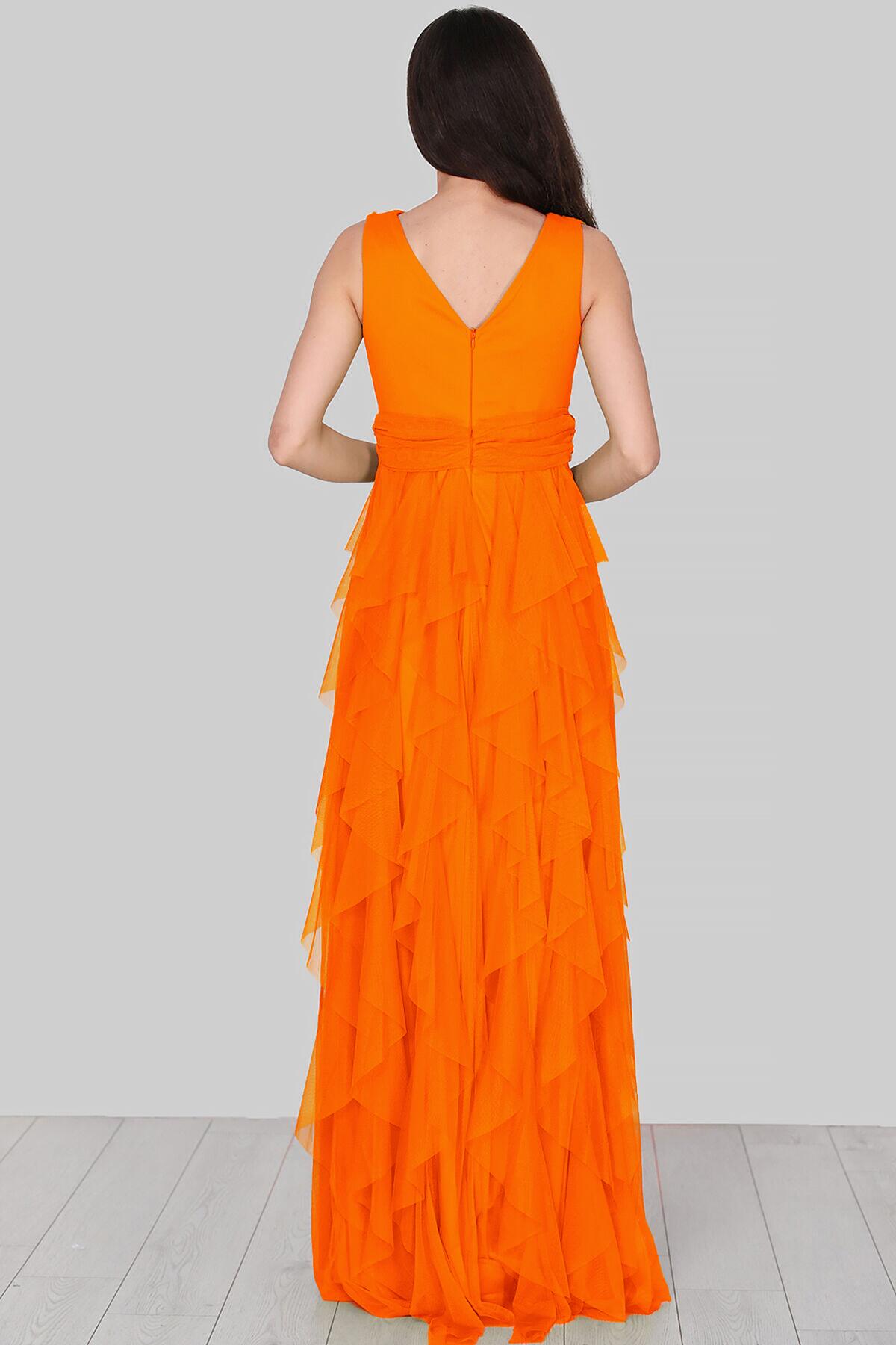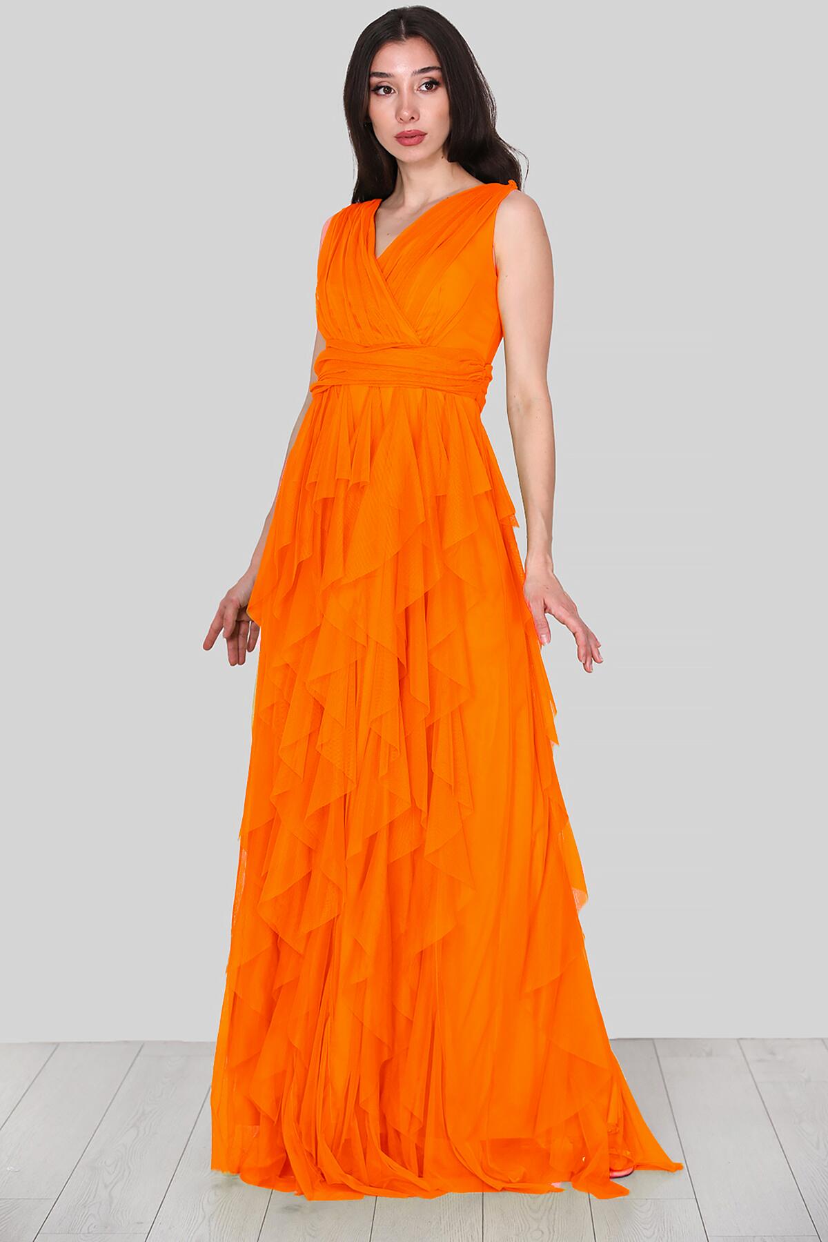 Kadın Tül Uzun Abiye Turuncu